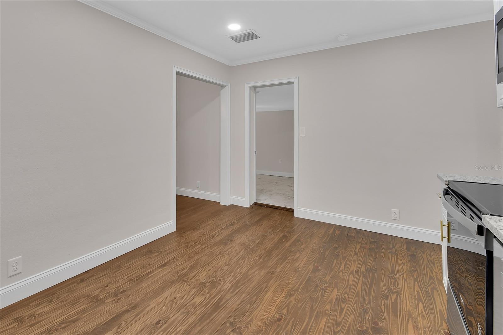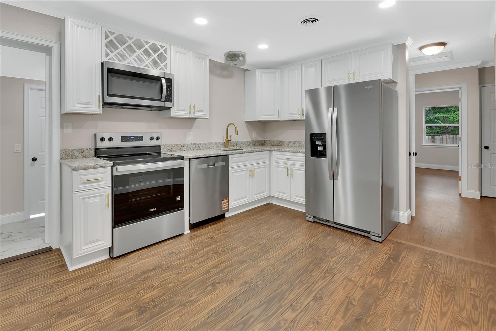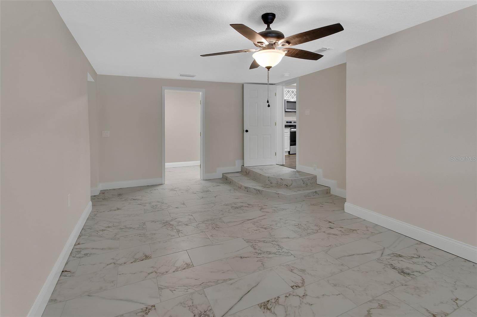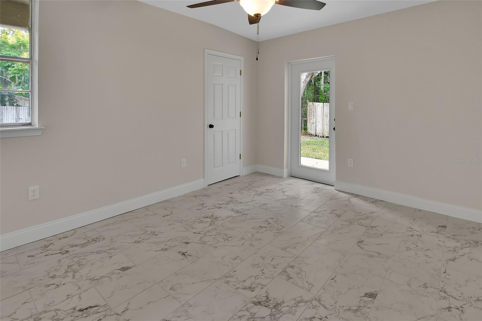 This updated block home offers 4 bedrooms, 2 bathrooms, as well as a formal dining room or bonus room, conveniently located near Downtown Deland. The property has been thoroughly renovated, including a new roof, a complete electrical rewire with a new service and panels, new plumbing, and a new hot water heater. The kitchen is equipped with quiet-close cabinetry, granite countertops, recessed lighting, and new GE stainless steel appliances. Bathrooms feature neutral subway tile showers and premium fixtures. An attached storage room provides additional space for outdoor equipment and tools. With its generous layout, this home is suitable for large or multi-generational families. The property is within walking distance of downtown events and is just a 10-minute drive from both I-4 and International Speedway.