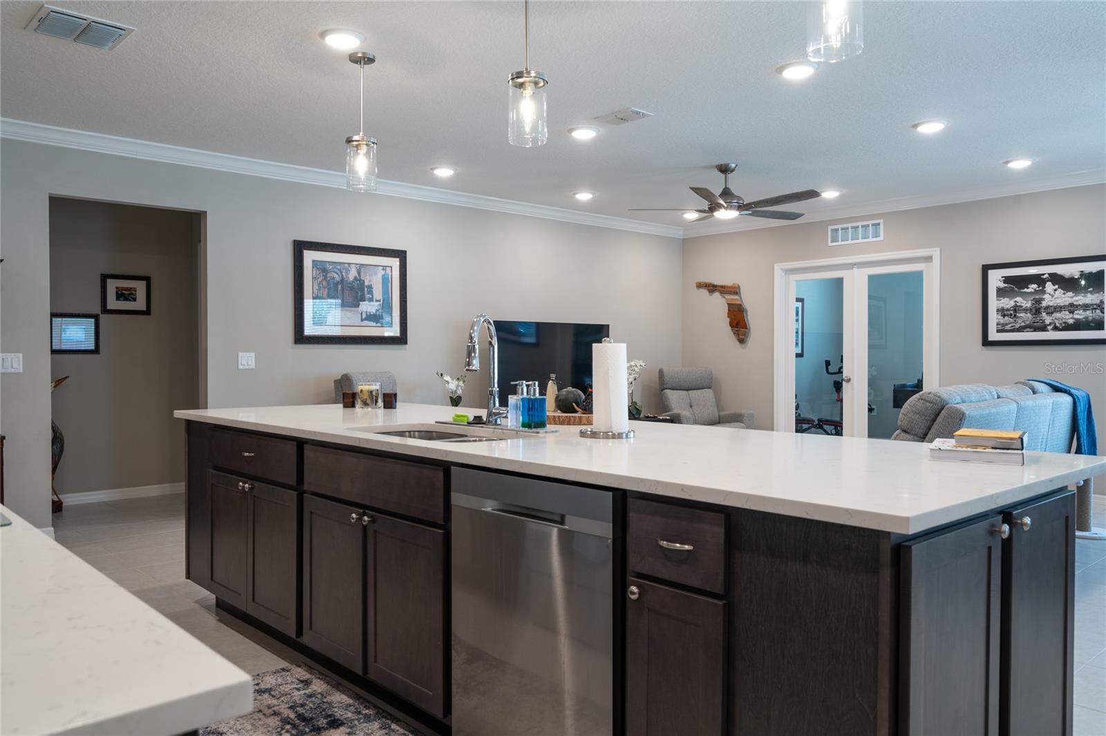 Welcome to this beautifully maintained home located in one of DeLand’s most desirable communities—just minutes from historic Downtown DeLand, known for its charming restaurants, boutique shopping, and vibrant entertainment scene. Step inside and enjoy an open-concept layout designed for modern living. The home features upgraded Minke Air ceiling fans, dimmers on all lighting, and a whole-home soft water system—combining comfort, style, and efficiency. The kitchen flows seamlessly into the living and dining areas, creating the perfect space for gatherings and everyday living. The chef in the family will appreciate the large quarts kitchen island, stainless steel appliances, and all of the counter and storage space. Another great feature is a dedicated office space/flex room with double French doors. This space is just right for those managing a home business, or those who work remote. The Primary suite features tray ceilings, walk in closet, and a large bathroom with a glass shower enclosure, double vanities and a beautiful freestanding bathtub. The additional bedrooms are spacious with nice sized closets. Enjoy Florida living at its best with a private, fully fenced backyard, ideal for relaxing, entertaining, or letting pets play freely. You will also enjoy the screened lanai year round! Located just minutes from scenic trails and parks, this home offers the perfect balance between convenience and outdoor adventure.