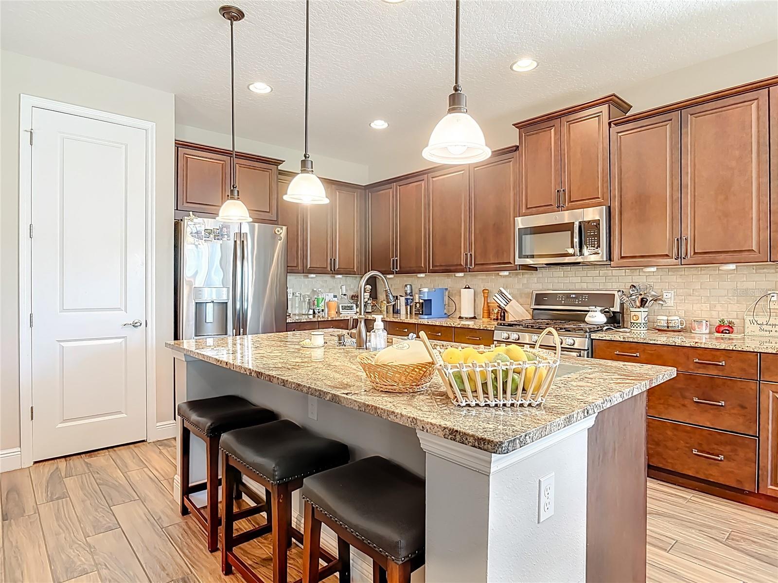 **Welcome to this BEAUTIFUL 2018 Sienna Model by Kolter Homes**, where contemporary design meets functionality in the highly desirable community of Victoria Park. This **3 BEDROOM + 1 FLEX/OFFICE 3 BATH** home offers just over **2,200 SQFT** of thoughtfully designed living space and is packed with desirable upgrades. As you enter, you’ll be welcomed by a **GRAND FOYER WITH SOARING CEILINGS** and elegant tray details that lead to a spacious living area. The open-concept floor plan seamlessly connects the **LIVING, DINING, AND KITCHEN SPACES**, creating an inviting atmosphere for everyday comfort or entertaining guests. The **DREAM KITCHEN** is both stylish and functional, showcasing **42-INCH BROWN CABINETRY** that adds warmth to the space, complemented by **GRANITE COUNTERTOPS** and all **STAINLESS STEEL APPLIANCES**. Two sets of sliding glass doors open to a **BACKYARD WITH A LAKE VIEW**, providing a serene backdrop for relaxation and outdoor enjoyment. Although the backyard is not fully fenced, its expansive size offers plenty of room for various outdoor activities. The home features a **THREE-WAY SPLIT FLOOR PLAN**, ensuring privacy for all residents. The **PRIMARY SUITE** is located at the back right of the home, complete with a spacious en-suite bathroom and a walk-in closet. The **SECOND BEDROOM** is conveniently situated near the front, adjacent to a full bath that also serves as the guest bath. The **THIRD BEDROOM**, located off the laundry area, includes its own private en-suite bathroom—ideal for guests or multi-generational living. Use the Flex room for an office or extra bedroom as it provides privacy doors located near the middle of the home. Living in Victoria Park means you’ll have access to **RESORT-STYLE AMENITIES**, including multiple pools, fitness centers, walking trails, the Victoria Hills Golf Course, and convenient dining, shopping, and medical offices. HOA dues also cover cable TV, high-speed internet, and irrigation. AHS Home warranty Don’t miss your chance to tour this beautifully upgraded home—**SCHEDULE YOUR PRIVATE SHOWING! **