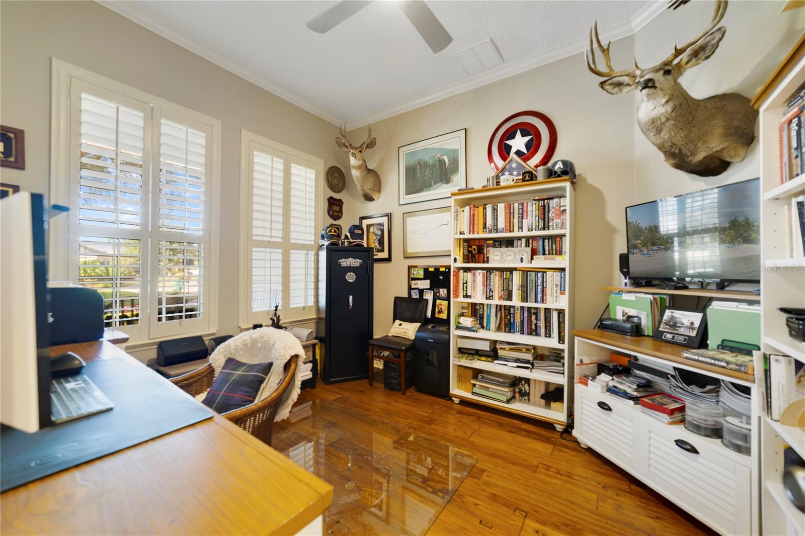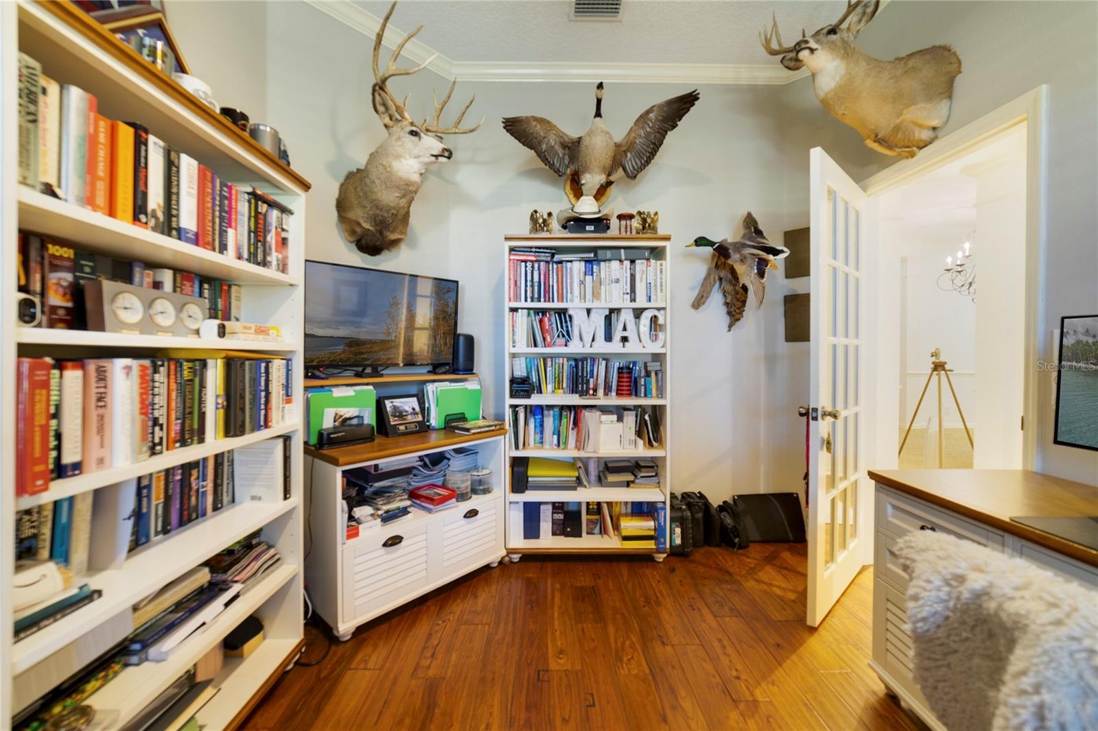 Beautiful David Weekly custom 3 Bedroom, 2.5 Bathroom, Den home with so many upgrades and options. This home, in much sought after Victoria Hills can be yours. These quiet wooded streets and gorgeous lawns are waiting for you. Walk into the front door and you can see all the way through this open concept home to your private garden oasis in the back yard. The following options and features await you inside: Oak Hardwood Floors; Crown Moldings; Ring doorbell, electronic door opener, front lighting, and home security systems; custom finishes and custom pillars; 9 foot ceilings; brick pavers on the the covered front porch, rear lanai, covered screened-in rear porch, driveway and walkways that all match; Plantation Shutters throughout; French doors; new custom Epoxy garage floor; pull down stairs to attic storage in the garage; Ceiling fans/lights in most all the major rooms; New roof in 2021 along with a new gutters; EV charging station in the garage for 220V/30AMP service; central vacuum system. The Den/Office/4th bedroom is on the left as you walk into the main entry. The secondary hallway is next and leads to the second bathroom with shower/bath tub and the second and third bedrooms. The Formal Dining with Custom Chandelier is next on the right. The open concept Great Room/Kitchen area is in the back of the home. The Kitchen has real wood cabinets, granite counters, with tile back splash, a breakfast nook is on the left with space for table and chairs, Stainless steel appliances that include a new LG 5 burner gas stove, microwave, custom Bosch refrigerator, custom LG dishwasher, insta-hot water w/filter, and custom lighting. A new kitchen sink and disposal are on site to be installed. Utility room has LG washer/dryer that convey plus storage cabinets above and below the units. The Formal Dining has a Butlers dry bar area between the kitchen and dining area. The kitchen also has an island with room for several high stools. There is a powder room that has access to the screened-in porch and out-door lanai from both the Great Room and the Kitchen. The Primary suite is off the Great Room and has a primary bath with walk-in shower and soaker tub. The Primary Bath cabinets and Granite match the kitchen and other bathrooms. The spacious Primary bedroom has large walk-in closet, large windows that over look the spacious lanai, electric activated 16x16 awning with auto high wind retraction, and a fire-pit. The rear yard is private and fenced with access gates and can support large holiday/weekend parties as needed. The yard has a recently updated with stone "hard-scape" landscaping and irrigation system/with timers, 3 retracting hose reels and spigots on all sides. property has natural gas for the range, furnace and on demand hot-water-heater plus water softener system . VPHOA has 2 fitness centers, resort style pools, tennis courts, a public golf course, bike trails and much more for an active life style. Home owners receive hi-speed internet services and basic cable from Spectrum as well as brown water for the irrigation of your lawn as part of your monthly HOA Fees. Deland and Stetson University are with-in a 10 minute drive. The weekend activities are endless. There are 2 Advent Health hospitals within a 15 minute drive and many doctors offices as well. Shopping centers abound with many grocery stores. The outlets in Daytona Beach and the Daytona Mall are only 25 minutes away. This home has assumable 2.25% VA loan for qualified buyers.