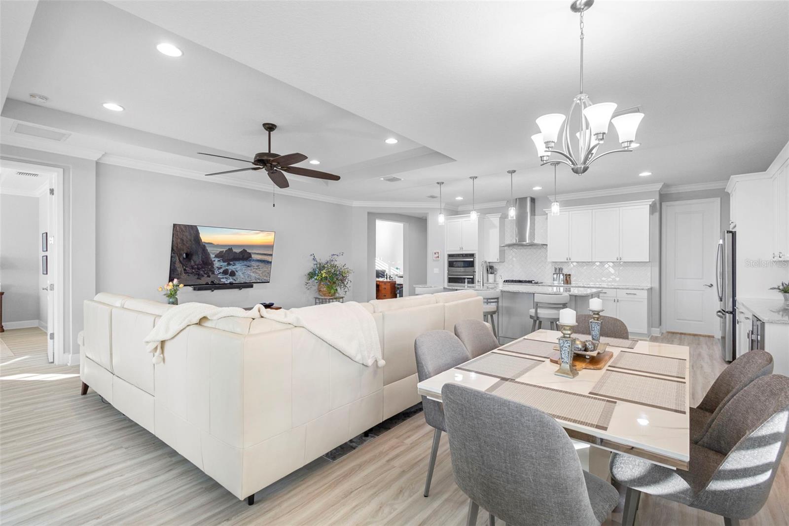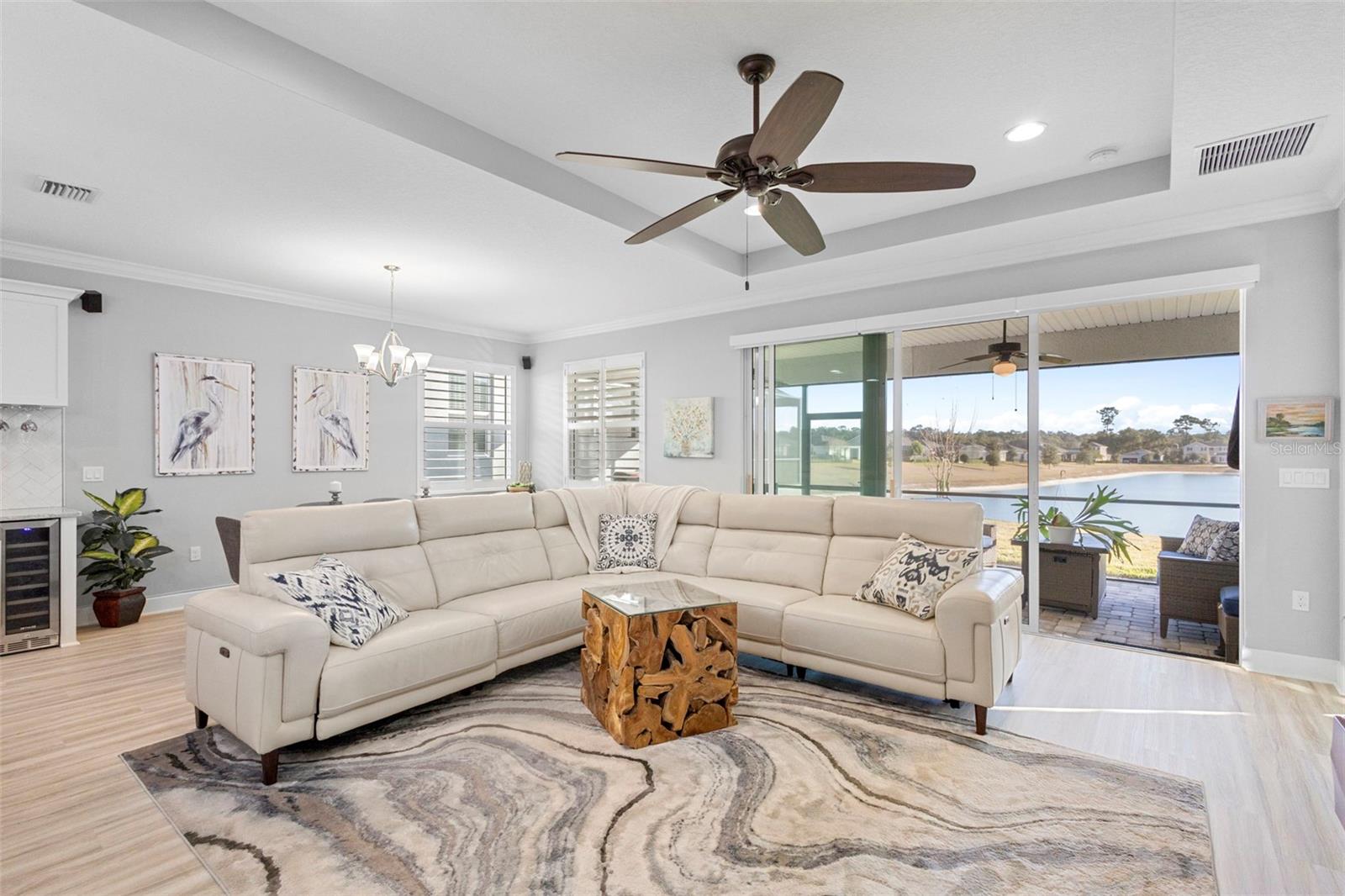 Turn-key and move-in ready, this Lily model by Kolter Homes, built in 2022, is truly set apart by its breathtaking, elevated pond views—among the best in the community. The long water view creates a peaceful backdrop rarely found in Victoria Hills. At the heart of the home is a grand, oversized kitchen—one many dream of owning—perfectly positioned to take full advantage of the view through expansive sliding glass doors. The kitchen features 42” upper cabinets with crown molding, quartz countertops, a full-height backsplash, stainless steel appliances, a statement range hood, a natural gas range, drawer-style lower cabinetry, and a dedicated coffee bar area. Luxury vinyl plank flooring runs throughout the main living areas and bedrooms, with tile in the bathrooms, while every window is enhanced with elegant plantation shutters. The open-concept floor plan seamlessly connects the kitchen, dining, and living areas, creating a spacious and inviting layout ideal for everyday living and entertaining. The home offers 2 bedrooms, 2 bathrooms, plus a flexible bonus room perfect for an office, media room, or sitting area. Both the living room and primary bedroom feature tray ceilings, and the primary suite includes a private en-suite bathroom with dual vanities and a generously sized walk-in closet. With over 1,900 square feet, this home is ideal for those looking to downsize without sacrificing space, comfort, or quality finishes, all within the sought-after DeLand lifestyle of DeLand. Living in Victoria Park means access to RESORT-STYLE AMENITIES, including MULTIPLE POOLS, FITNESS CENTERS, WALKING TRAILS, the VICTORIA HILLS GOLF COURSE, plus CONVENIENT DINING, SHOPPING, and MEDICAL FACILITIES. HOA dues also cover CABLE TV, HIGH-SPEED INTERNET, and IRRIGATION. Don’t miss your chance to tour this beautifully upgraded home—CALL TODAY TO SCHEDULE YOUR PRIVATE SHOWING.