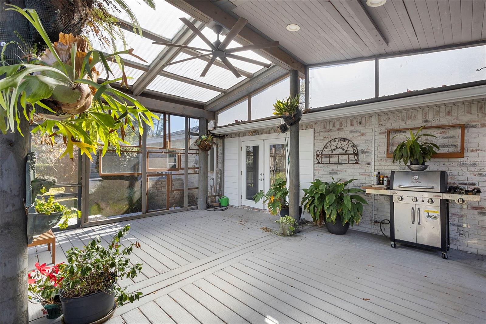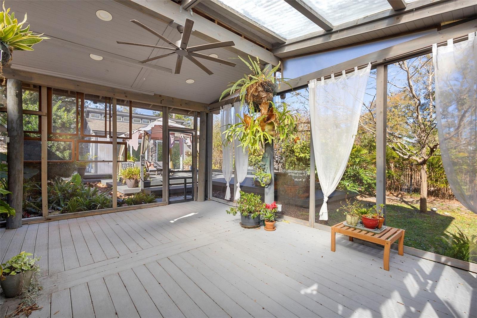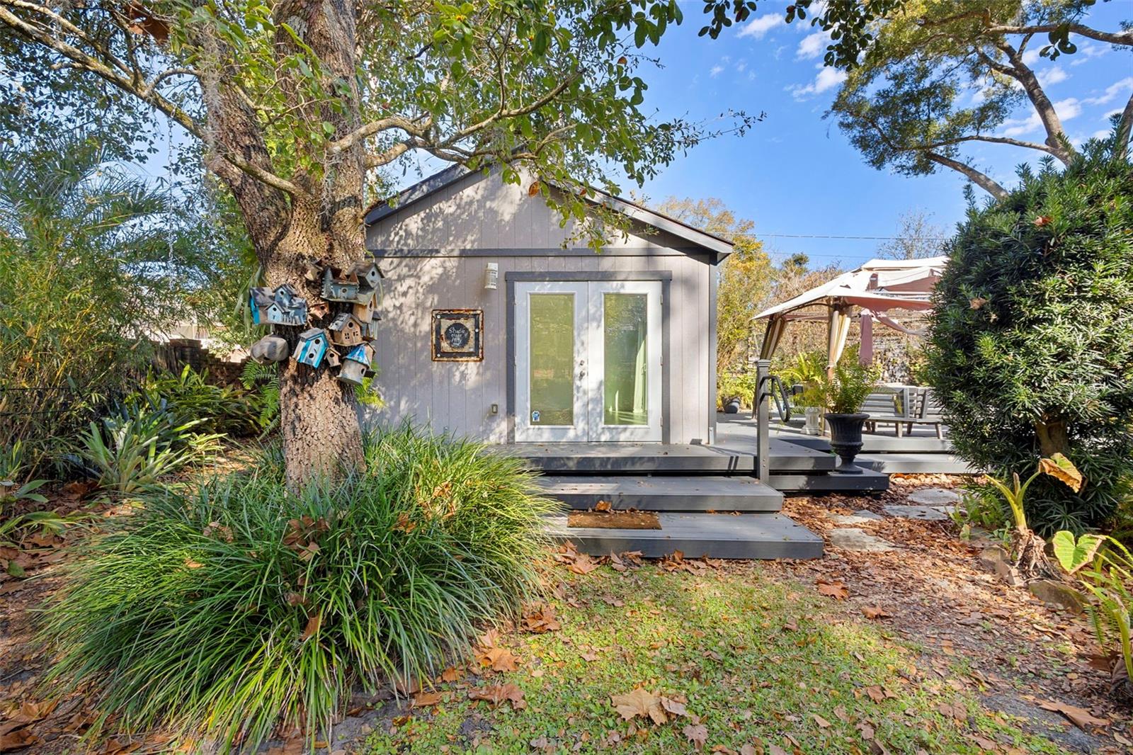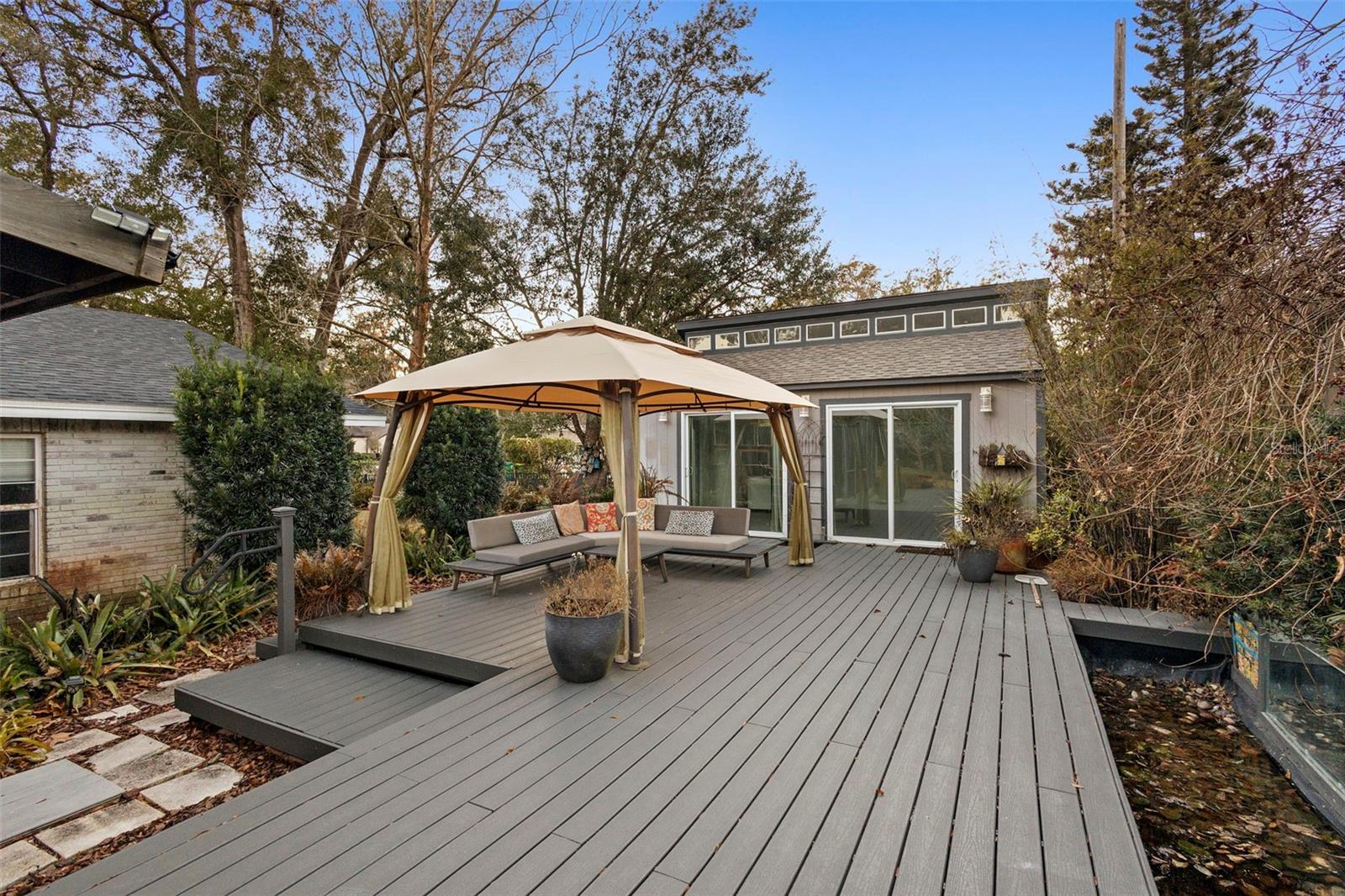 DeLand's new offering, where classic curb appeal meets modern “wow.” Set on a generous .45-acre lot, this beautifully updated 1,873 SF home with 3 bedrooms, 2 baths, plus a DETACHED STUDIO. Peace of mind upgrades include NEW ROOF (2022), whole-house GENERATOR, NATURAL GAS for cooking, and quick water heating. From the outside, it’s traditional and timeless. Step inside & it’s fresh, contemporary, and ready for today’s lifestyle. The kitchen is the true heart of the home, featuring abundant cabinetry, sleek quartz countertops, and a waterfall island. The kitchen flows into the living, dining, and lanai areas, making entertaining feel easy with the open concept feel. The great room is bright and inviting with crown molding, recessed lighting, and large windows that let the sunshine do its thing. Porcelain tile runs throughout for a smooth & clean feel. Bedrooms are spacious, and one guest room includes a Murphy bed, because flexibility is always a win. Now let’s talk about the outdoor living, because it’s exceptional. A large, screened lanai with high ceilings opening up to expansive Trex decking, a gazebo, & fully fenced yard making your backyard dreams a reality. The DETACHED STUDIO extends the living space from the lanai, it has French and sliding doors, and laminate flooring, it's a little retreat for hobbies, art projects or yoga sessions. Just an additional perk to add value. There is plenty of parking with an oversized 2-car garage (workshop area included, plus a 2-car Palram carport.) Historic downtown DeLand is just minutes away where you can shop and eat your way through town.