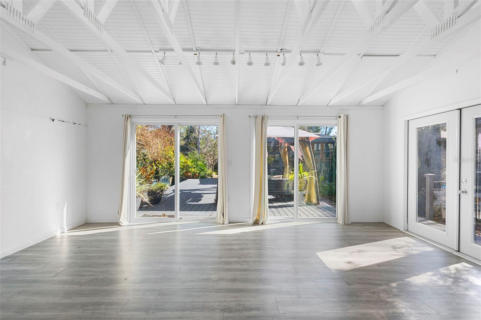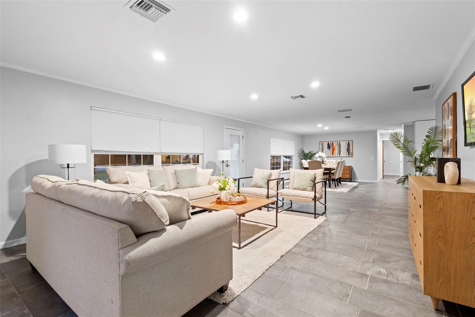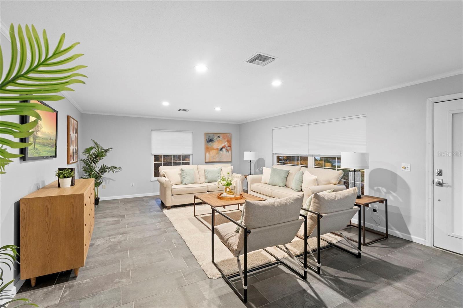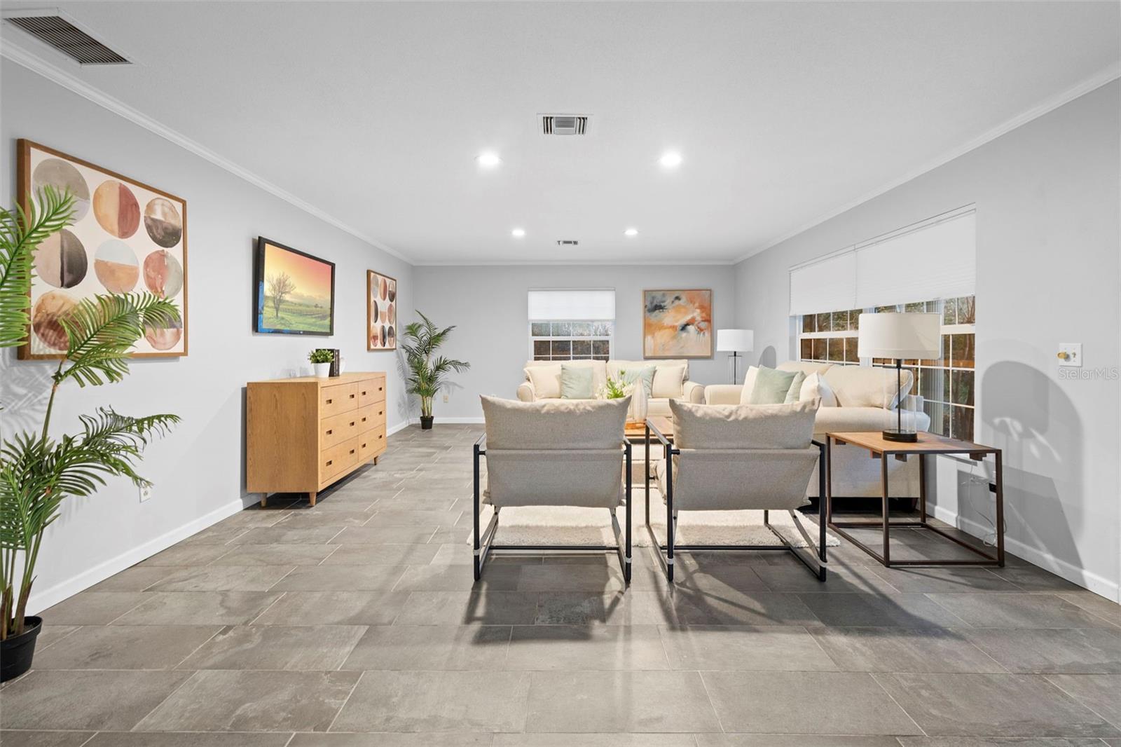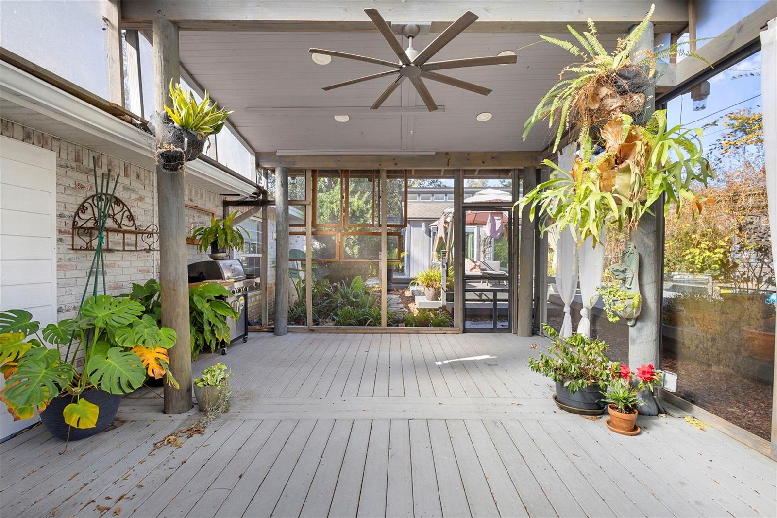 DeLand's new offering, where classic curb appeal meets modern “wow.” Set on a generous .45-acre lot, this beautifully updated 1,873 SF home with 3 bedrooms, 2 baths, plus a DETACHED STUDIO. Peace of mind upgrades include NEW ROOF (2022), whole-house GENERATOR, NATURAL GAS for cooking, and quick water heating. From the outside, it’s traditional and timeless. Step inside & it’s fresh, contemporary, and ready for today’s lifestyle. The kitchen is the true heart of the home, featuring abundant cabinetry, sleek quartz countertops, and a waterfall island. The kitchen flows into the living, dining, and lanai areas, making entertaining feel easy with the open concept feel. The great room is bright and inviting with crown molding, recessed lighting, and large windows that let the sunshine do its thing. Porcelain tile runs throughout for a smooth & clean feel. Bedrooms are spacious, and one guest room includes a Murphy bed, because flexibility is always a win. Now let’s talk about the outdoor living, because it’s exceptional. A large, screened lanai with high ceilings opening up to expansive Trex decking, a gazebo, & fully fenced yard making your backyard dreams a reality. The DETACHED STUDIO extends the living space from the lanai, it has French and sliding doors, and laminate flooring, it's a little retreat for hobbies, art projects or yoga sessions. Just an additional perk to add value. There is plenty of parking with an oversized 2-car garage (workshop area included, plus a 2-car Palram carport.) Historic downtown DeLand is just minutes away where you can shop and eat your way through town.