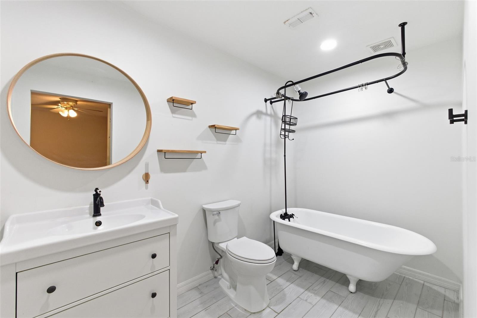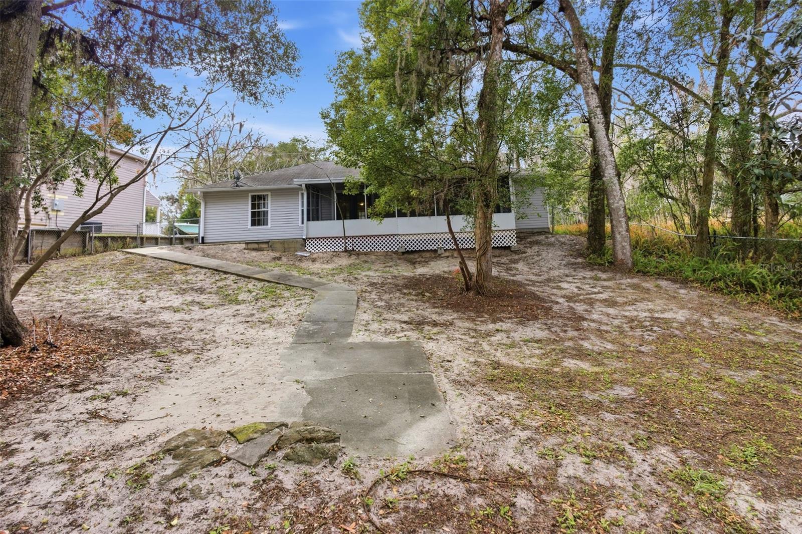 If you’ve been looking for a home that’s simple, functional, and has a little personality, this might be it. Built in 2002, this 3 bedroom, 2 bath home welcomes you with a large open living room right as you walk in. It’s the kind of space where everyone naturally wants to gather. The split floor plan keeps things practical. The primary bedroom sits just off the living room and features wooden barn doors leading to the walk-in closet and ensuite bath. And yes, there’s a claw foot tub, perfect for soaking, relaxing, or pretending you live in a Pinterest board for a solid 30 minutes. The kitchen and dining area flow together easily, with stainless steel appliances, a pantry and sleek counter tops making everything feel fresh and crisp. French doors off the dining area open to a large screened-in wooden deck, great for company or just a solo hang out spot. The backyard is nicely sized with shaded areas from mature trees, giving you space to hang out, let pets roam, or start that garden you’ve been talking about. The two additional bedrooms are on the opposite side of the home with laminate flooring and a full bath that has a unique stone-pebble shower floor. The garage has been partially converted, leaving room for one car plus an extra flex space. Need a quiet office? Storage for things you swear you’ll use again? It has options. Located close to the local hospital and just minutes from all the charm of historic downtown DeLand, you’re near the good stuff while still having your own space to come home to. It’s comfortable, it’s practical, and it might just be exactly what you’ve been looking for.