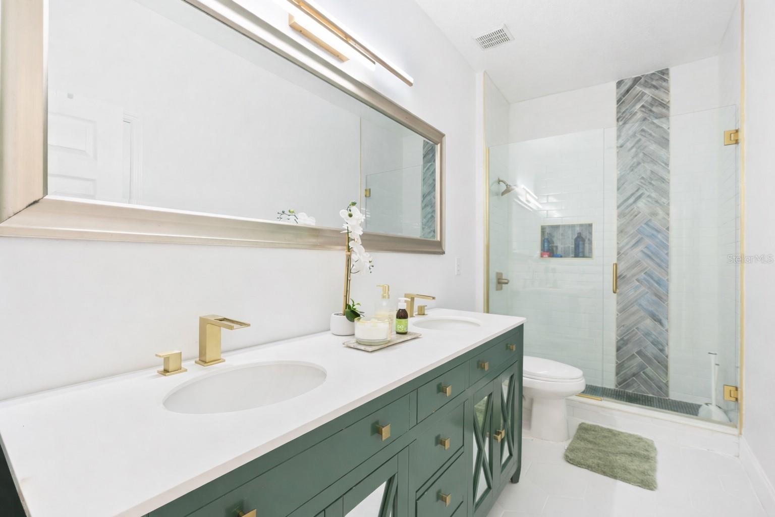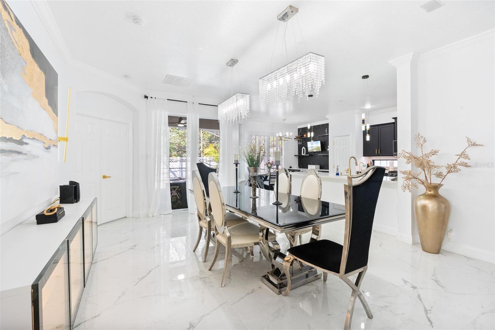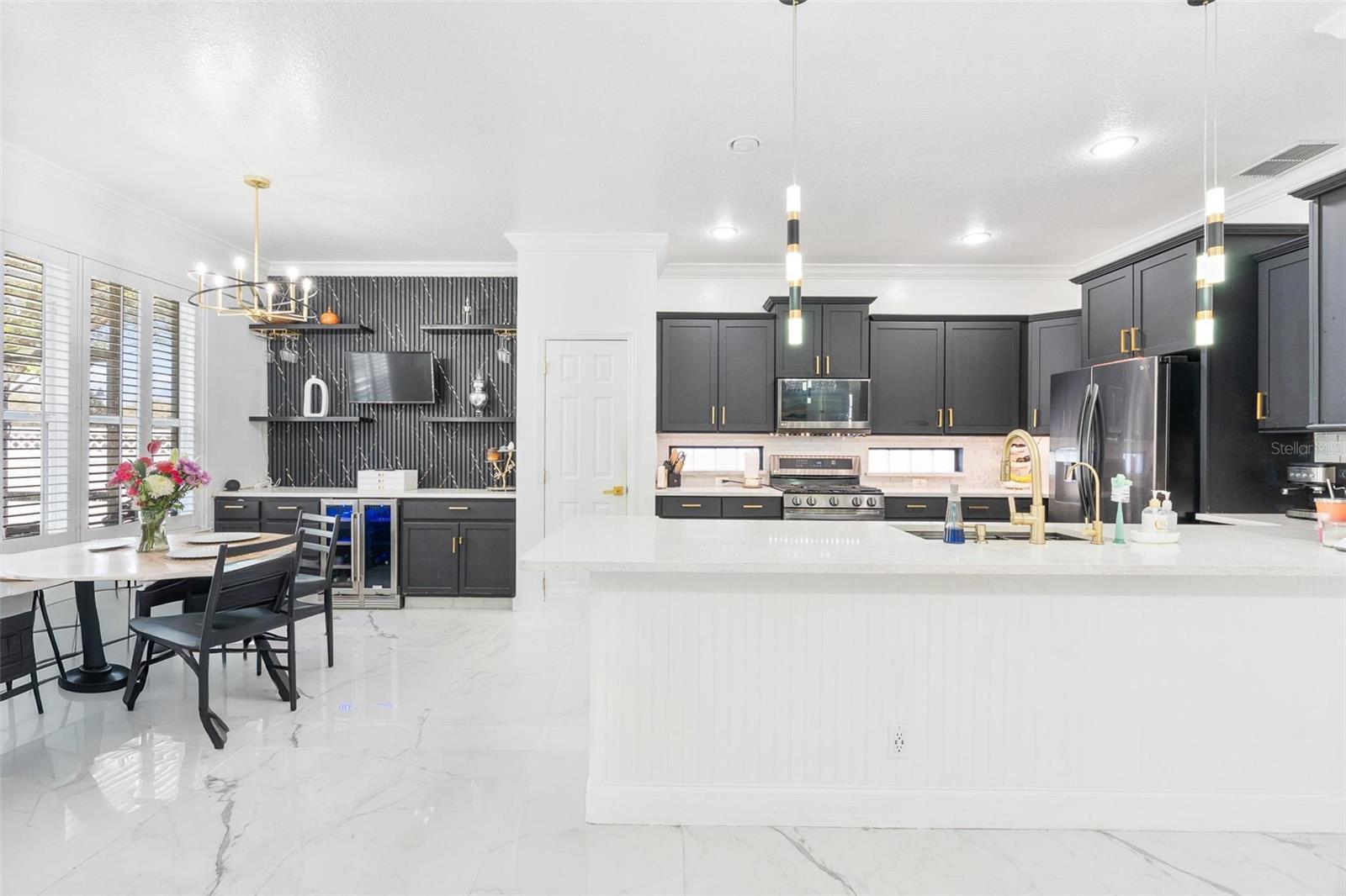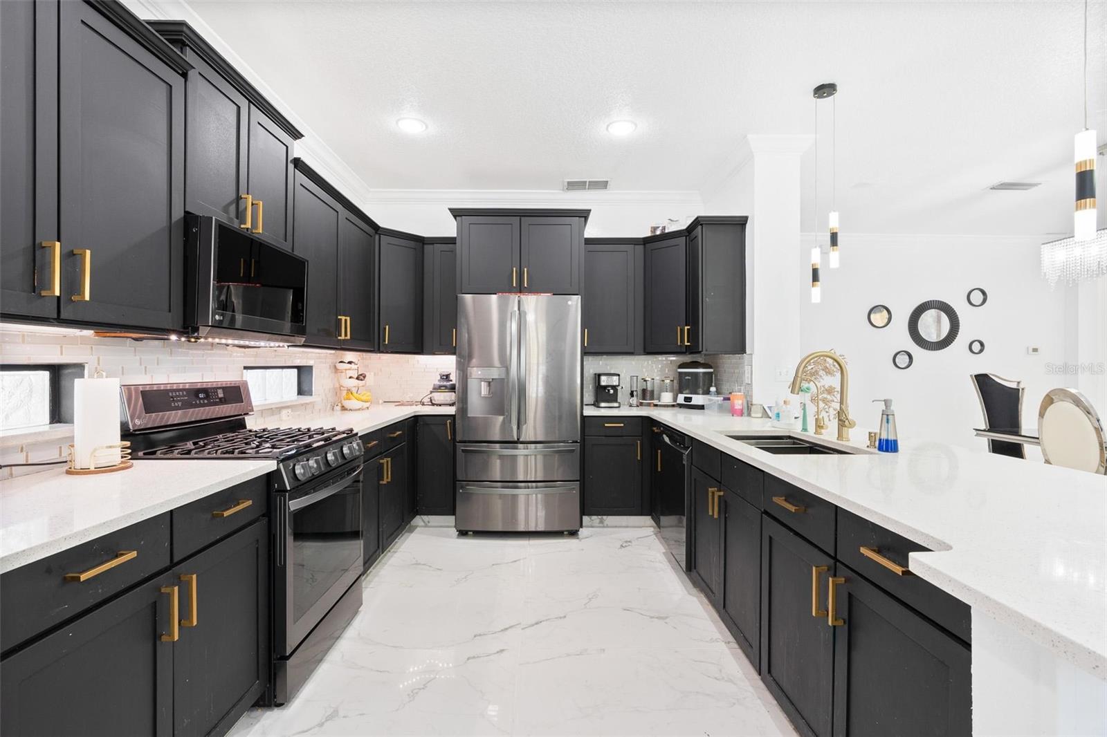Welcome to 400 Brookfield Terrace, a beautifully upgraded corner-lot pool home offering elevated design, modern finishes, and effortless Florida living now enhanced by a BRAND NEW ROOF for peace of mind. This 4-bedroom, 2-bath residence features a desirable split floor plan and no carpet throughout, highlighted by sleek tile flooring that creates a clean, contemporary aesthetic. The interior showcases custom accent walls, statement lighting, and an open-concept layout ideal for both entertaining and everyday living. The chef-inspired kitchen is a true centerpiece, featuring dark custom cabinetry with gold hardware, quartz countertops, stainless steel appliances, an oversized island, and elegant pendant lighting... perfectly blending function and style. In addition, a versatile breakfast nook, dry bar / coffee corner to blend into your own lifestyle. Both bathrooms have been tastefully renovated with custom hand placed tile, vanities and more. Ample bedroom sizing with walk in closets. Step outside to your private, screened-in pool retreat, complete with ambient lighting and space designed for year-round enjoyment. Recent upgrades include exterior expansion and professional landscaping + vinyl fence. Whether hosting guests or unwinding after a long day, this backyard delivers a true resort-style experience. Situated on a premium corner lot, the home offers added privacy, a side-facing garage, and an oversized driveway with ample parking. Ideally located minutes from Victoria Hills Golf Course, historic Downtown DeLand, I-4, and with easy access to Central Florida beaches, this home combines luxury finishes with unbeatable convenience. Move-in ready, meticulously upgraded, and ideally located! Schedule your tour today...