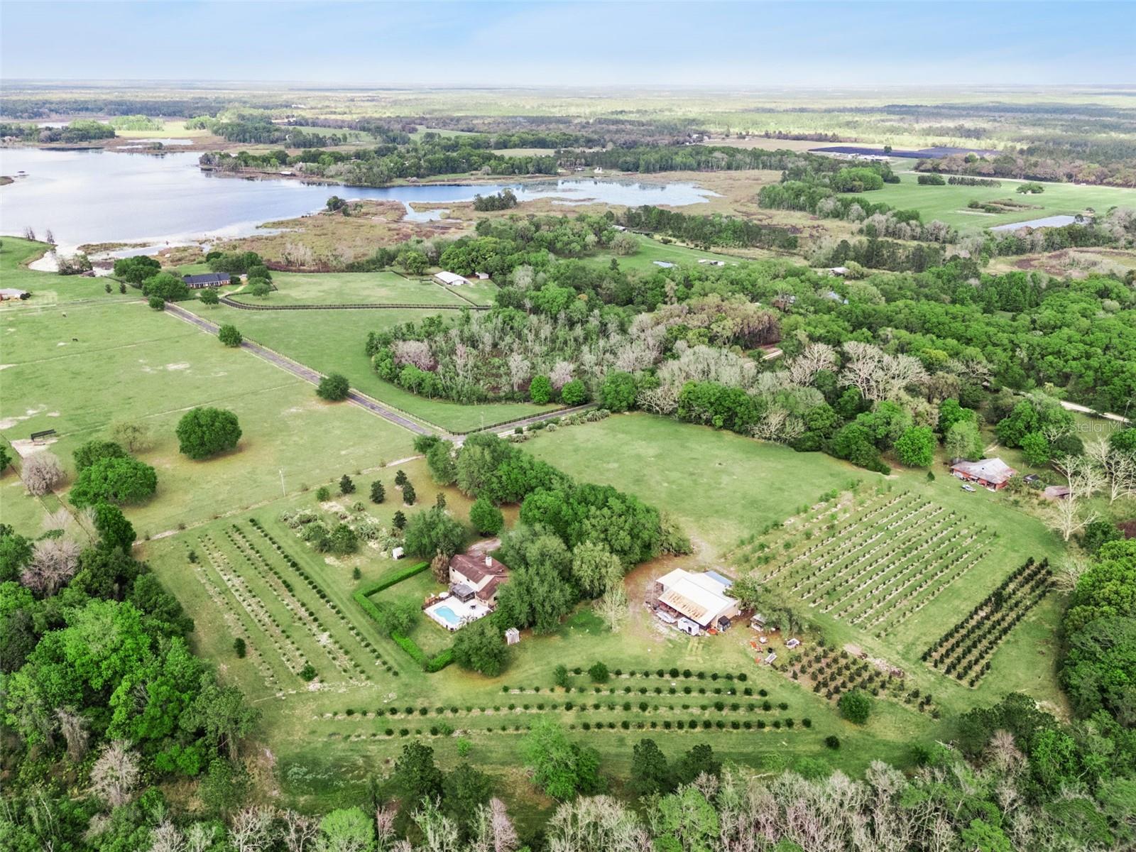 10.6± Acres with Updated 2-Story Brick Home, Pool, Workshop & Income-Producing Nursery. Exceptional opportunity to own a well-maintained home featuring 3 bedrooms, 2 bathrooms, and 2,388 sq ft of living space. The spacious 23x22 great room showcases soaring ceilings, a stunning fireplace, and custom poplar wood interior walls, creating a warm and inviting atmosphere. A 16x12 loft overlooks the great room and offers flexible space ideal for a guest room, office, or playroom. The 19x12 primary suite includes his-and-her closets, a custom-built shoe closet, a beautiful cedar accent wall, and a spiral staircase leading to a loft theater room. The 27x12 kitchen is equipped with solid poplar wood cabinetry, new quartz countertops, a large snack bar, closet pantry, and a dedicated dining area. Enjoy outdoor living from the screened porch overlooking a beautifully maintained yard and a recently renovated in-ground saltwater pool. The pool area is fully fenced and surrounded by lush landscaping for added privacy. Additional features include: 30x50 detached garage/workshop, Covered parking for boats, RVs, and equipment, Fenced pasture suitable for horses or cattle, Irrigation and security systems, The property also includes an operational nursery with over 700 ligustrum and magnolia trees, qualifying for an agricultural exemption and providing annual income. Major systems including roof, HVAC, and appliances are all less than 5 years old, reflecting the home's exceptional upkeep. This unique property offers the perfect blend of country living, functionality, and income potential. Please call to schedule your private showing today!
