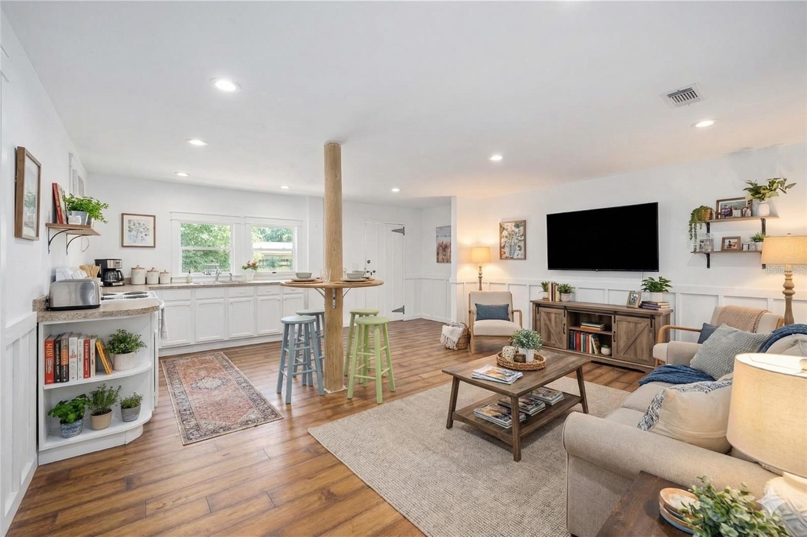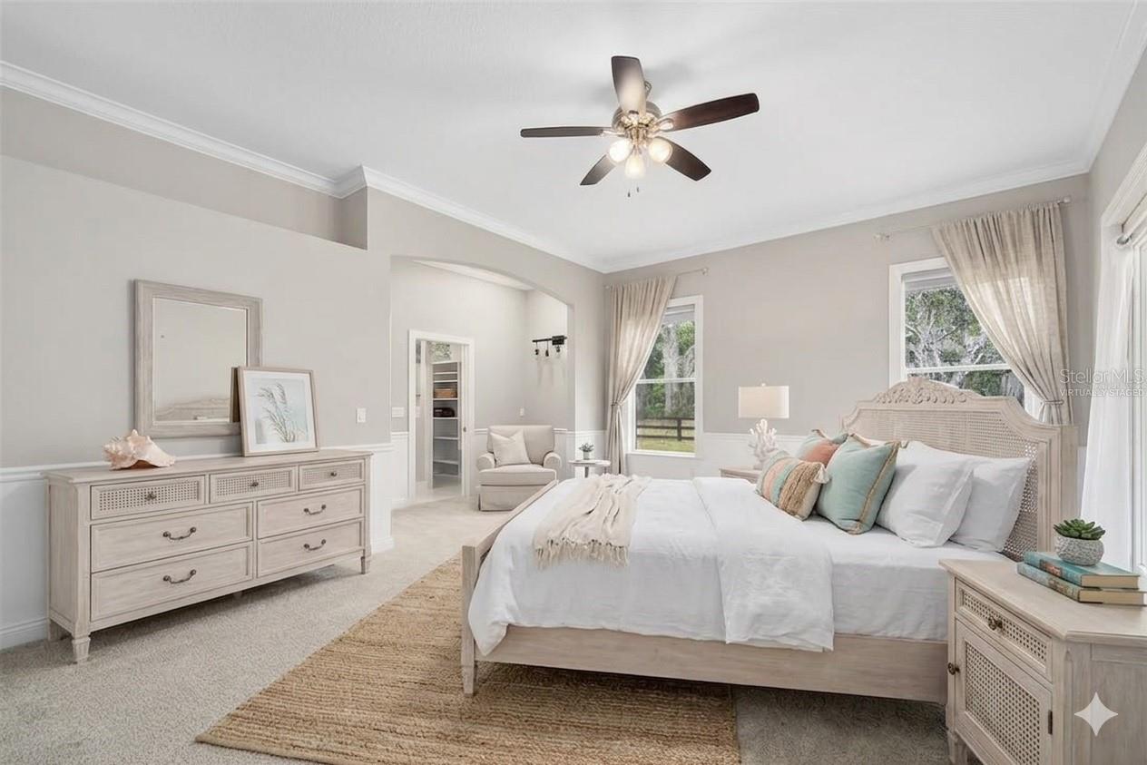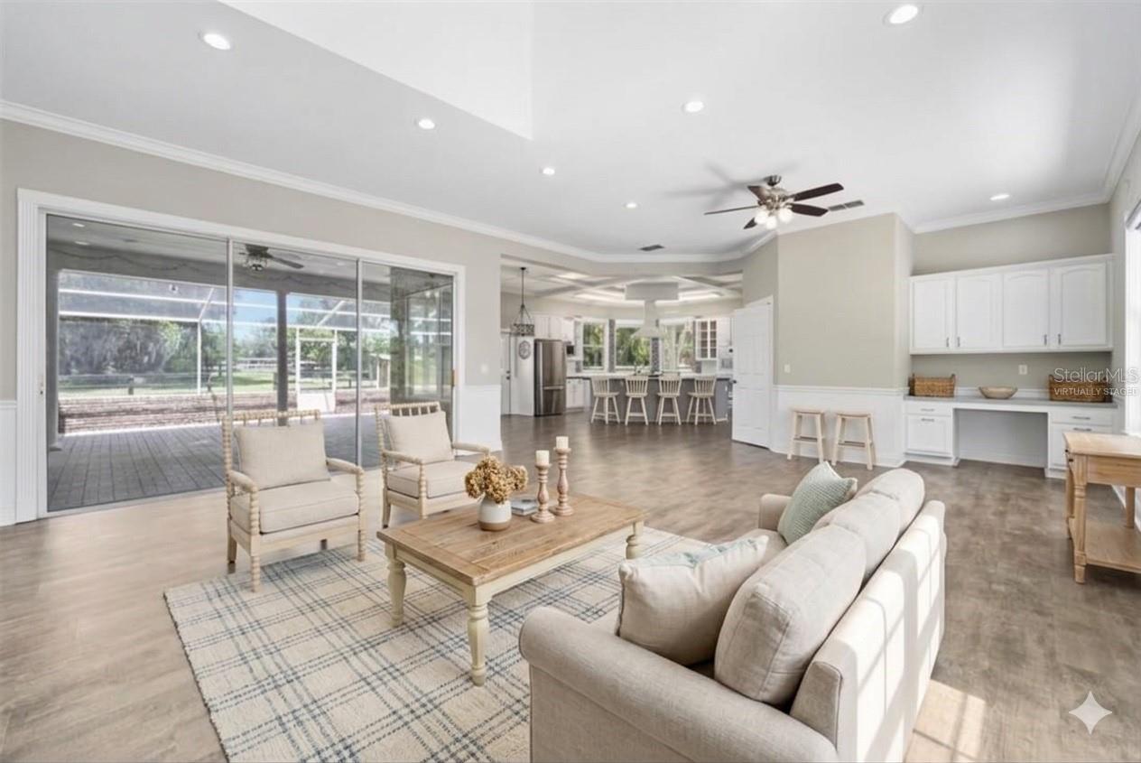Welcome home to farm life at its finest in beautiful Glenwood, Florida! Your stunning meticulously-maintained estate home is waiting for you with endless views of 6.38 picture perfect rolling acres of turn-key horse property that can be seen from almost every room. This 3 bedroom, 2 bath farmhouse style home with nearly 2,300 sq ft of living space features many recent updates throughout and an open floor plan with office (or potential 4th bedroom) that offers spacious, comfortable living in one of the DeLand area’s most desirable neighborhoods. The home's main living area opens to a peaceful 27' x 32' covered and screened lanai with triple-sliding insulated doors and brick pavers, creating the perfect space for entertaining or relaxing in your hot tub while enjoying the private back yard. Outside, the back yard is surrounded by mature landscaping and beautiful live oaks, with a fire pit perfect for unwinding on a cool evening. Highlights of the home include newer Luxury vinyl flooring, appliances (2019-2026), 2019 roof, 2018 HVAC, 2018 water softener, many electrical updates, new office French doors, crown molding throughout, built-in desk and shelving, and a spacious kitchen fully equipped with double built-in ovens, a 5-burner propane cooktop, a breakfast area, walk-in pantry, and so much more. A truly special feature of the property is the 1,700-square-foot 7 stall horse barn, which includes two large air conditioned spaces; one approximately 800 square feet and the other 630 square feet, each with their own bathroom. With one full bath and one half-bath in the barn, this flexible space is ideal for a home gym, workshop, craft room, or guest overflow, while still offering plenty of room for horses. The 5-acre fully fenced pasture features newer fencing, multiple gates, and an electronic gate encloses the property off for added convenience and privacy. Ideally located in the popular Glenwood area, this property is close to horse trails, biking trails, Lake Woodruff Wildlife Refuge, and DeLeon Springs State Park, and the St. Johns River for tons of exploring. You are also just 10 minutes from historic award-winning downtown DeLand and 45 minutes from some of the world's most famous beaches! Now is your chance to own this picturesque property!
