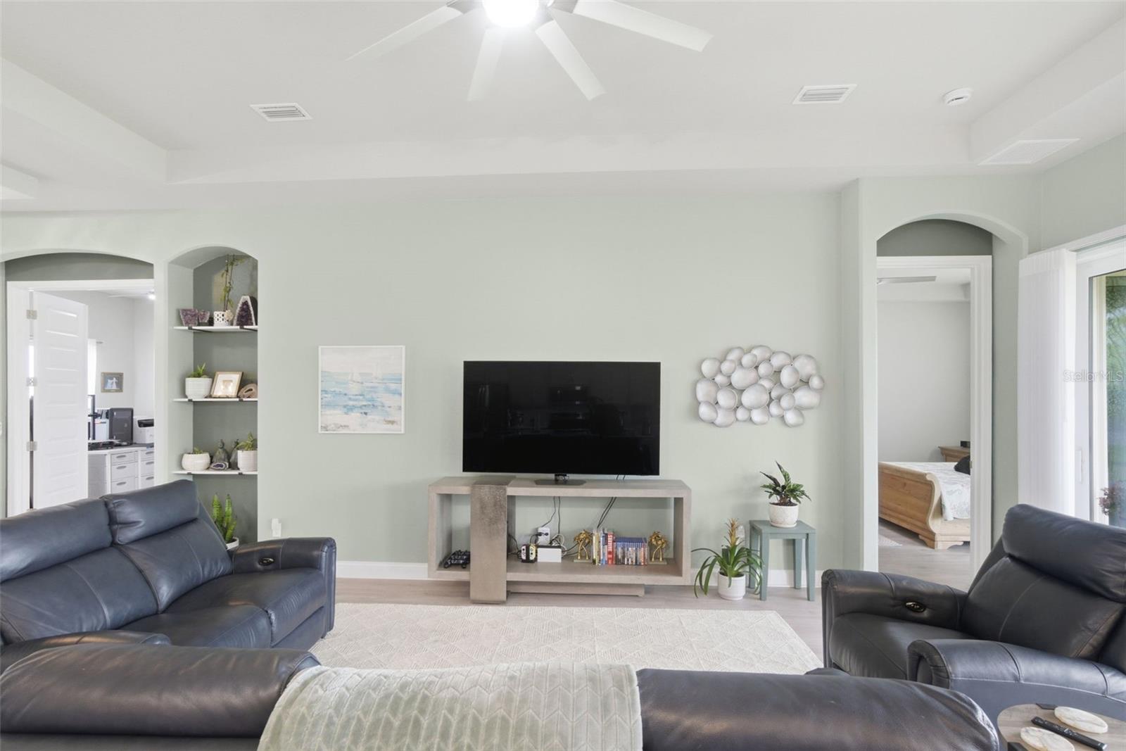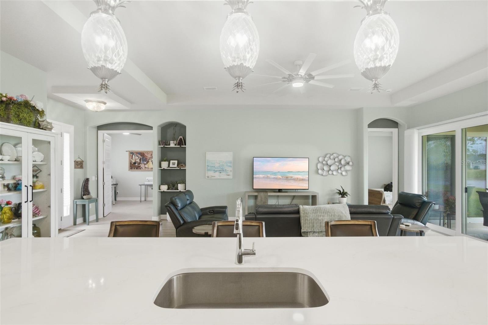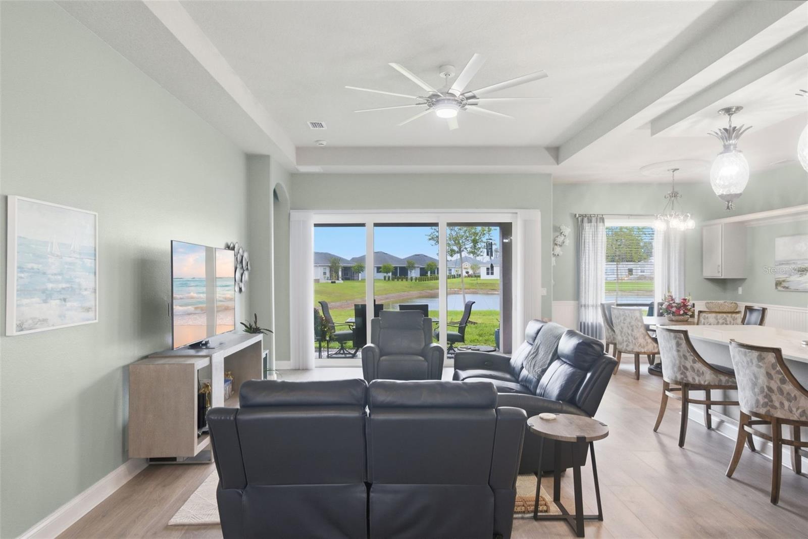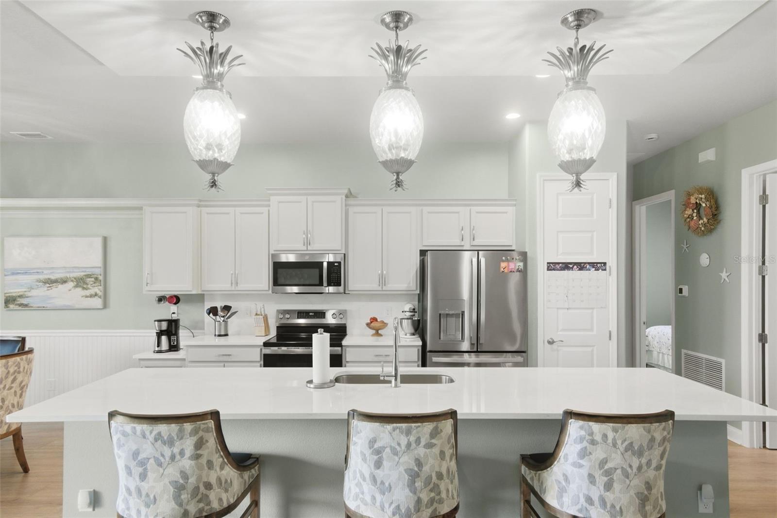 Located in the highly sought-after Reserve at Victoria community in DeLand, this beautifully upgraded Hawthorne II home built by Paytas Homes in 2025 is built with exceptional quality and craftsmanship offering the perfect blend of a modern coastal and energy efficient design. Featuring soaring 10-foot ceilings, an open-concept great room with a tray ceiling, and high-end finishes like Hinkley Plantation lighting throughout, this home is designed for both luxury and entertaining. The included Executive package offers a chef’s kitchen with premium quartz countertops and backsplash with the island spanning 142” long, Wellborn Arlington wood cabinetry, stainless steel appliances including GE Profile 27.9 cu. ft. Smart 4-Door French Door Refrigerator, GE Smart Electric Range No-Preheat Air Fry and convection, double trash pullout and durable Level 3 laminate flooring in the main living space. The DualDrape cordless sheer vertical blinds in the living room let you choose between the calming, soft light of the day, or retreat to the privacy of a darkened room with the turn of a wand. The primary suite is a true retreat, complete with a large walk-in shower and walk in closet. The second bedroom has a private full bathroom ensuite. With three full bathrooms, a dedicated study, and a 3-car garage, this home offers flexibility for families and guests. The GE Profile 4.6 cu. ft. Smart UltraFast Electric Washer and Dryer Combo also conveys with the property. Outside, enjoy the curb appeal of a brick paver driveway and entry, the backyard facing a lovely pond with fountain, and tropical landscaping all set within master-planned community of Paytas and Kolter homes with the HOA including amenities: lawn care, resort pool, pickleball, fitness center and community clubhouse. This home delivers exceptional value and style in one of DeLand’s premier neighborhoods – schedule your private showing today!