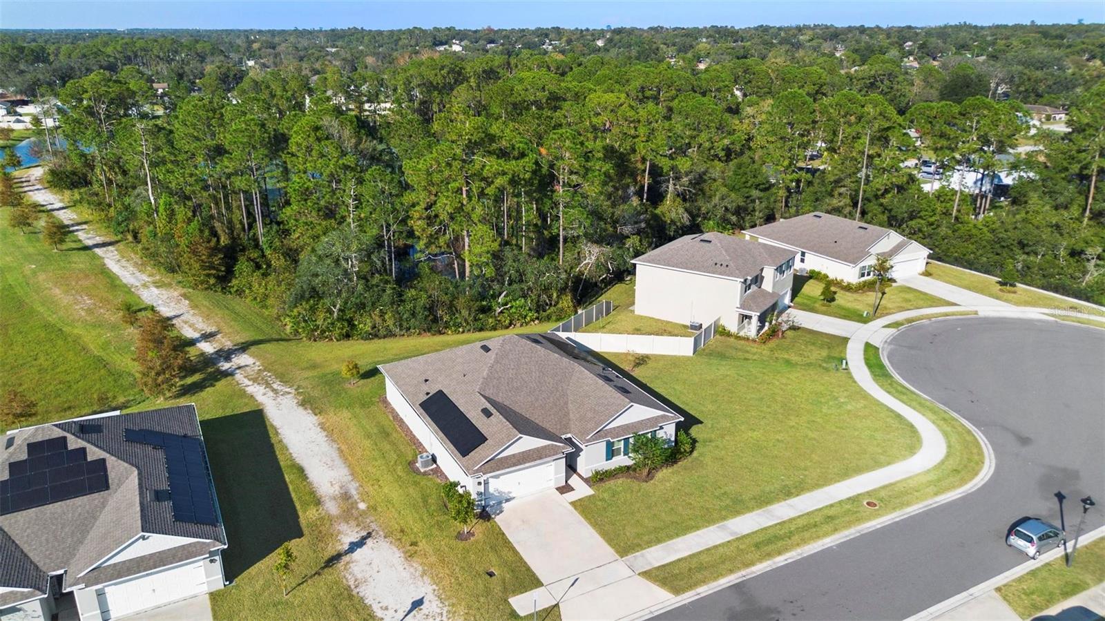 Amazing 2021 Smart Home in a Tranquil Natural Setting...Step into this stunning, energy-efficient smart home and experience modern living at its finest. The welcoming foyer leads to a spacious open-concept living area, perfect for entertaining and everyday comfort. The expansive owner’s suite features a beautifully renovated master bathroom with a granite double-sink vanity, an adult-height counter, and a large walk-in closet. Generously sized secondary bedrooms have ample closet space and abundant storage throughout the home. Designed for efficiency and sustainability, this home boasts block construction, a smart thermostat, and solar panels to keep energy costs low. Additional upgrades include a water softener and filtration system for pure, clean water. Enjoy the serene wooded views from your screened-in lanai, or relax in the front bedrooms, which feature elegant tiled flooring. Nestled in a quaint community surrounded by a natural reserve, this home offers the perfect balance of privacy and convenience. With easy access to I-4, you’re just minutes from Orlando’s world-class attractions, Daytona’s scenic beaches, and the historic charm of St. Augustine and Jacksonville. Don’t miss out on this exceptional home—schedule your showing today!