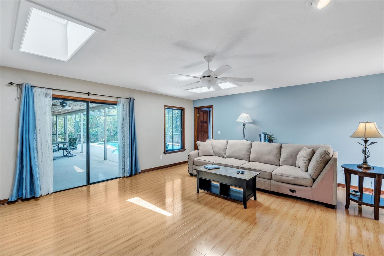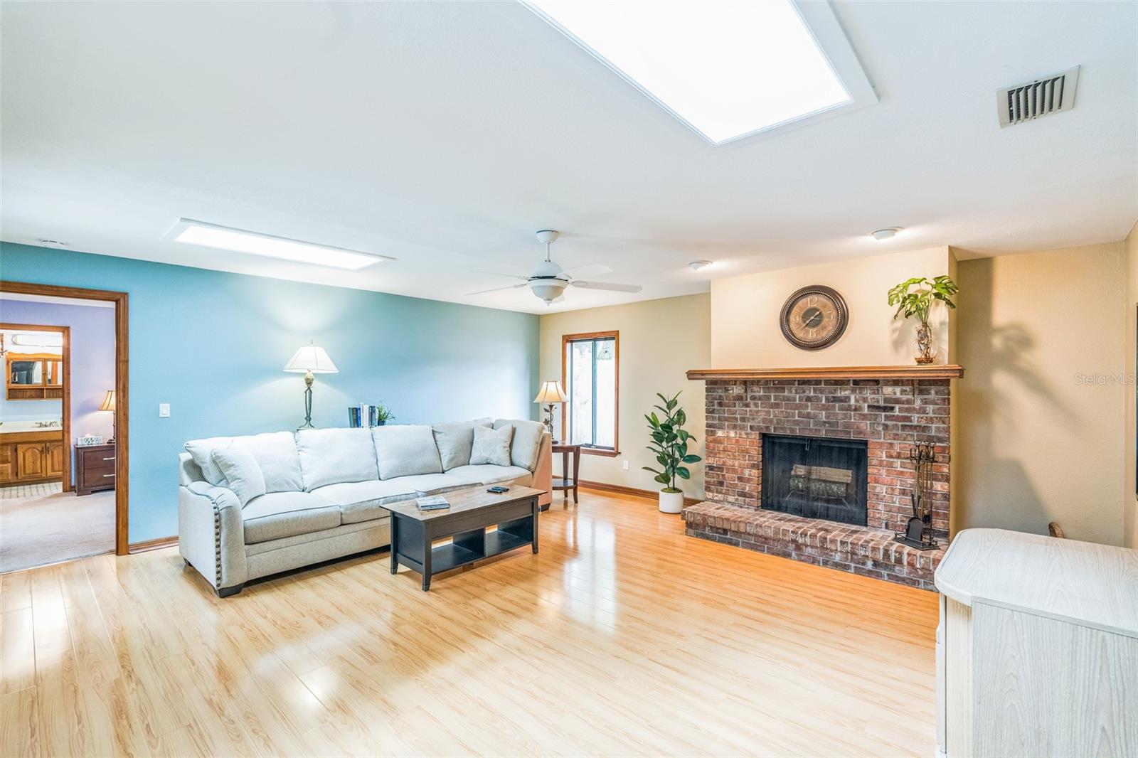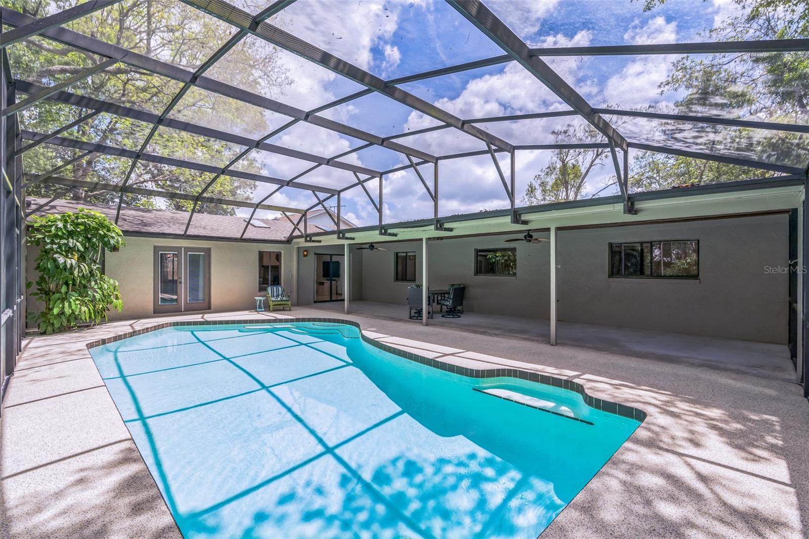 Family living at its finest! This wonderful 4-bed, 3-bath home has 2,273 sq ft of spacious comfort. TWO Primary Suites with full baths and walk-in closets provide plenty of room for everyone. One Primary Suite has French Doors to the pool where you can wake up each morning to sparkling water and the sound of birds. This house is perfect for multi-generational living and your home office. Sip your morning coffee on the very private patio lanai, surrounded by mature tropical trees and foliage. The immense patio (43') is perfect for barbecues, relaxing by the pool, or entertaining on a grand scale. Right off the pool area, you can retreat to the large (19x19') Family Room, providing a fantastic spot to unwind and relax while streaming your favorite shows, movies, and sports teams. During the winter and holiday time, the family can cozy up to the wood-burning brick fireplace. This one-owner home has been lovingly maintained and recently painted inside and out, including new ceiling finishes and light fixtures. Updated amenities include a newly resurfaced Softroc pool deck, drainage field replacement, a freshly sodded lawn, and a new pool pump and timer. Conveniently located near I-4, this home provides an easy commute to Orlando and is just 30 minutes to the beaches. The local neighborhood is a short drive to grocery stores, restaurants, shops, medical care, and a fully accredited hospital.