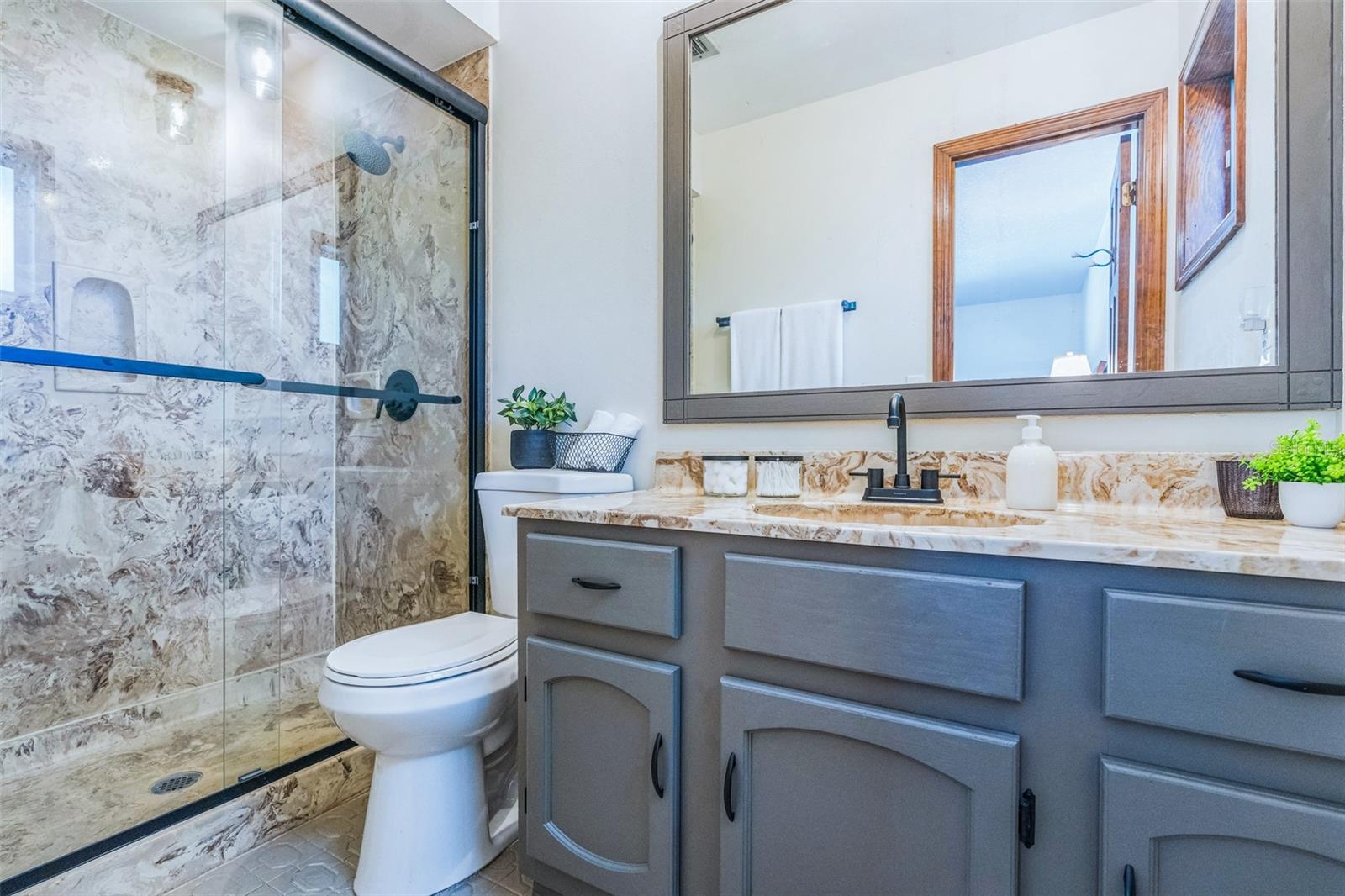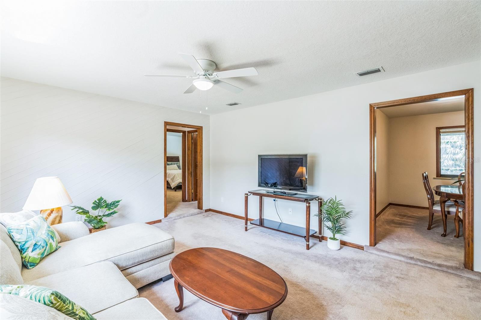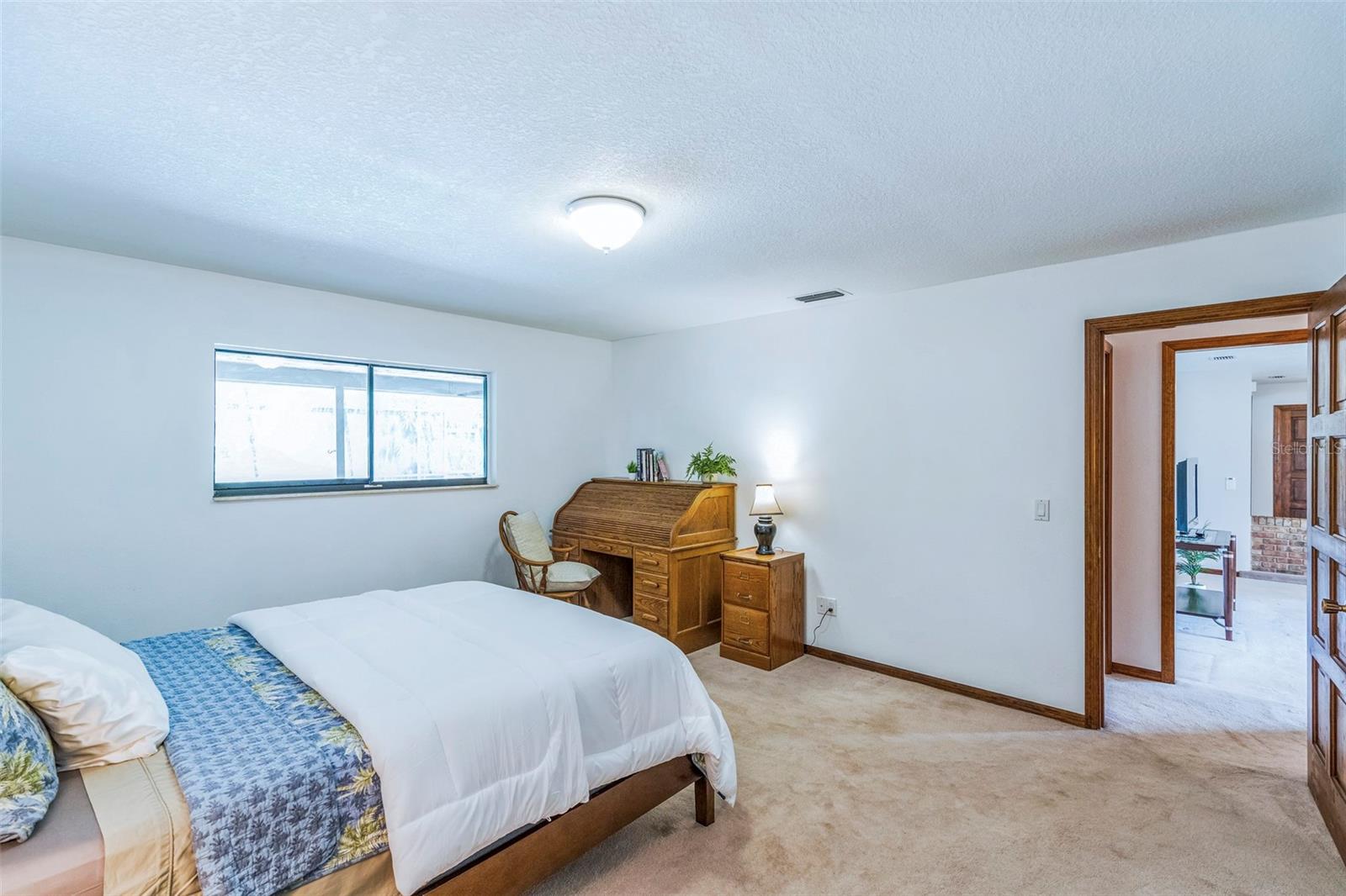 Family living at its finest! This wonderful 4-bed, 3-bath home has 2,273 sq ft of spacious comfort. TWO Primary Suites with full baths and walk-in closets provide plenty of room for everyone. One Primary Suite has French Doors to the pool where you can wake up each morning to sparkling water and the sound of birds. This house is perfect for multi-generational living and your home office. Sip your morning coffee on the very private patio lanai, surrounded by mature tropical trees and foliage. The immense patio (43') is perfect for barbecues, relaxing by the pool, or entertaining on a grand scale. Right off the pool area, you can retreat to the large (19x19') Family Room, providing a fantastic spot to unwind and relax while streaming your favorite shows, movies, and sports teams. During the winter and holiday time, the family can cozy up to the wood-burning brick fireplace. This one-owner home has been lovingly maintained and recently painted inside and out, including new ceiling finishes and light fixtures. Updated amenities include a newly resurfaced Softroc pool deck, drainage field replacement, a freshly sodded lawn, and a new pool pump and timer. Conveniently located near I-4, this home provides an easy commute to Orlando and is just 30 minutes to the beaches. The local neighborhood is a short drive to grocery stores, restaurants, shops, medical care, and a fully accredited hospital.