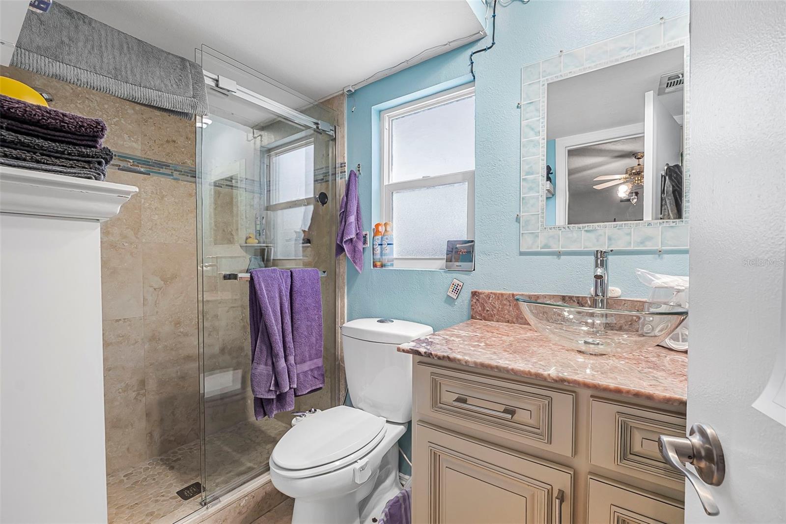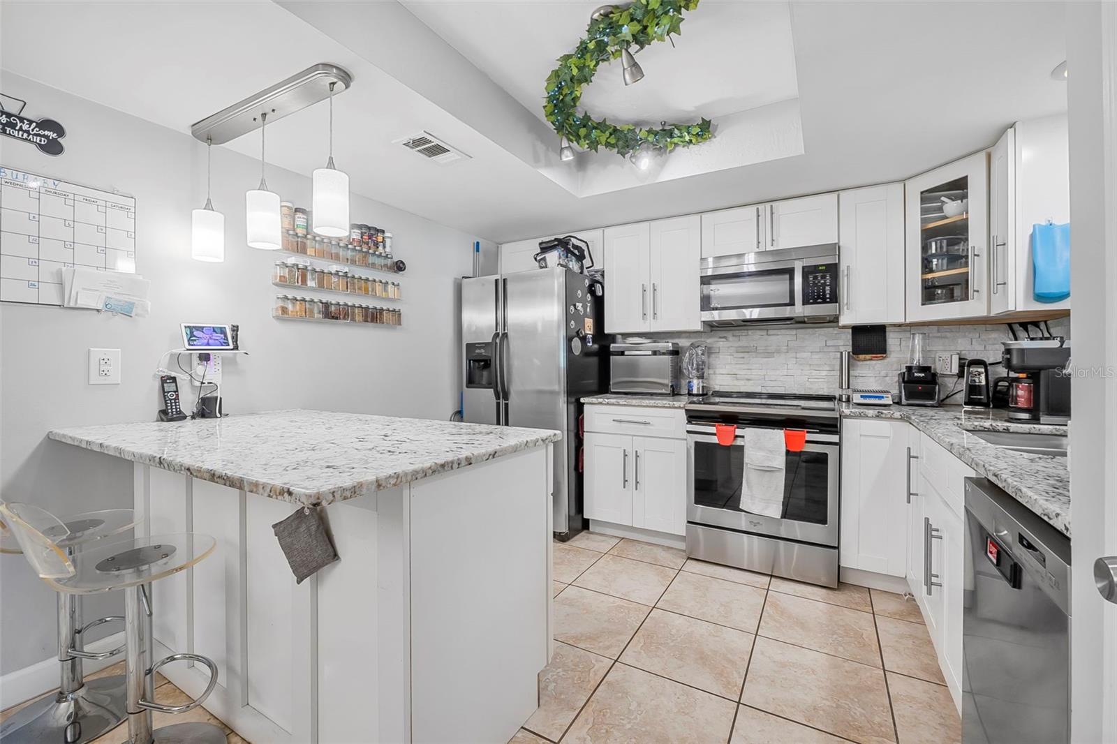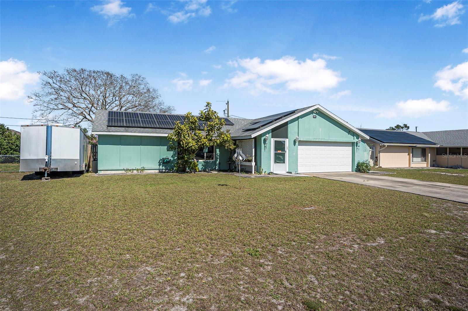 Discover the perfect blend of comfort and elegance at this single-family residence designed with modern families in mind. Nestled in a welcoming community, this 3-bedroom, 2-bathroom home is a haven of tranquility and style. As you step inside, you'll be greeted by an array of luxurious upgrades, including sleek stainless steel appliances that complement the shaker kitchen cabinets. The granite countertops and shimmering quartz backsplash create a culinary workspace that's both beautiful and functional, while upgraded lighting fixtures add a warm ambiance to your gatherings. The primary suite serves as a private retreat, boasting an upgraded bathroom with a travertine walk-in shower and elegant sliding glass doors. Indulge in the lavish vanity featuring an onyx counter and a chic vessel sink that adds a touch of sophistication. The home's thoughtful split floor plan ensures privacy for the entire family, while the expansive 300 sq ft bonus room with a separate entrance offers endless possibilities; transform it into a playroom, home office, or entertainment area. Step outside to the fenced backyard, where children and pets can play freely. This space is perfect for family barbecues and creating lifelong memories. The roof and HVAC was recently replaced and the solar panels are fully paid off! The additional building in the back yard has a bathroom for a potential guest suite. Welcome to your new family oasis where luxury and comfort await.
