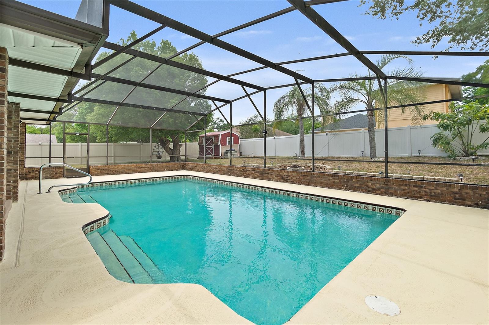 Stunning Brick Pool Home with Solar Savings! Welcome to your own private paradise in sunny Deltona, Florida! This beautiful all-solid brick home is a rare gem, offering the perfect combination of style, comfort, and energy efficiency. From the moment you arrive, you’ll be impressed by the meticulous care and thoughtful upgrades throughout this property. Step inside to find a bright and spacious interior, where double French doors off the living room lead you to an expansive screened enclosure housing a sparkling blue pool – the ultimate Florida lifestyle feature! Whether you’re enjoying morning coffee or hosting a weekend BBQ, this outdoor oasis is sure to impress. The eat-in kitchen is a cook’s delight, with a lovely view of the pool area, plenty of cabinet space, and a stainless steel refrigerator included. Washer and dryer also stay, making this home truly move-in ready. The primary suite is generously sized and features a huge walk-in closet, perfect for all your wardrobe and storage needs. The split bedroom layout offers privacy and space for everyone in the household. Enjoy comfort year-round with a brand-new HVAC system installed in 2023 and an electric pool heater for those cooler months. The home also includes a water softener system and, best of all, a solar panel electrical system that keeps your power bills extremely low — usually under $75 monthly! Located in a quiet, established neighborhood with great schools nearby, this home offers not just a place to live, but a lifestyle to love. Key Features: Solid brick construction Screened-in lanai with sparkling pool Eat-in kitchen overlooking the pool Double French doors to pool area Large master bedroom walk-in closet Stainless steel refrigerator, washer & dryer included Electric pool heater New HVAC (2023) Water softener system Solar panels with low monthly power bills Excellent school district Don’t miss your chance to own this one-of-a-kind pool home in a desirable Deltona location. Schedule your private showing today and make this dream home your reality!