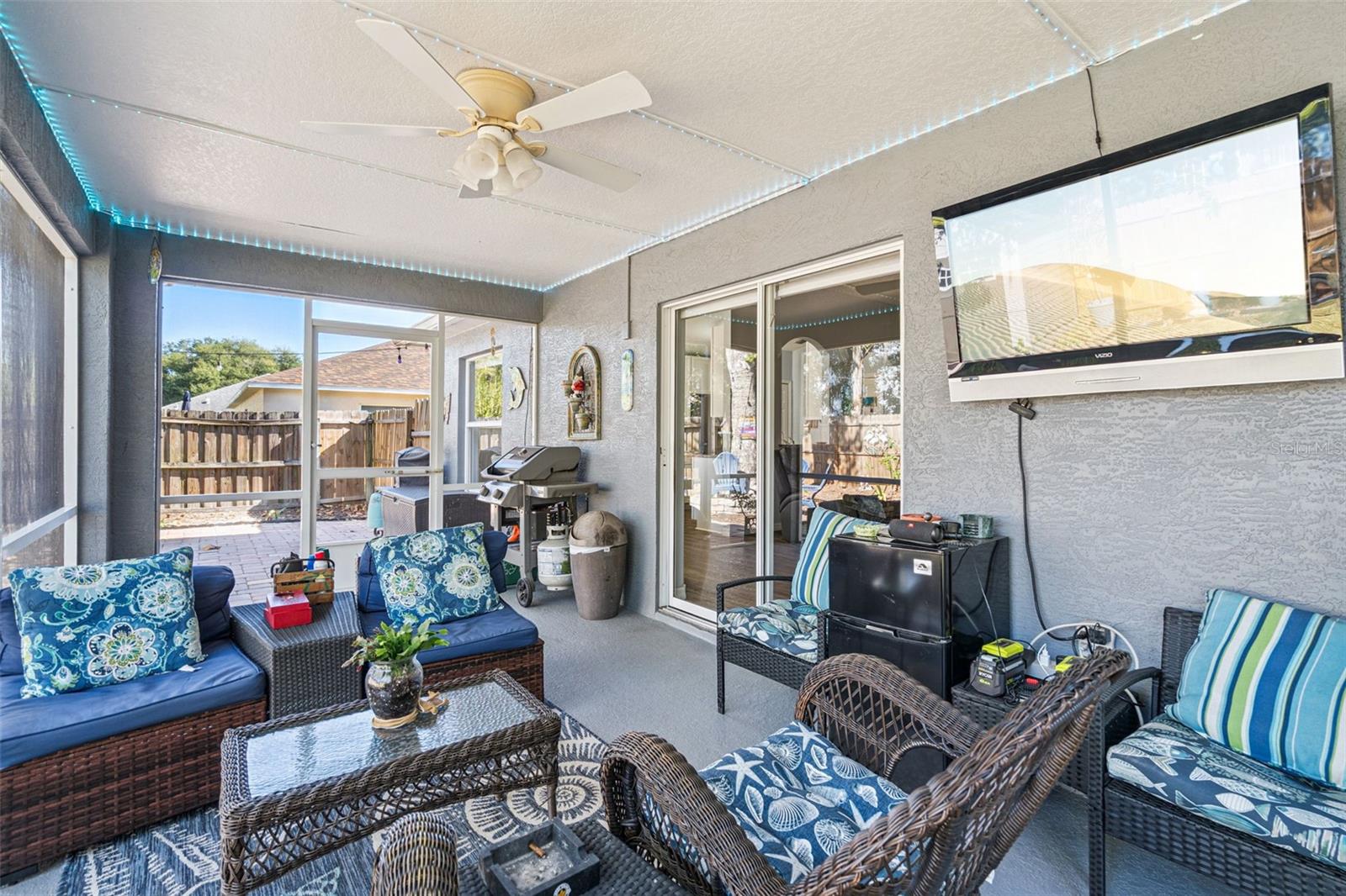 Welcome to a well-kept, thoughtfully designed 3 bedroom, 2 bathroom home offering peaceful views, dependable energy costs, and inviting indoor–outdoor living. Large windows in the living room, kitchen, and breakfast nook overlook the home’s meticulously maintained backyard, creating a calm, natural backdrop throughout the day. A cozy fireplace adds warmth and charm to the main living space. The property features a leased solar system that provides a consistent electric bill of $183.50/month, giving future owners the option of reliable utility costs and long-term financial efficiency. Step outside to a backyard built for Florida living, complete with a screened patio, fire-pit area, and beautifully manicured lawn — ideal for morning coffee, evening relaxation, or weekend gatherings. For buyers looking to establish residency, there is still time to finalize a purchase before the end of the year, allowing the new owner to qualify for homestead exemption. This home offers comfort, predictability, and pride of ownership in a quiet Deltona setting. **Roof 2019, Water Heater 2019, AC 2010-maintained every 6 months**
