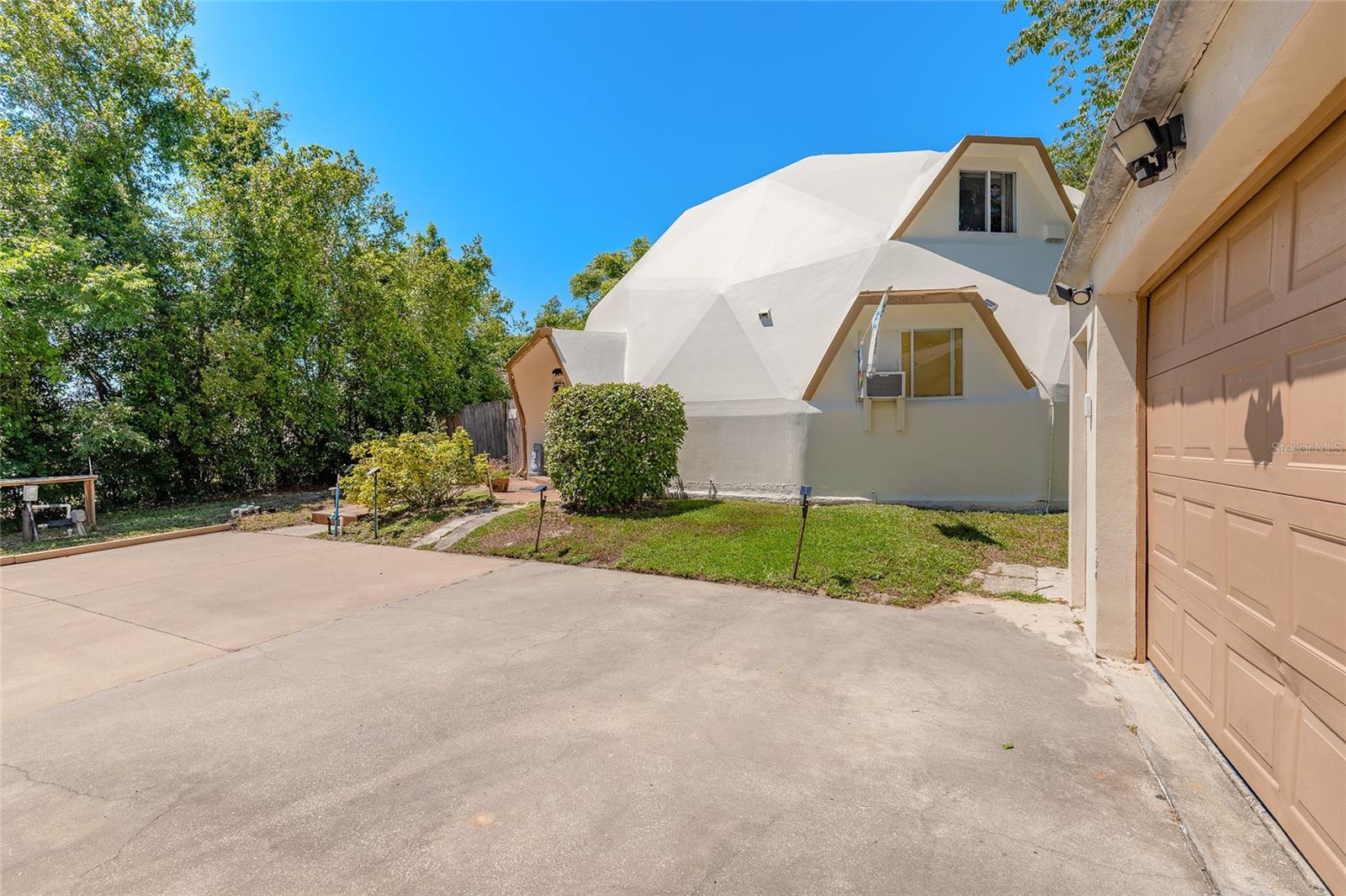 AN ENTERTAINER'S PARADISE! This home has only had 1 owner since its inception in 1991 and is one of 4 Dome Homes for sale in Florida! No flooding here as this home sits high atop a hill. Prepare to be captivated by this uniquely designed, dome-shaped masterpiece from American Ingenuity Domes. Featuring innovative architecture combined with unmatched resilience, this home offers both style and safety. Its steel mesh reinforced concrete exterior provides exceptional protection against hurricanes and strong winds, letting you rest easy no matter the forecast. Designed with energy efficiency in mind, so your electric bill stays low! No more rotting, rusting, warping, or damage caused by mold and pests. This is more than a home; it's your personal fortress of comfort and sustainability. The owner has transformed the back yard over the years into a masterpiece of a tranquil-space garden, resembling that of Harry P Leu Gardens in Orlando. As you walk through the gardens you'll be greeted at the end with a peaceful fountain, walking over the wooden bridge to your gazebo. But that's not all the outdoor features, enjoy the quiet nights under the screened patio in your hot tub, nor will you run out of storage with an oversized detached garage and shed. One of the bedrooms has been converted into a movie-theatre complete with surround sound and base systems, no more spending money out at the theatre when you have one at home! Not only are you close to civilization and local Florida attractions such as De Leon Springs State Park and Daytona Beach, you're also only 30 minutes to Orlando and 1 hour to Universal Studios and Disney World, making this property an excellent AIRBNB opportunity. All information intended to be accurate but cannot be guaranteed.