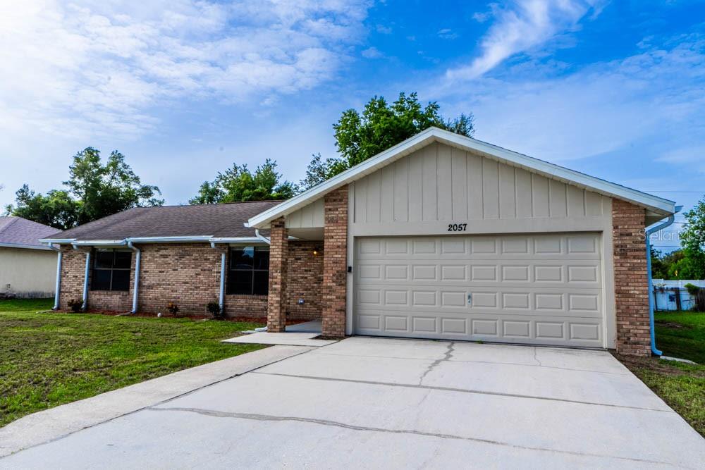Welcome to 2057 Swanson Dr, Deltona, FL 32738! This beautifully updated 3-bedroom, 2-bathroom single-family residence offers 1,880 sq. ft. of living space and is situated on a spacious 0.23-acre lot. Built in 1988, this home combines modern updates with a practical layout perfect for family living. As you enter, you’ll be greeted by a bright and open living room featuring a cozy fireplace, and stylish tile flooring that extends throughout the main areas. The living room seamlessly connects to the dining area, making it ideal for entertaining. The kitchen boasts stainless steel appliances, ample cabinet space, and a unique layout that includes a pantry for extra storage. Adjacent to the kitchen, the dining area provides easy access to the screened patio, where you can enjoy outdoor living in a private and serene setting. The primary bedroom is generously sized at 13'2" x 19'8" and includes a walk-in closet and an en-suite bathroom with dual sinks and a walk-in shower. The additional two bedrooms are well-proportioned and share a fully updated bathroom. Additional features of this home include a 2-car garage, an expansive screened patio perfect for outdoor gatherings, and a large backyard with plenty of space for outdoor activities. Located in the peaceful community of Deltona Lakes, this home is close to Deltona Lakes Elementary, Heritage Middle School, and Pine Ridge High School. Deltona offers a variety of parks, recreational facilities, and easy access to major highways, making it a convenient place to live. Don’t miss this opportunity to own a beautifully updated home in a great location. Schedule your private showing today!