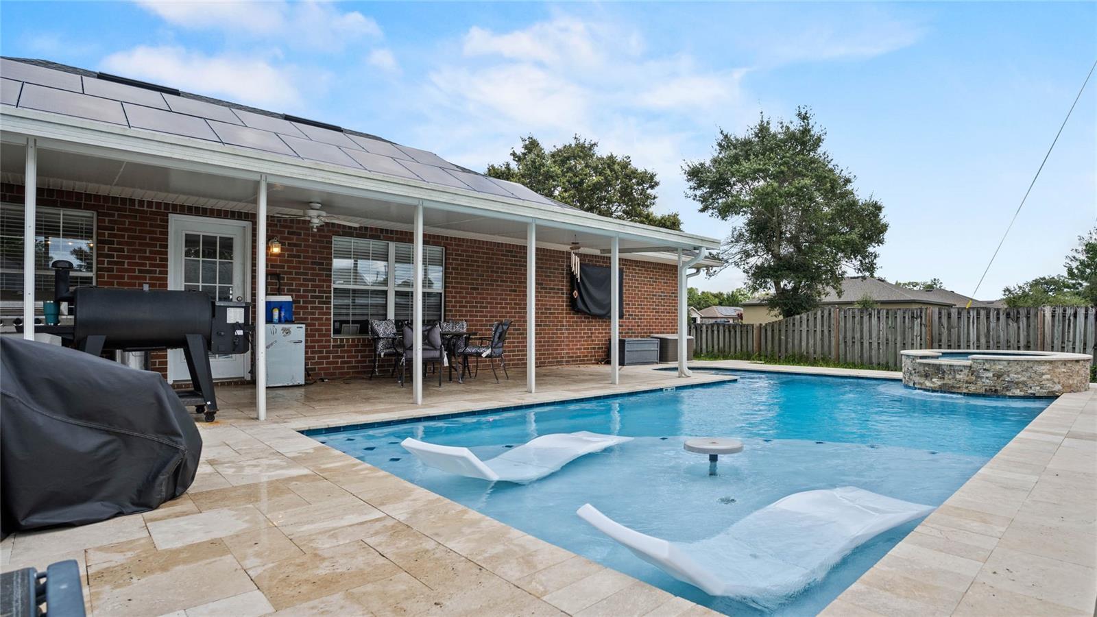 Welcome home to 2727 N Juliet Dr in Deltona! This charming 4-bedroom, 2 bath home sits on an oversized fully fenced, corner lot. Enjoy the beautiful saltwater pool and spa for entertaining and summer BBQ’s! Brimming with character and warmth, this home offers a split plan bedroom layout with just over 2000 living square feet. Inside laundry room that is extra-large with plenty of storage space! HVAC is approximately 2 years old. Solar Panels are 2 years old. Pool and hot tub are approximately 3 years old. New garage door Apr 2024. Roof is approximately 5 years old. This is a must see close to Daytona Beach, Orlando, area attractions and local beaches. Square footage received from tax rolls. All information recorded in the MLS intended to be accurate but cannot be guaranteed. Buyer(s) responsible for verifying all information.