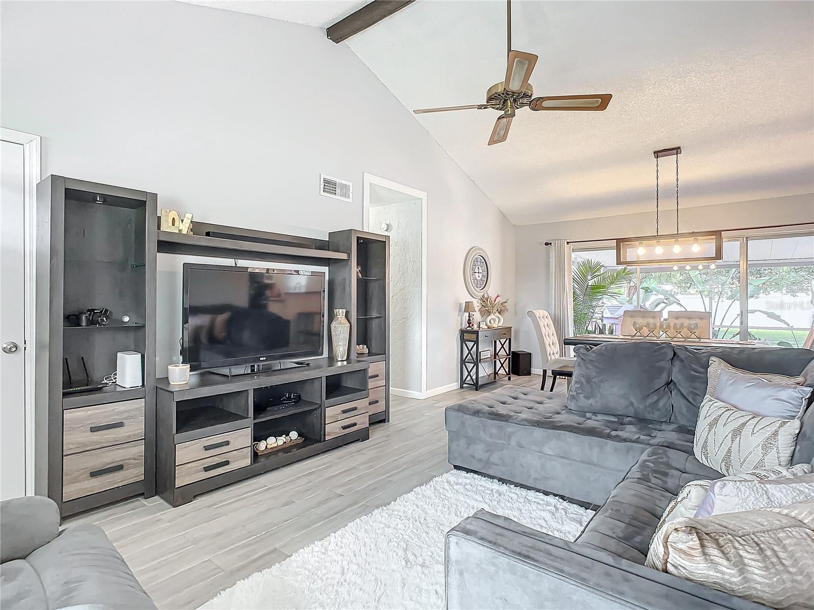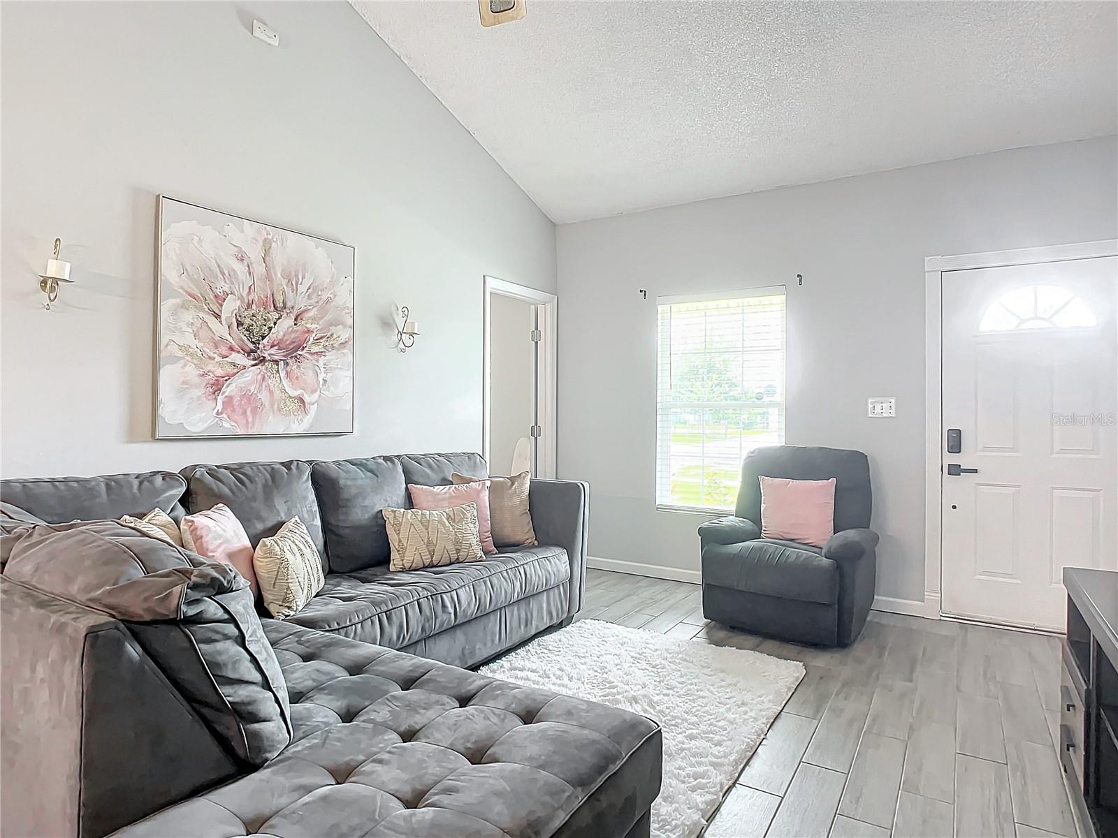 PRICE REDUCED to $299,000 – MOTIVATED SELLERS! Welcome to this charming and impeccably maintained 3-bedroom, 2-bath single-family home, offering 1,448 sq ft of comfortable living space. The open-concept layout features a stylish kitchen with updated cabinets and countertops, along with beautifully renovated bathrooms. A flexible bonus room adds extra versatility—perfect for a home office, playroom, or relaxation area. Step outside to a spacious, fully fenced backyard ideal for entertaining, complete with a screened porch and an above-ground pool for year-round enjoyment. The two-car garage provides ample storage, and energy-efficient solar panels (installed in 2023) help keep electric bills to a minimum—with the loan to be paid off by the sellers at closing! Additional updates include a roof and permitted addition completed in 2020, appliances from 2019, and a brand-new dishwasher. Located close to shopping, dining, schools, and town centers, this home is the perfect blend of comfort, convenience, and value. Now offered at a reduced price—schedule your private showing today before it’s gone!