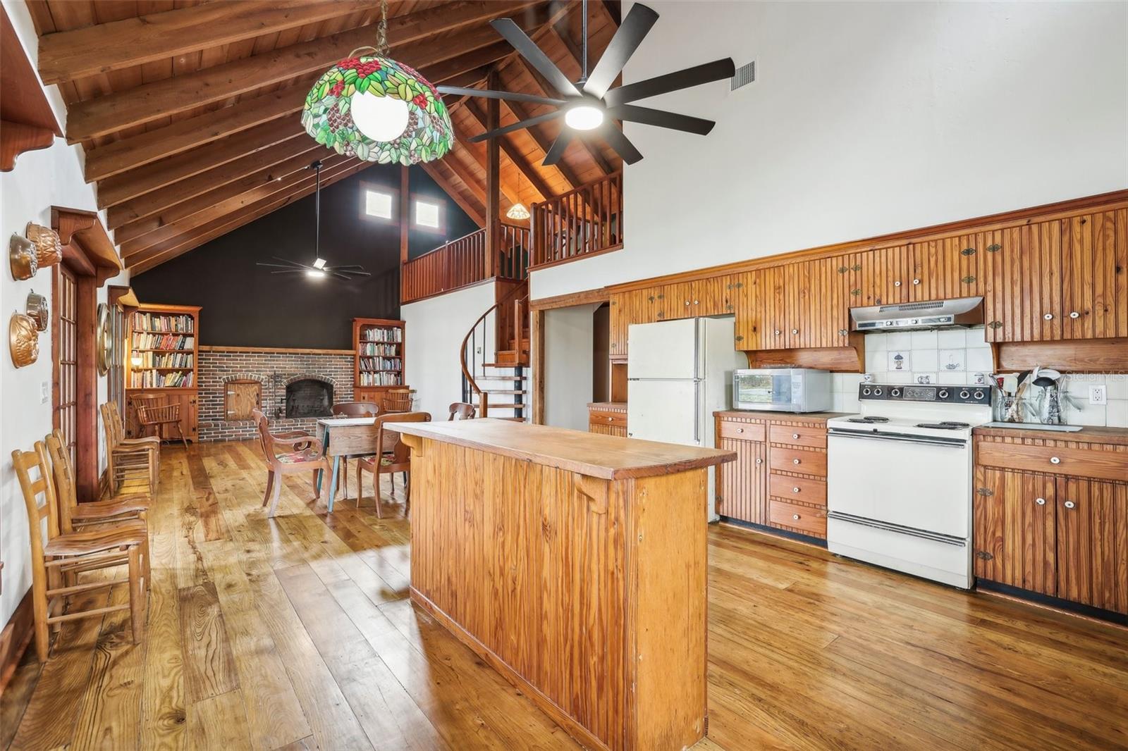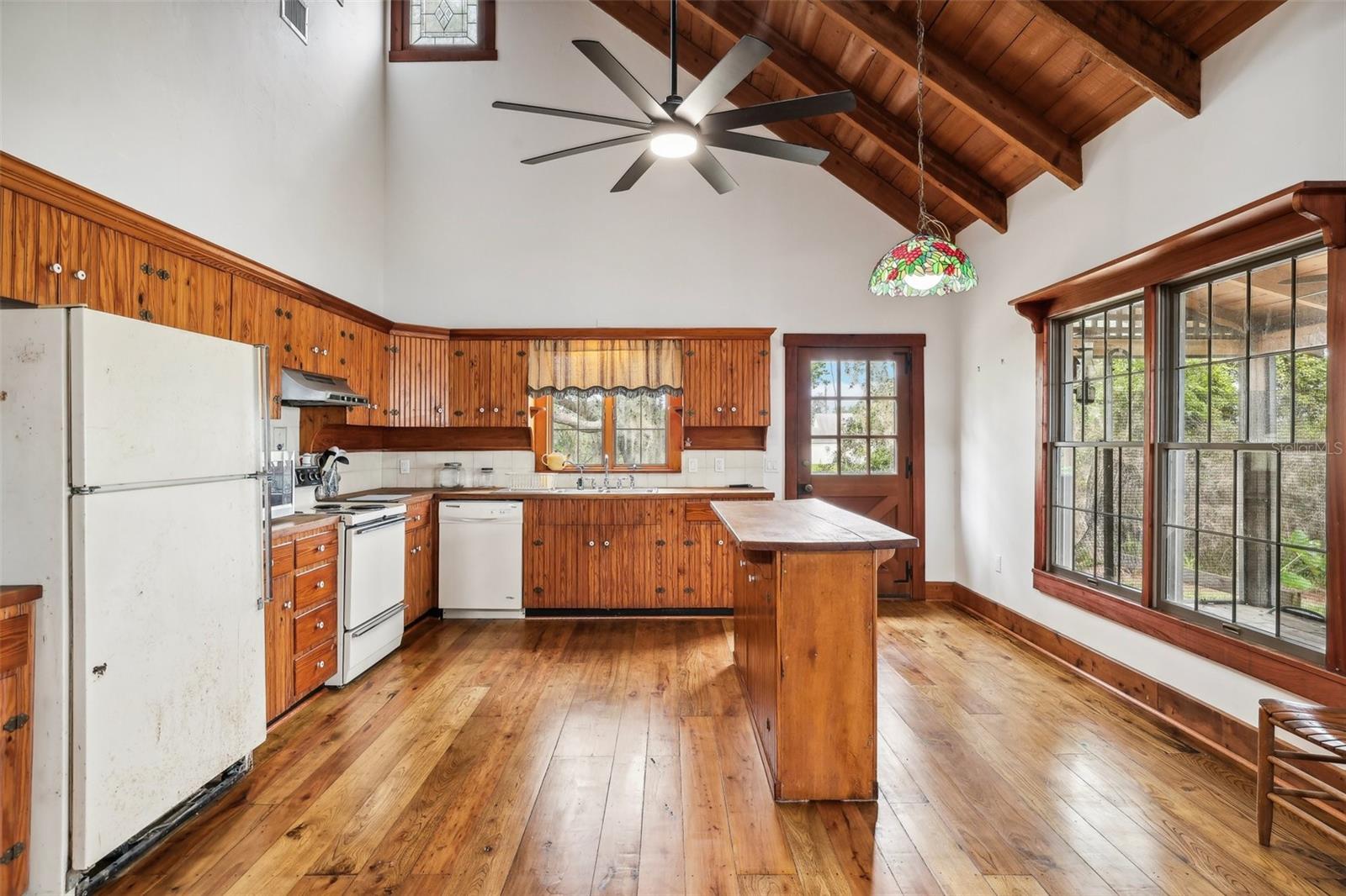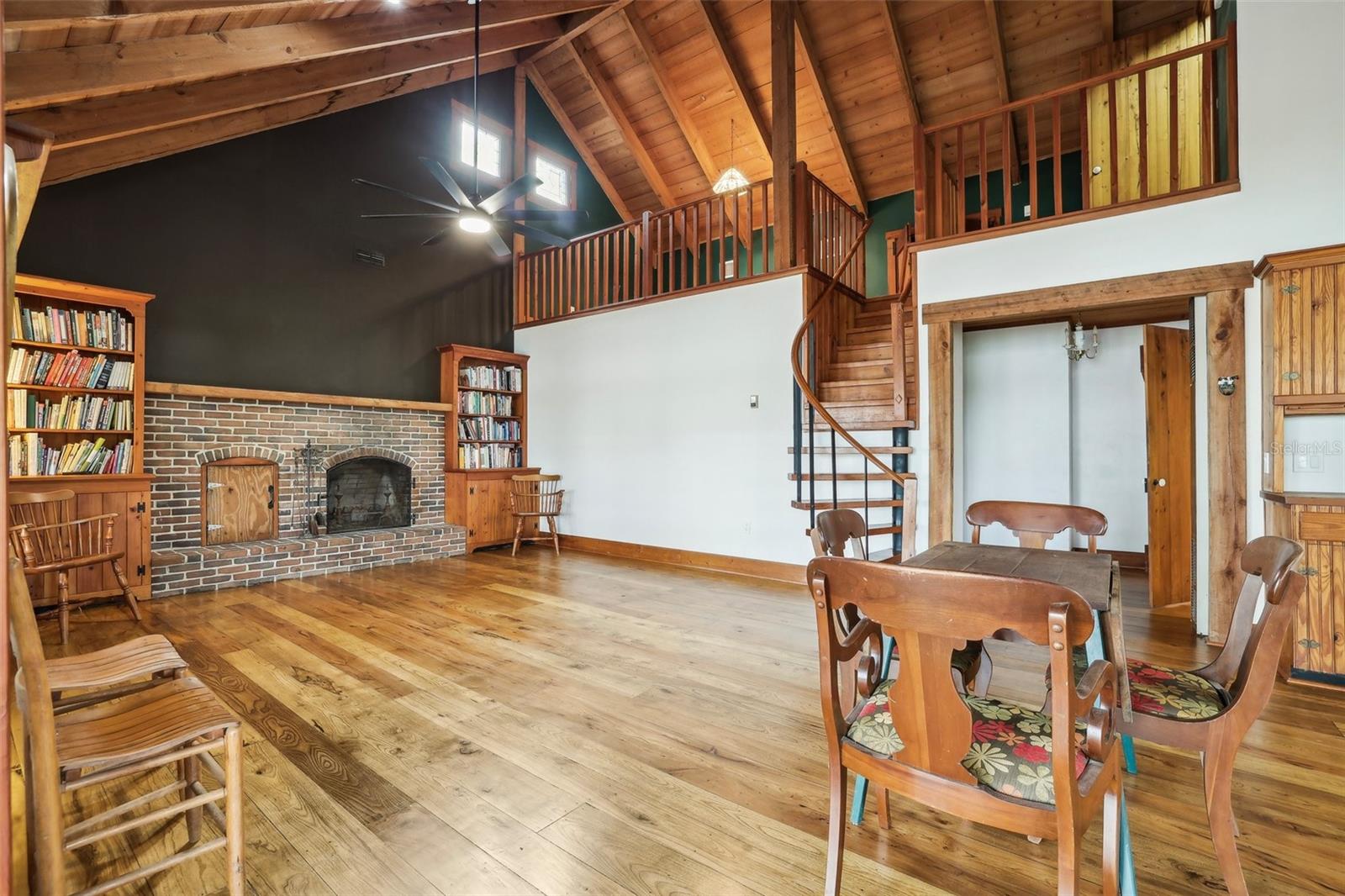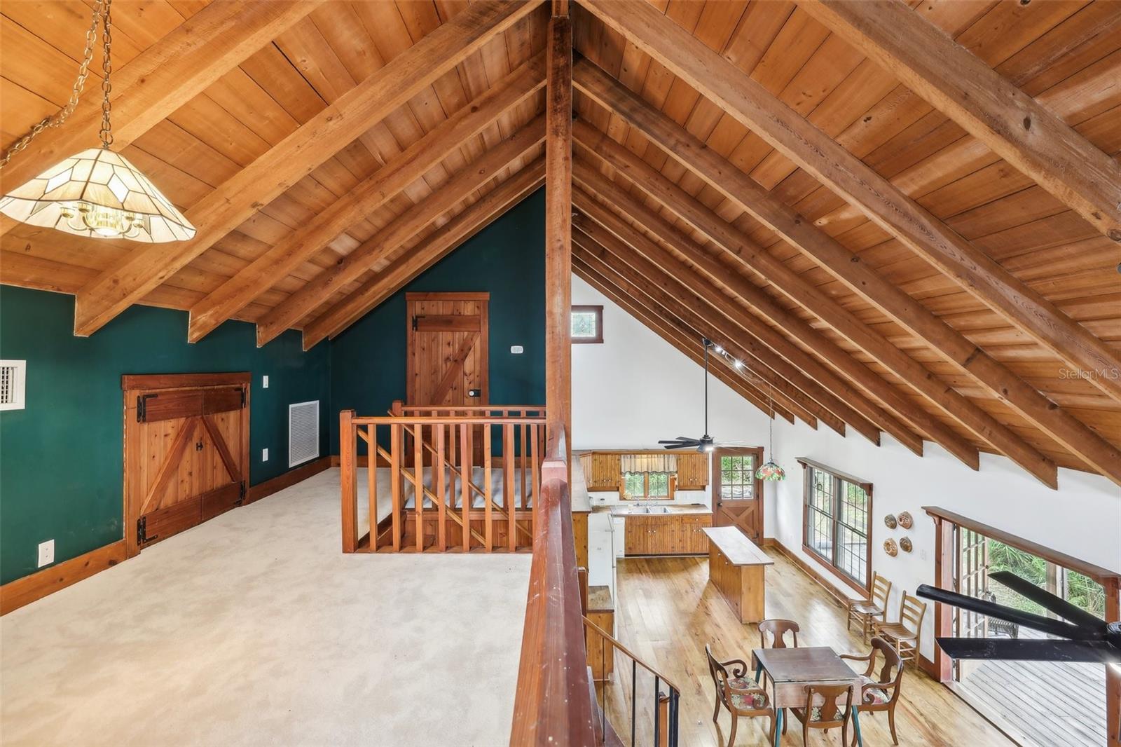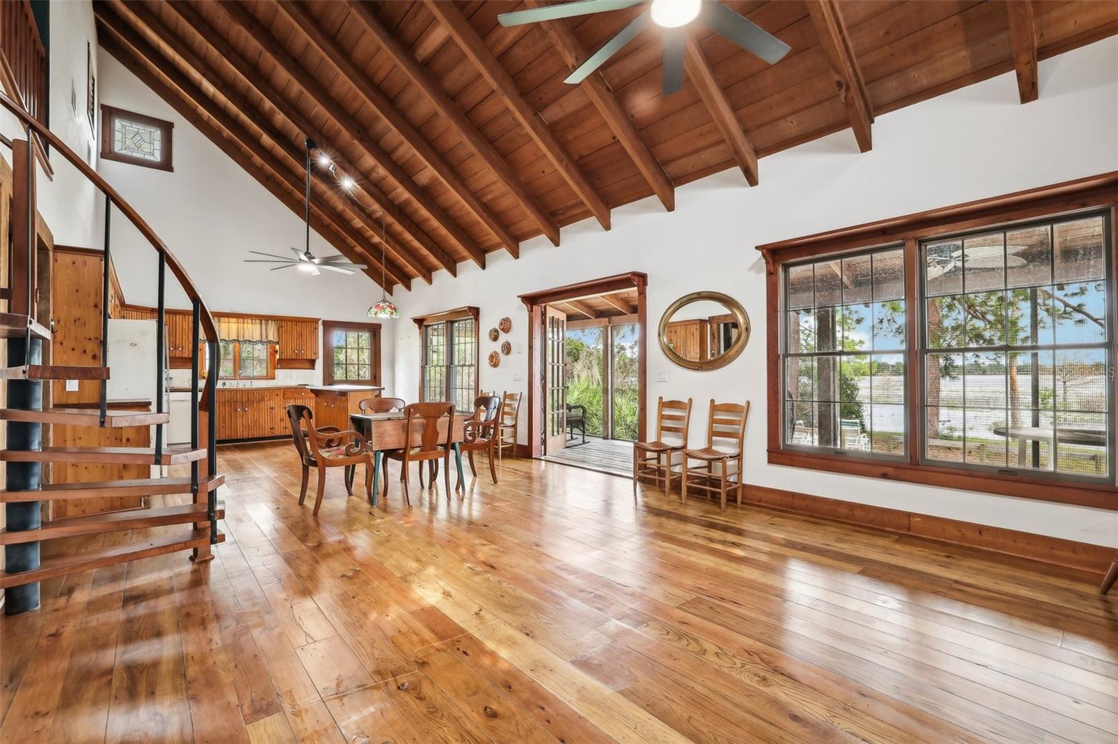Exceptional Custom Lakefront Home on 10 ACRES. Nestled on pristine land, this custom-built home offers unparalleled craftsmanship and breathtaking views of the lake. Step inside and be greeted by beautiful White Ash and Florida Hickory hardwood floors that flow seamlessly throughout the expansive living spaces. Bedrooms and laundry room have natural Pine flooring. The unique flooring adds warmth and elegance to every room. The home’s stained-glass windows are a true masterpiece, filling the interior with colorful light while offering stunning views of the surrounding nature. Handmade doors add a unique, personal touch to the home, reflecting the care and craftsmanship found throughout. Complementing this, custom Cypress siding enhances the exterior with its warm tones and natural texture—creating a cohesive, inviting aesthetic. From the moment you arrive, the attention to detail is unmistakable, blending artisanal design with timeless quality. Outside, enjoy your own slice of paradise with lakefront access and plenty of room to explore. Whether you’re kayaking on the lake, birdwatching, or simply relaxing on the porch, this home provides the perfect blend of tranquility and luxury. This lakefront property offers stunning water views and is set on 10 acres of pristine, private land. The land is rich in wildlife, including wild turkeys and sandhill cranes, creating a peaceful and serene setting that is perfect for relaxation and outdoor activities. This rare find offers the perfect balance of natural beauty, custom design, and modern comfort creating a perfect Artist or Author’s retreat. Schedule your tour today and experience the magic of this home and property!