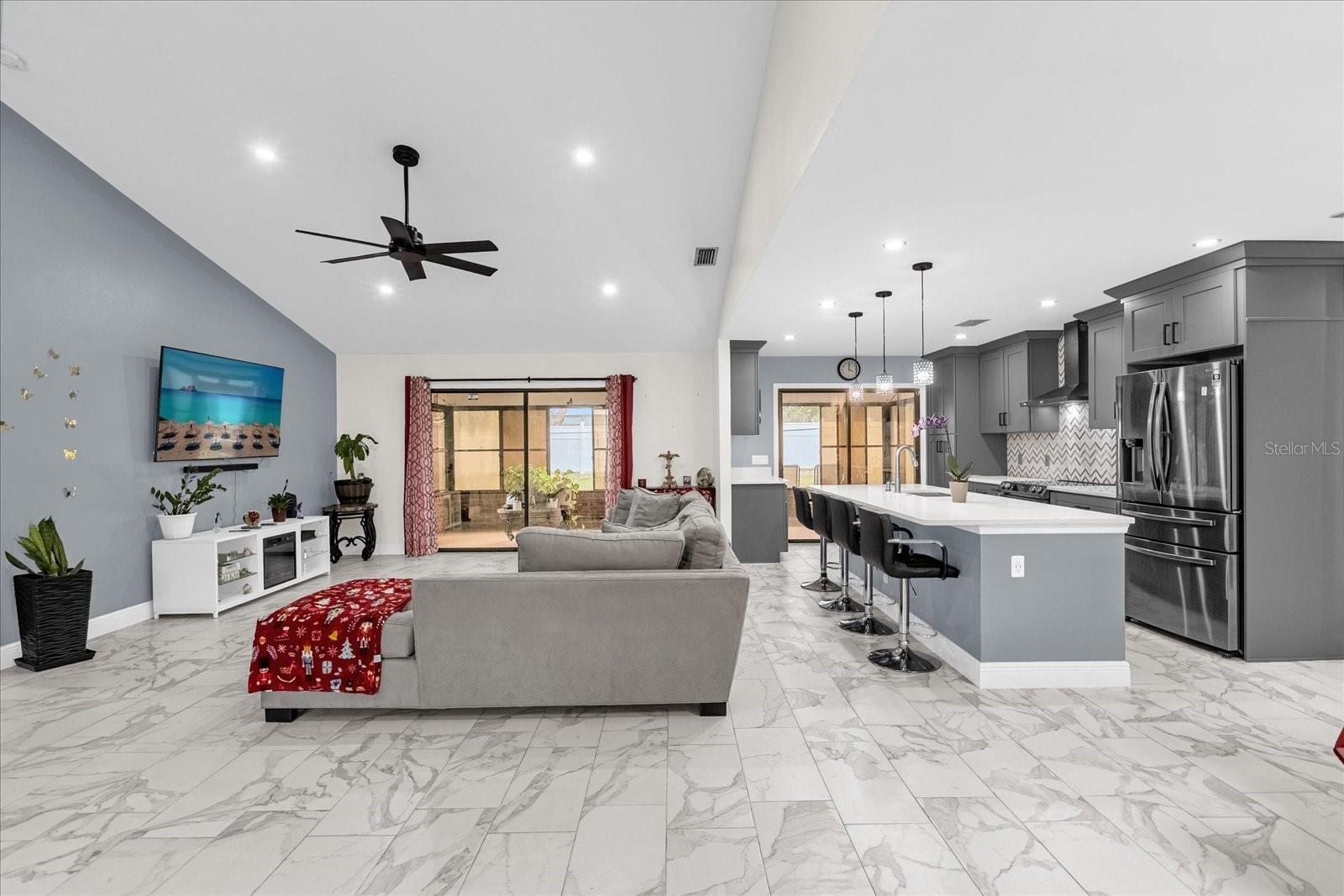 Gorgeous single family home recently renovated! This spectacular 3 bedroom 2 bathroom beauty in a fantastic commuter-friendly location you will love! This property is located in the best area of Deltona, near great schools, parks, golfing, shopping, and Amazon. New Kitchen, new floors and pool included! AC from 2023 and Roof replaced on 2021, renovated septic system. You will love this place with a spacious porch perfect for entertaining and overlooks a large partially fenced yard that's a perfect place for making memories! Laundry room has new washer and dryer included, spacious garage with room for 2 cars. Don't miss out this property and schedule your showing today!