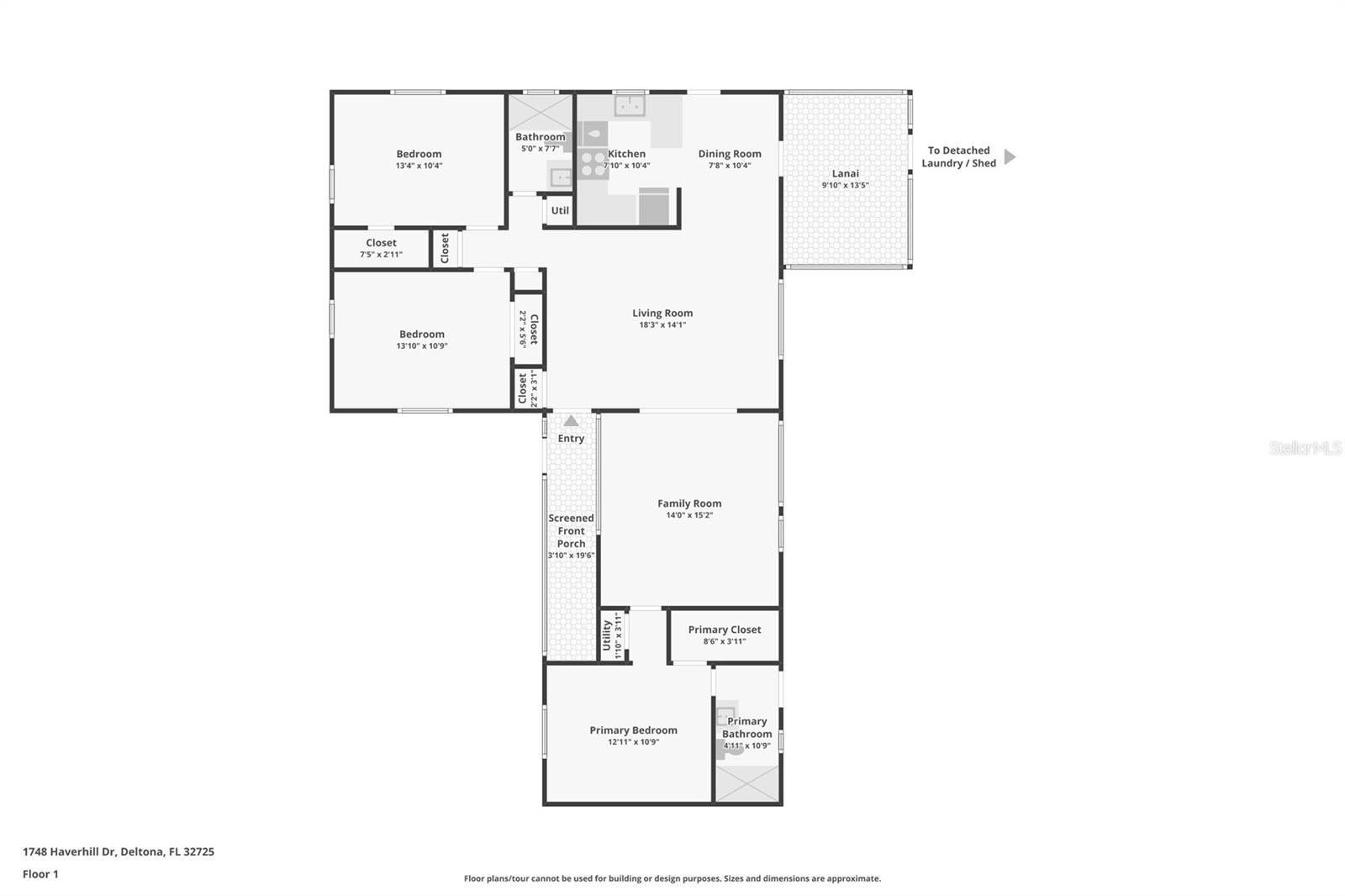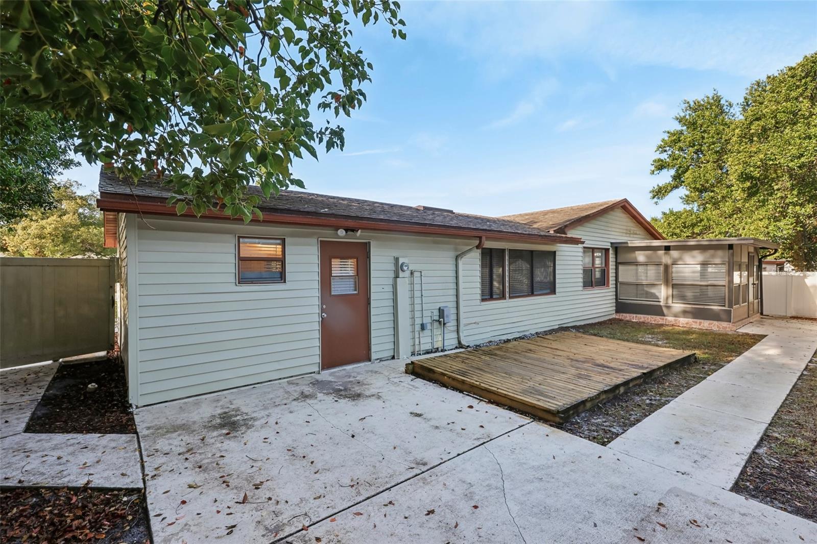 3-bedroom, 2-bathroom home located in the heart of Deltona. Offering 1,161 sq ft of heated living space on a 7,500 sq ft lot, this home features a split-bedroom layout with both a spacious living room and a separate family room for added flexibility. The kitchen is outfitted with stainless steel appliances, solid wood cabinetry, and a tiled backsplash, making meal preparation a breeze. Both bathrooms have been thoughtfully updated with modern fixtures and stylish tilework. Step outside to enjoy the enclosed screened porch and additional backyard deck, perfect for entertaining or quiet relaxation. The property includes a detached laundry room and a storage shed for added convenience. Nestled in Deltona Lakes Unit 72, this home is just minutes from schools, parks, shopping, and dining, with easy access to Providence Blvd and other major routes. Don't miss your chance to make this well-maintained property your next home. <iframe src="https://www.zillow.com/view-imx/44f0b10b-1b09-48df-be74-eb6396159381?wl=true&setAttribution=mls&initialViewType=pano" width="640" height="360" style="border: 0;" allow="fullscreen"></iframe>