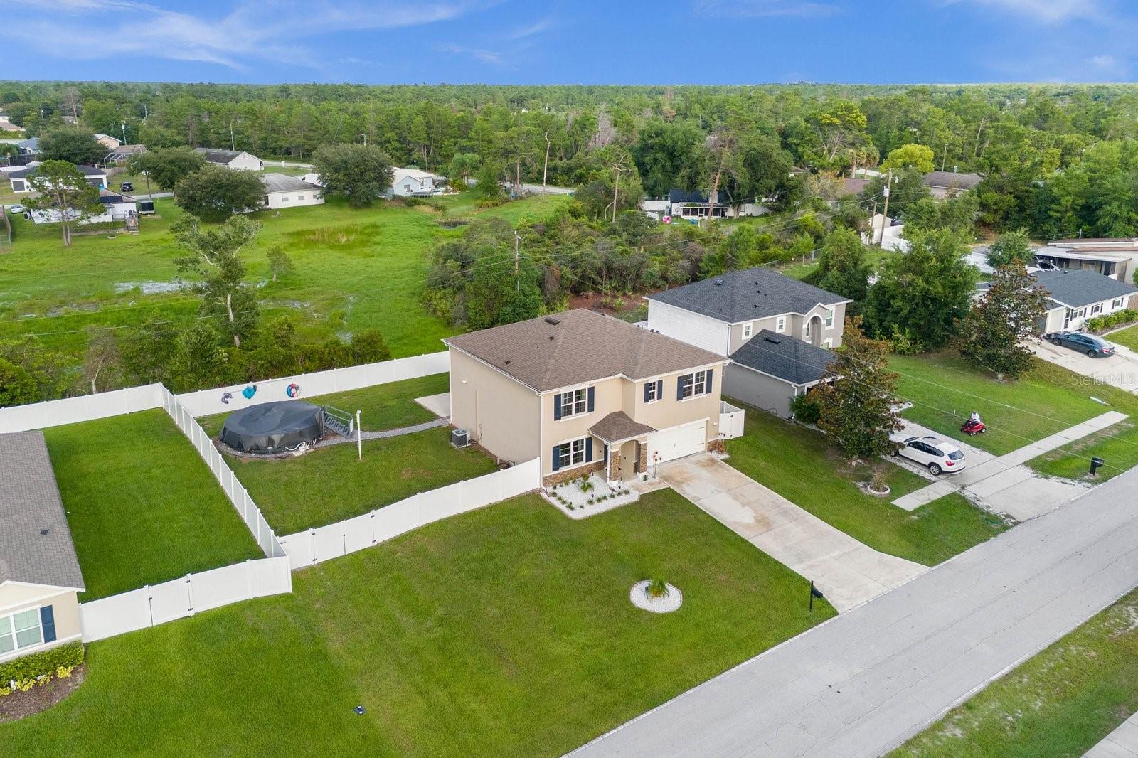 This meticulously maintained home boasts a freshly manicured lawn, showcasing its curb appeal from the moment you arrive. Offering over 2600 square feet of luxurious living space with NO HOA! This home features 5 bedrooms, 3 full bathrooms, and a loft, providing ample space for all your needs. Step inside and be greeted by an open concept floor plan that maximizes both space and natural light. The kitchen is a chef's delight, featuring an island with bar seating, stainless steel appliances, and plenty of cabinet and counter space. The kitchen seamlessly flows into the dining and great room, creating the perfect space for entertaining. The first floor also includes a flex room that can be used as a home office or playroom , as well as a bedroom, and a full bathroom. As you make your way to the second floor, you'll find a spacious master suite with an ensuite bathroom, as well as three additional bedrooms and another full bathroom. The second floor offers a second living area and a laundry area for added convenience. Situated on an oversized, you'll have plenty of space to enjoy outdoor activities, including playtime or relaxation in the above-ground pool. The yard is fenced in, allowing enough room for the RV, boat or lawn equipment. Generator electrical connection already installed on the back side of the home. Best of all, there is no HOA, giving you the freedom to customize and make this home truly your own. Located in Deltona, you'll enjoy the best of both worlds. Just minutes from I-4, you'll have easy access to both Orlando and Daytona Beach, two world-renowned tourist destinations. Deltona itself offers a charming small-town atmosphere with all the conveniences of Central Florida. Explore the nearby Blue Spring State Park, enjoy a round of golf at Daytona Country Club, or take advantage of the city's parks and walking trails. Call and schedule a showing appointment today!!!