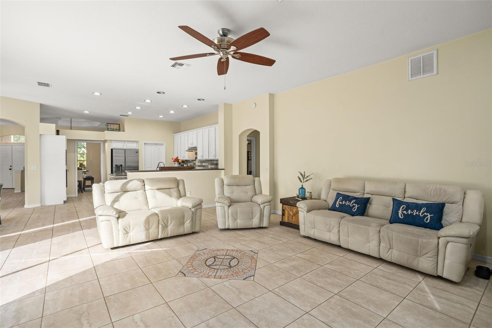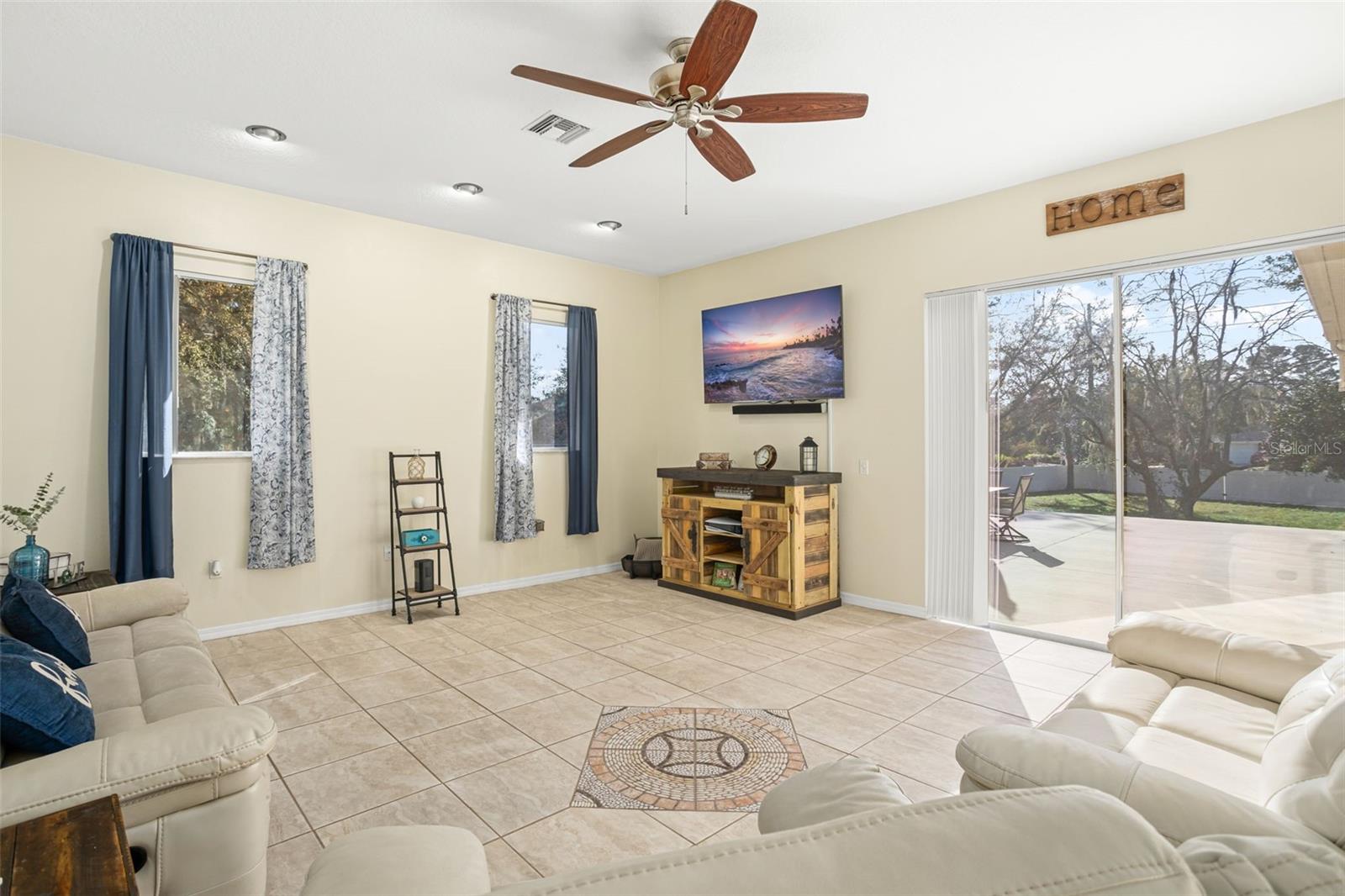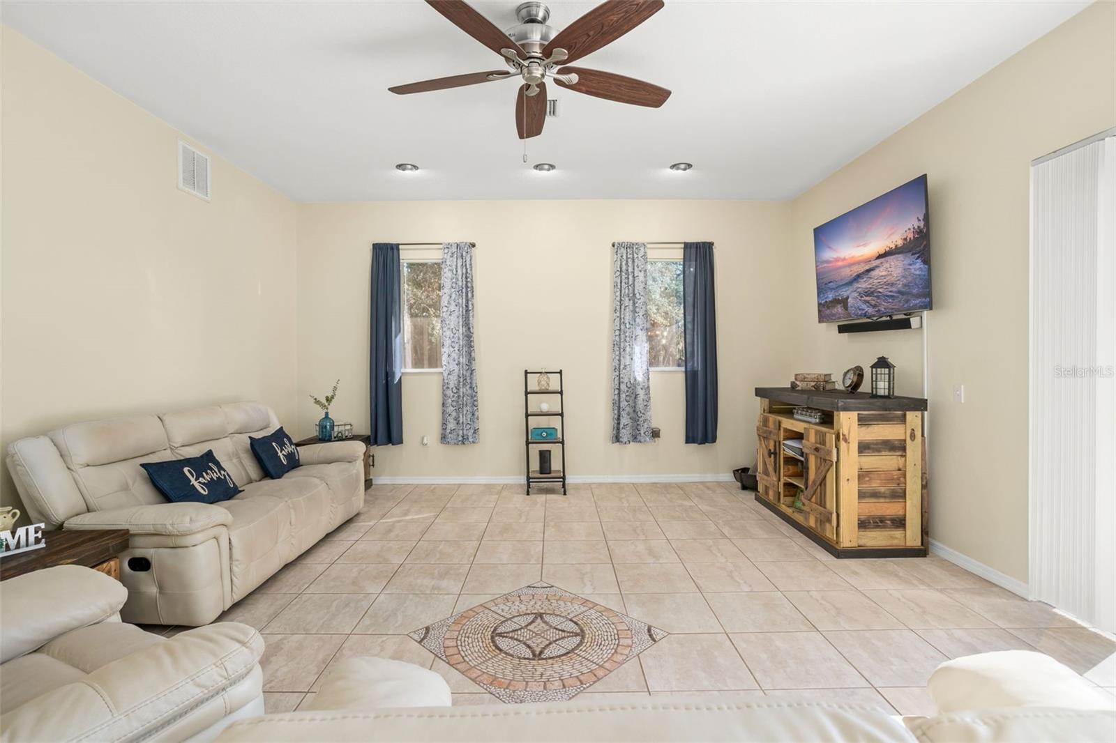 **This property qualifies for a closing cost credit up to $3,500 through the Seller’s preferred lender.**Look no further than this amazing 3-bedroom, 3-bathroom home with a bonus room in the Deltona Lakes community. Sitting on an expansive corner lot this home draws you in with the charming white picket fence up front with mature trees surrounding the lot. Make your way through the double door entry for a grand entrance into the open concept formal living room and dining room. This space features tray ceilings and sliding glass doors with an intricate tile flooring at the center of the room. Off the front door you’ll find an amazing bonus room that would be perfect for a work from home space or nursery since it is attached to the primary ensuite. The primary suite is a spacious room with a door leading out back and large ensuite featuring separate vanities, soaking tub, and stand-up shower with walk-in closets. At the heart of the home, you’ll find the kitchen providing a large middle prep island and cabinetry throughout for plenty of storage. This space flows seamlessly into the dinette and family room with sliding glass doors leading out back. This split floor plan offers the remaining 2 bedrooms and bathroom off the family room. Make your way out back to the screened porch with tile flooring for convenience overlooking the large backyard. The exterior patio provides a path around the home with steps down to access the green space surrounding! Endless opportunities are available with this great space that includes housing your boat, RV, or trailer on property with NO HOA! Schedule your private showing today!