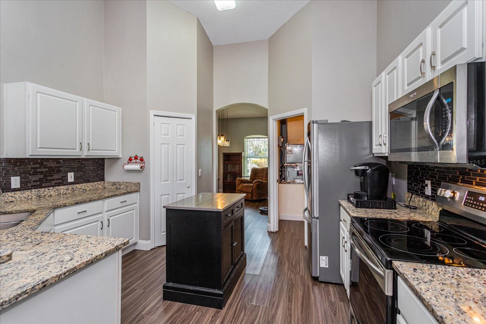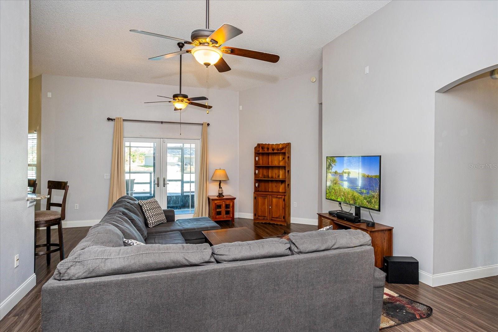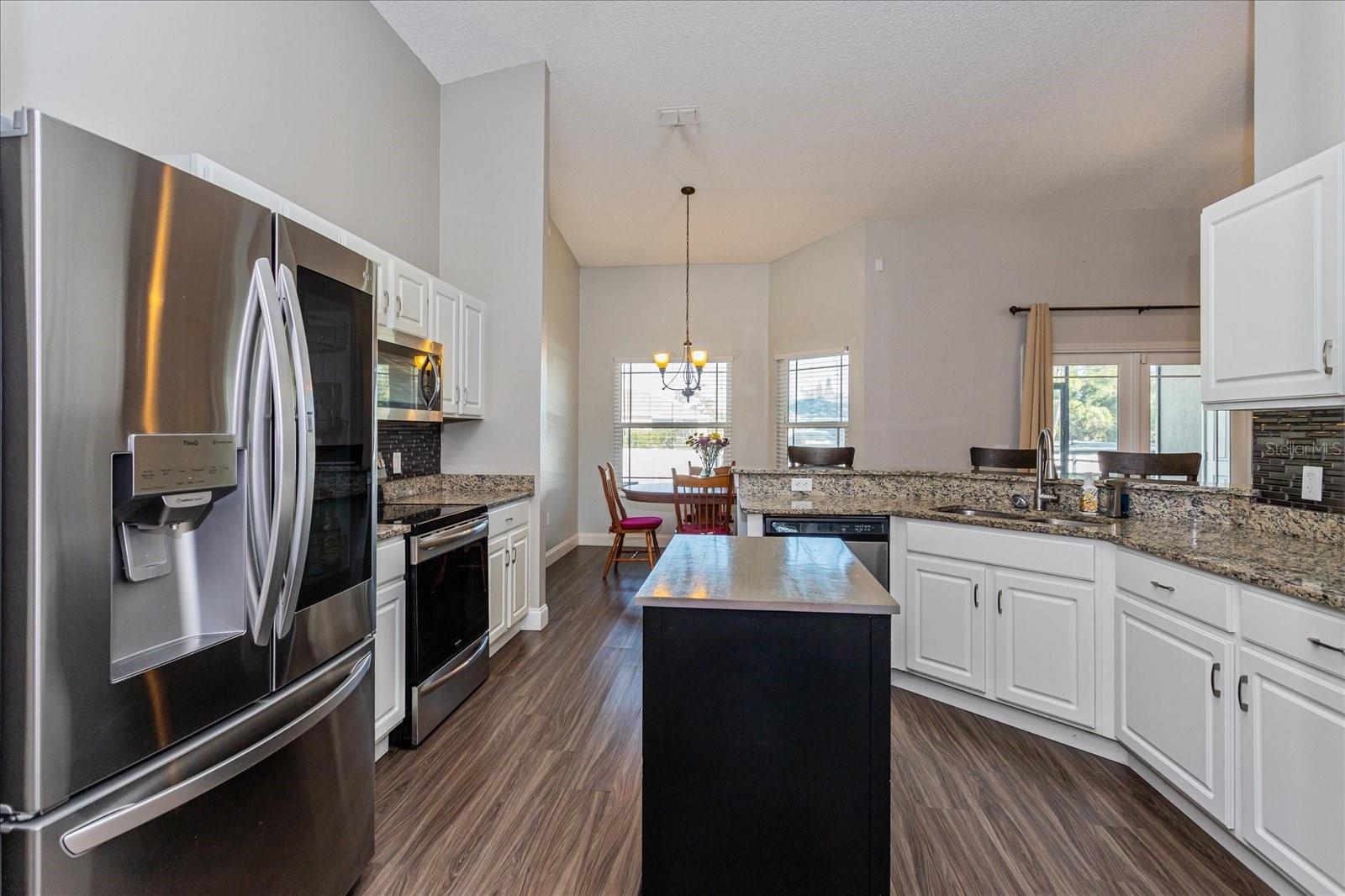 This beautiful home in Deltona Lakes is where comfort and modern design meet peaceful water views. The open layout seamlessly connects the living, dining, and kitchen areas, creating a perfect flow for both everyday living and entertaining. With a thoughtful split floor plan, this spacious home offers four ample sized bedrooms and three full bathrooms. Luxury vinyl plank floors run throughout the home, offering both style and durability while keeping the space bright and easy to maintain. The kitchen is equipped with modern finishes including a brand new oven with an air fryer feature, stainless steel refrigerator, and granite countertops with plenty of counter space, ideal for meal preparation and gatherings. There is also a dedicated office off the front foyer, across the hall from the dining room. Step outside to your private oasis—enjoy breathtaking water views from the screened-in back porch, the back deck, or take a dip in the above-ground pool, perfect for relaxation or entertaining. Whether you're lounging inside or outside, this home offers the best of both worlds. Located in a peaceful Deltona neighborhood, this property is a true gem, combining functional living spaces with a tranquil outdoor setting. Don't miss the opportunity to make this house your home! Roof was replaced in 2019, luxury vinyl plank installed in 2021, Energy Star windows and french doors were also installed in 2021.