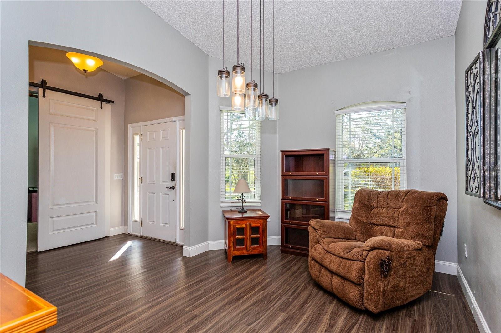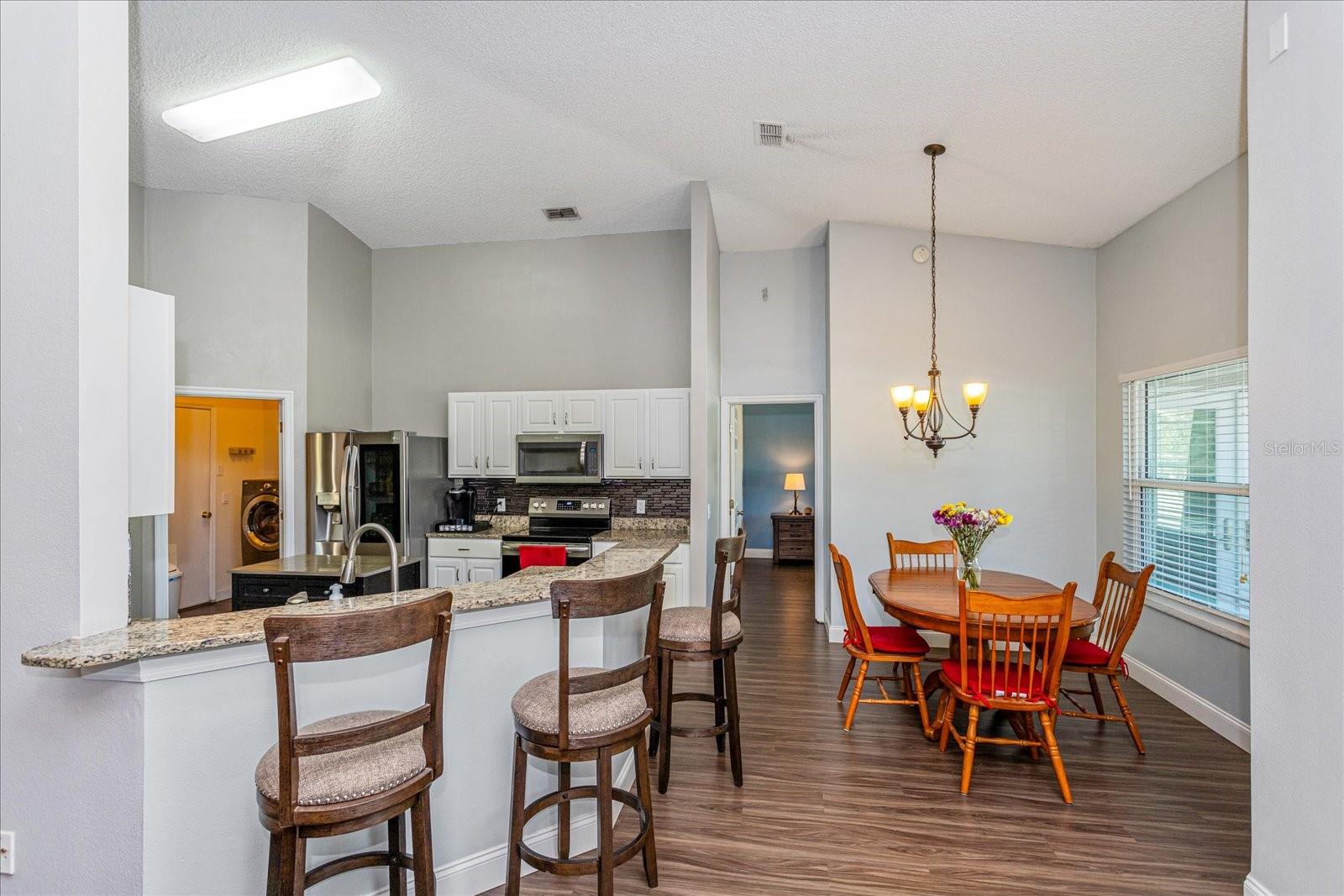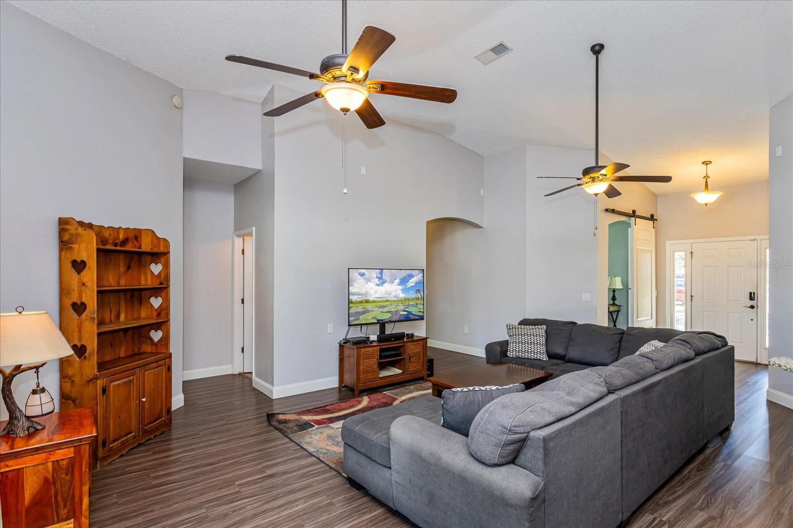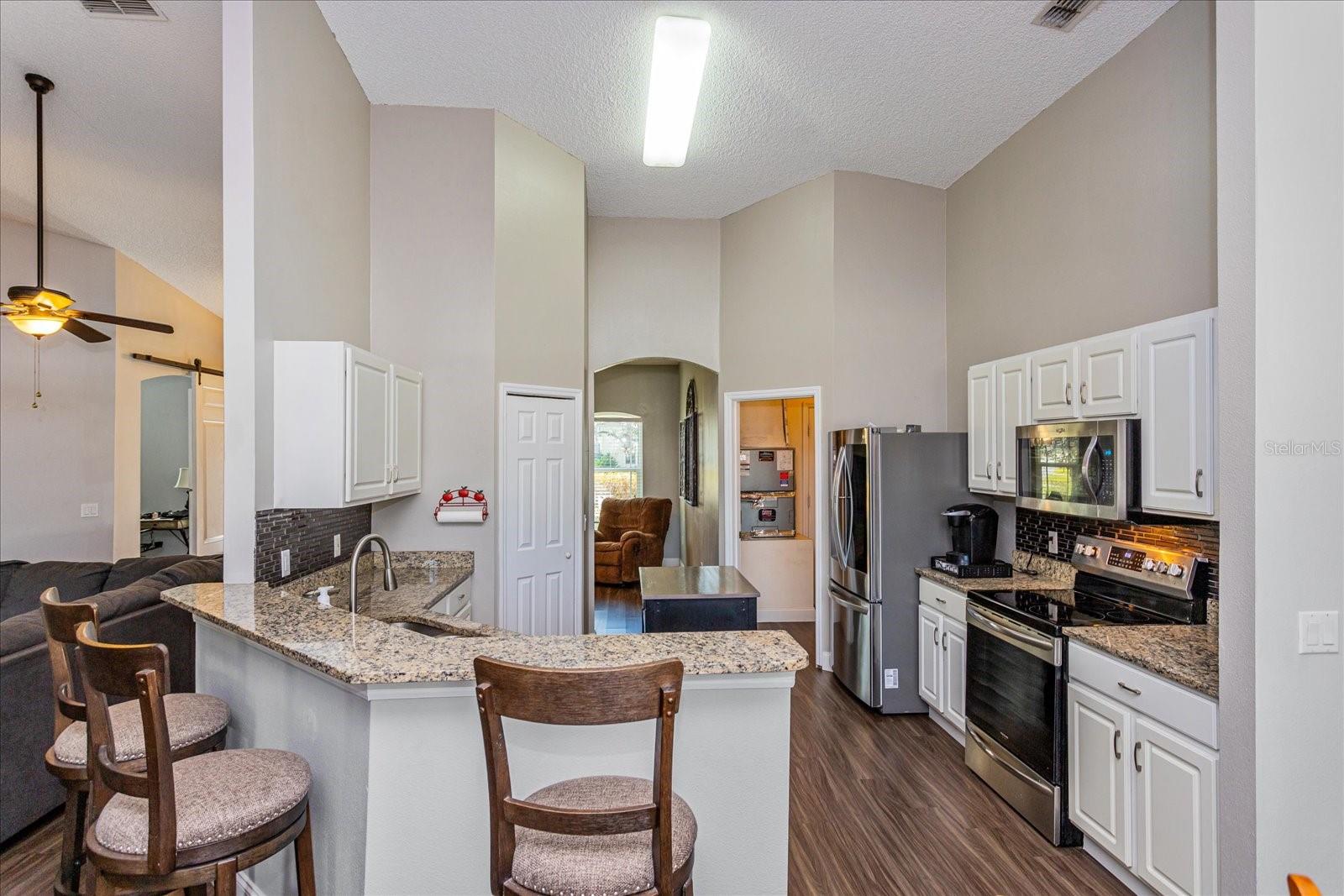 This beautiful home in Deltona Lakes is where comfort and modern design meet peaceful water views. The open layout seamlessly connects the living, dining, and kitchen areas, creating a perfect flow for both everyday living and entertaining. With a thoughtful split floor plan, this spacious home offers four ample sized bedrooms and three full bathrooms. Luxury vinyl plank floors run throughout the home, offering both style and durability while keeping the space bright and easy to maintain. The kitchen is equipped with modern finishes including a brand new oven with an air fryer feature, stainless steel refrigerator, and granite countertops with plenty of counter space, ideal for meal preparation and gatherings. There is also a dedicated office off the front foyer, across the hall from the dining room. Step outside to your private oasis—enjoy breathtaking water views from the screened-in back porch, the back deck, or take a dip in the above-ground pool, perfect for relaxation or entertaining. Whether you're lounging inside or outside, this home offers the best of both worlds. Located in a peaceful Deltona neighborhood, this property is a true gem, combining functional living spaces with a tranquil outdoor setting. Don't miss the opportunity to make this house your home! Roof was replaced in 2019, luxury vinyl plank installed in 2021, Energy Star windows and french doors were also installed in 2021.