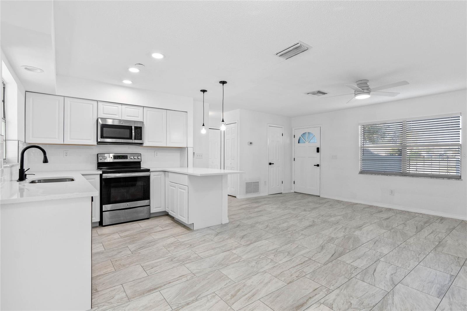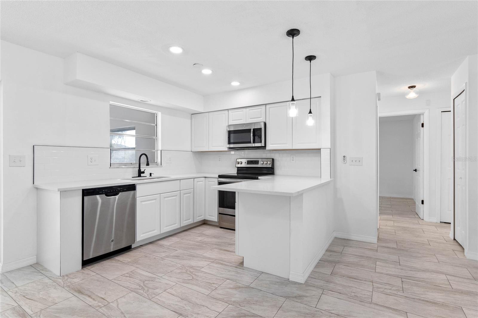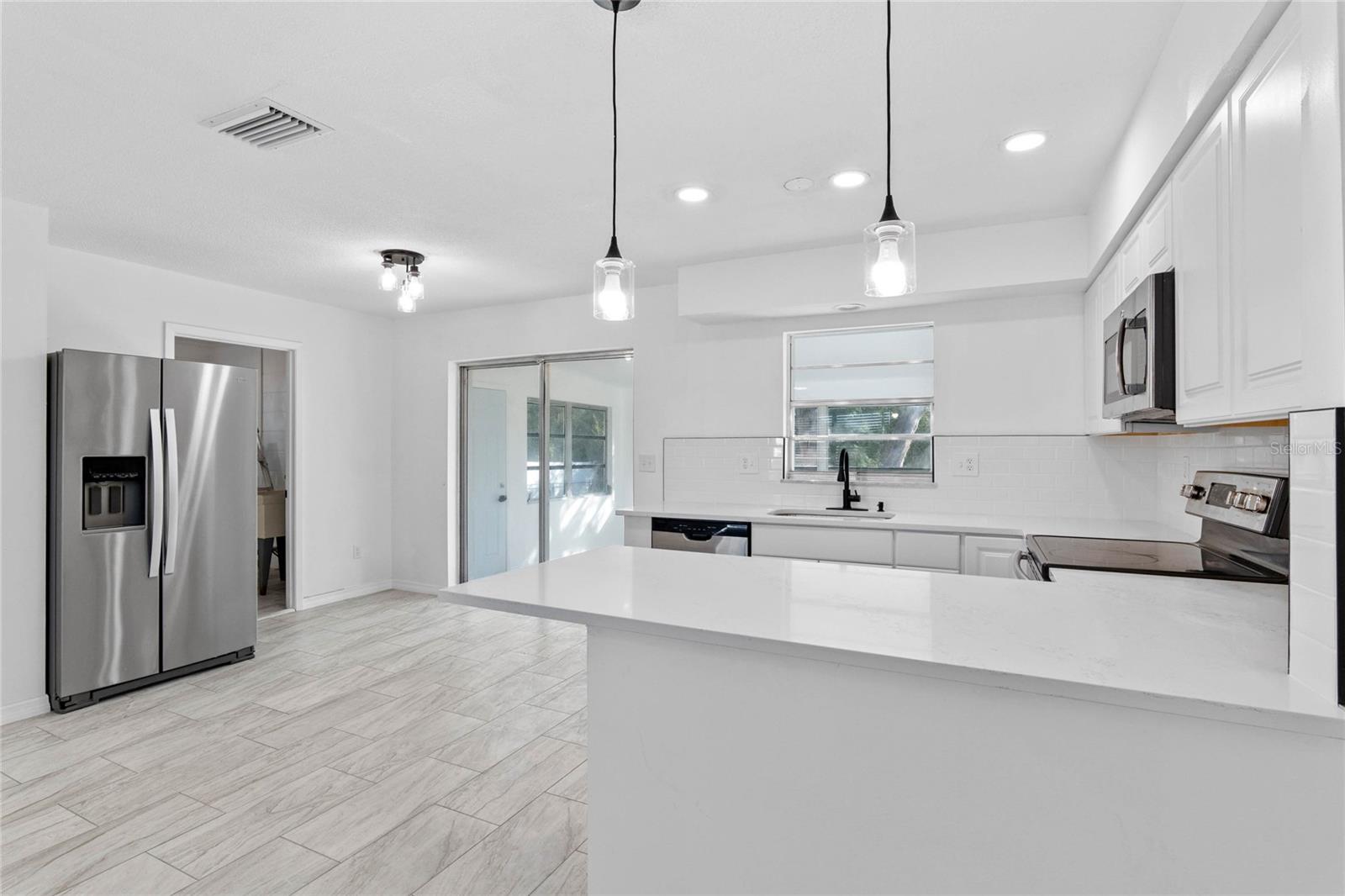 Welcome to your dream home at 1113 Leeward Dr.! This beautifully remodeled two-bedroom, two-bathroom residence is nestled on an expansive lot, nearly a quarter of an acre, providing ample outdoor space for relaxation and recreation. Step inside to discover a modern open floor plan that seamlessly connects the living spaces. The brand-new kitchen boasts stunning countertops and cabinets, stainless stell appliances perfect for culinary enthusiasts. Both bathrooms have been tastefully updated, and you'll appreciate the all-new flooring that flows throughout the home. The convenience of an indoor laundry room, includes washer, dryer and sink, adds to the functionality of this lovely dwelling. Enjoy the serene outdoor ambiance from the screened-in patio, featuring elegant tile flooring. Every detail has been considered with new light fixtures and ceiling fans enhancing the home's inviting atmosphere. Additionally, this home is equipped with a brand-new water heater, and both the plumbing and electrical systems have been updated for peace of mind. A new roof was installed in October 2023, ensuring durability for years to come. Don't miss the opportunity to make this stunning home yours! Schedule a showing today!
