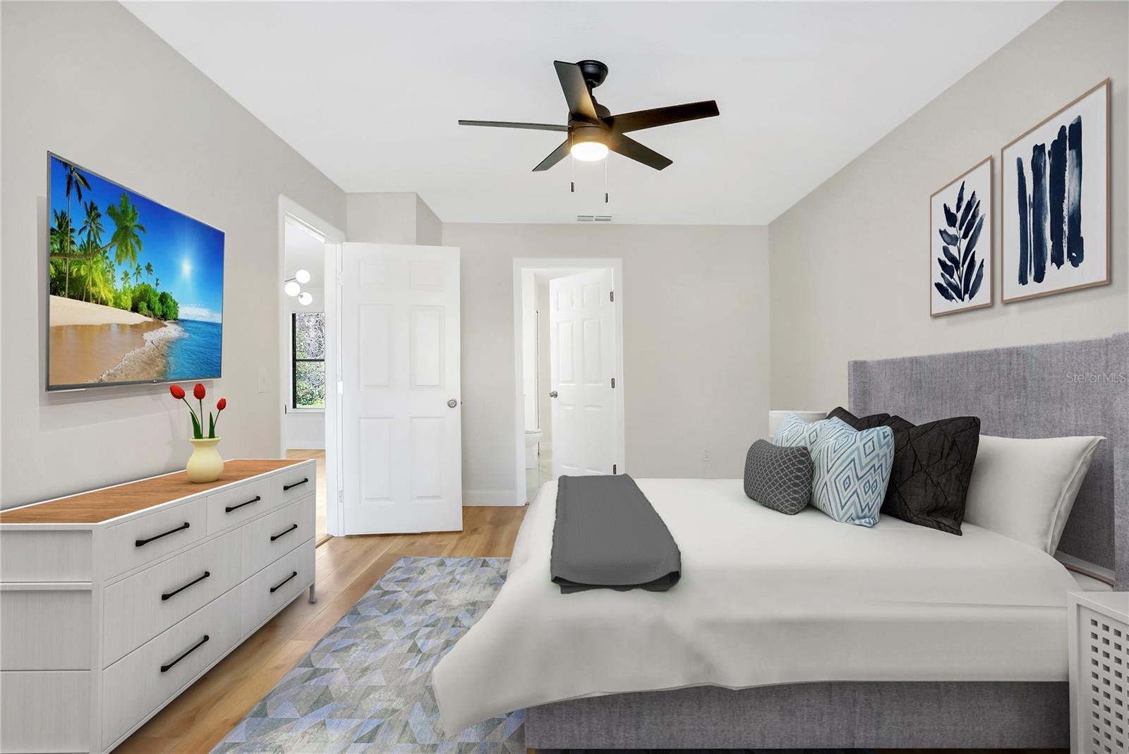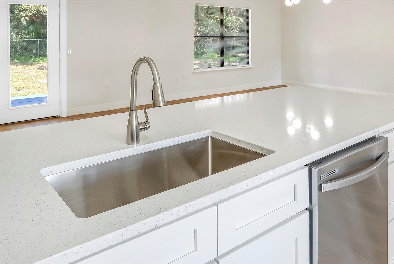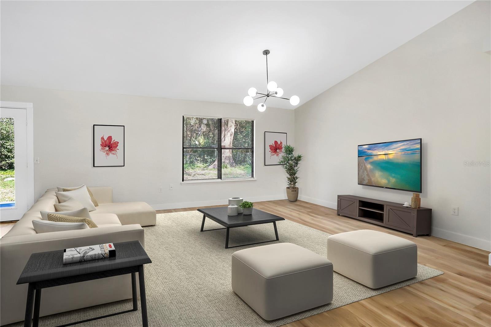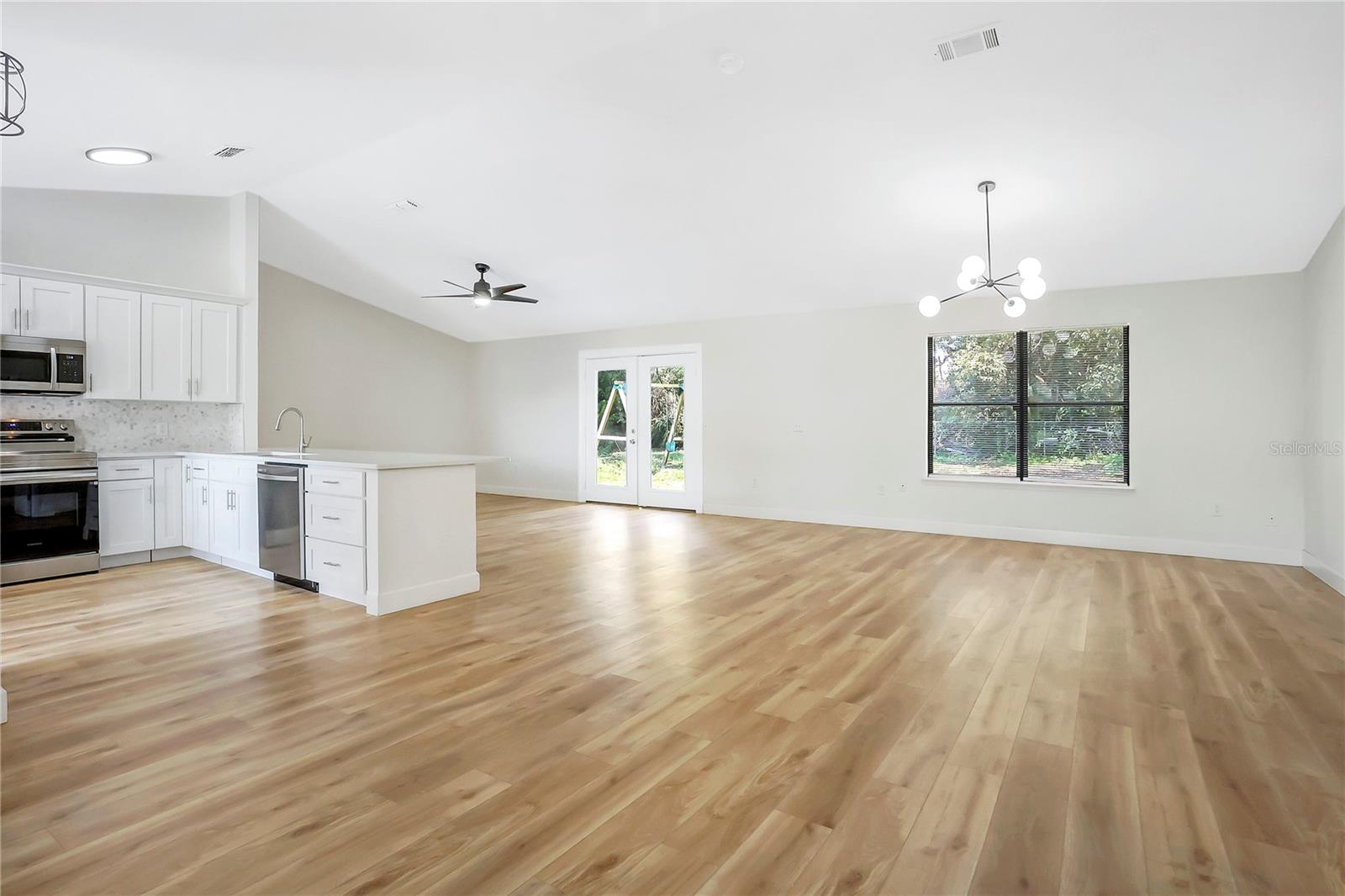 PRICE IMPROVEMENT! This fully renovated Deltona home is a perfect blend of modern elegance and comfort. The open floor plan is enhanced by luxury vinyl flooring throughout, creating a seamless and designer look. A custom-designed kitchen features sleek shaker cabinets, quartz countertops, and brand-new stainless steel appliances, large peninsula with bar seating, making it a true chef’s delight. The bathrooms have been beautifully remodeled with porcelain-tiled showers, new quartz vanities, and updated plumbing fixtures. New light fixtures add warmth and sophistication, while a brand-new December of 2024 roof provides lasting durability. The A/C system was updated in December-2024, and the windows were replaced in 2011 for added efficiency. Located near beautiful natural springs, scenic parks, and just a short drive from top Florida destinations, this home offers the best of both relaxation and adventure. New Smyrna Beach is just 30 minutes away, while Walt Disney World is only 45 minutes. Convenient access to I-4 makes commuting easy, connecting you to Daytona Beach, Orlando, and beyond. This property has NO HOA and is turn-key, ready for your family. Schedule your showing today!
