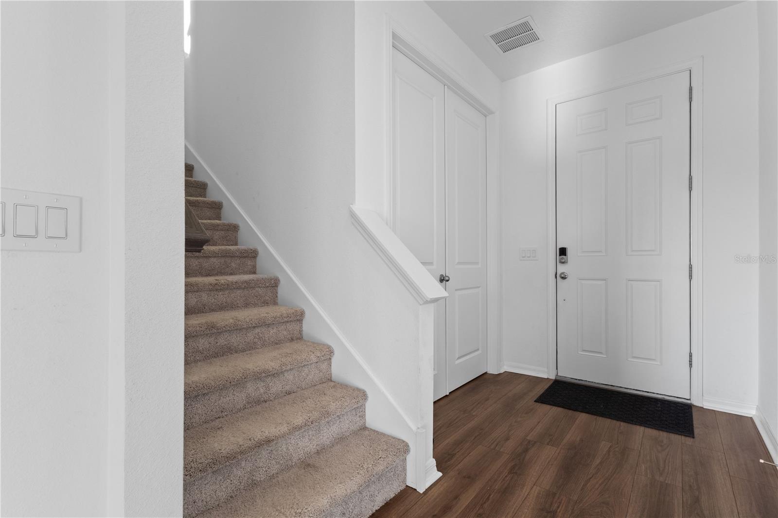 This beautifully maintained 4-bedroom, 2.5-bath home, only 2 years old, offers modern living with an open floor plan that’s perfect for families and entertaining. Located in the desirable Deltona area, it’s just a short drive north of Orlando, with easy access to the highway. The spacious layout includes a Den, ideal for a home office or playroom, and a generously sized extended back patio that leads to an oversized yard — perfect for creating your future pool or outdoor oasis. Home features Luxury Vinyl Flooring on the entire lower level for durability and style 42” Cabinets in the kitchen, paired with high-end stainless steel appliances: vented microwave, dishwasher, and stove Quartz Countertops in the kitchen and all bathrooms for a sleek and modern touch Cozy Shaw Carpeting in the bedrooms and loft area, providing added comfort Moen Chrome Plumbing Fixtures in the kitchen and bathrooms for a polished, modern finish A Semi-Frameless Shower Enclosure with a rain head shower in the luxurious master suite Blackout Blinds in both the primary bedroom and game room, ensuring privacy and comfort. This home is also equipped with a advanced Rainsoft EC-5 water softener to provide endless supply of luxurious water throughout the home and built to last a lifetime. Additionally, the home features stylish window treatments throughout and a fully fenced-in yard, providing both security and privacy. The primary suite includes an impressive large walk-in closet, adding both functionality and convenience to the space. This home is an exceptional find for anyone seeking comfort, modern amenities, and ample room for growth in a vibrant community.