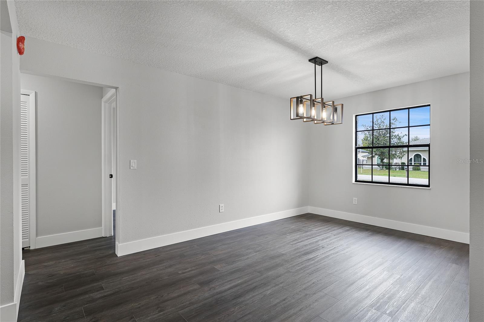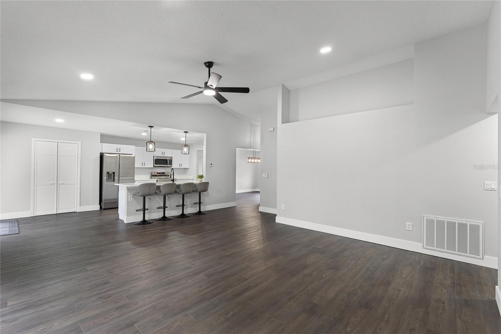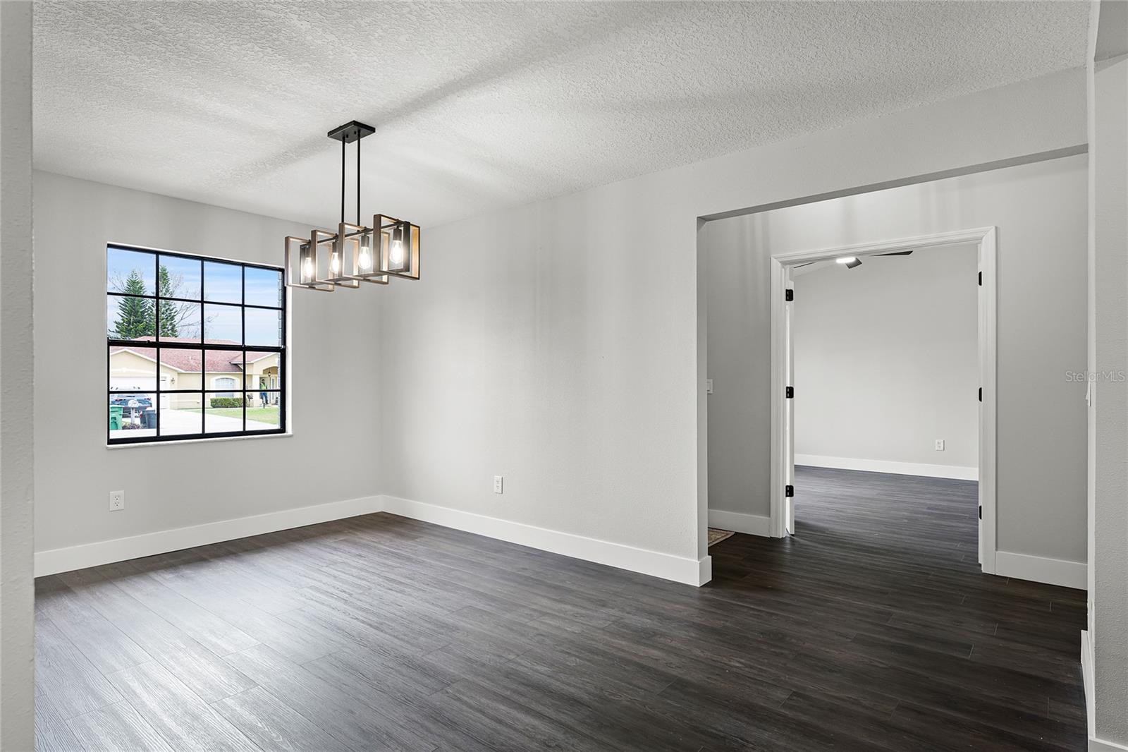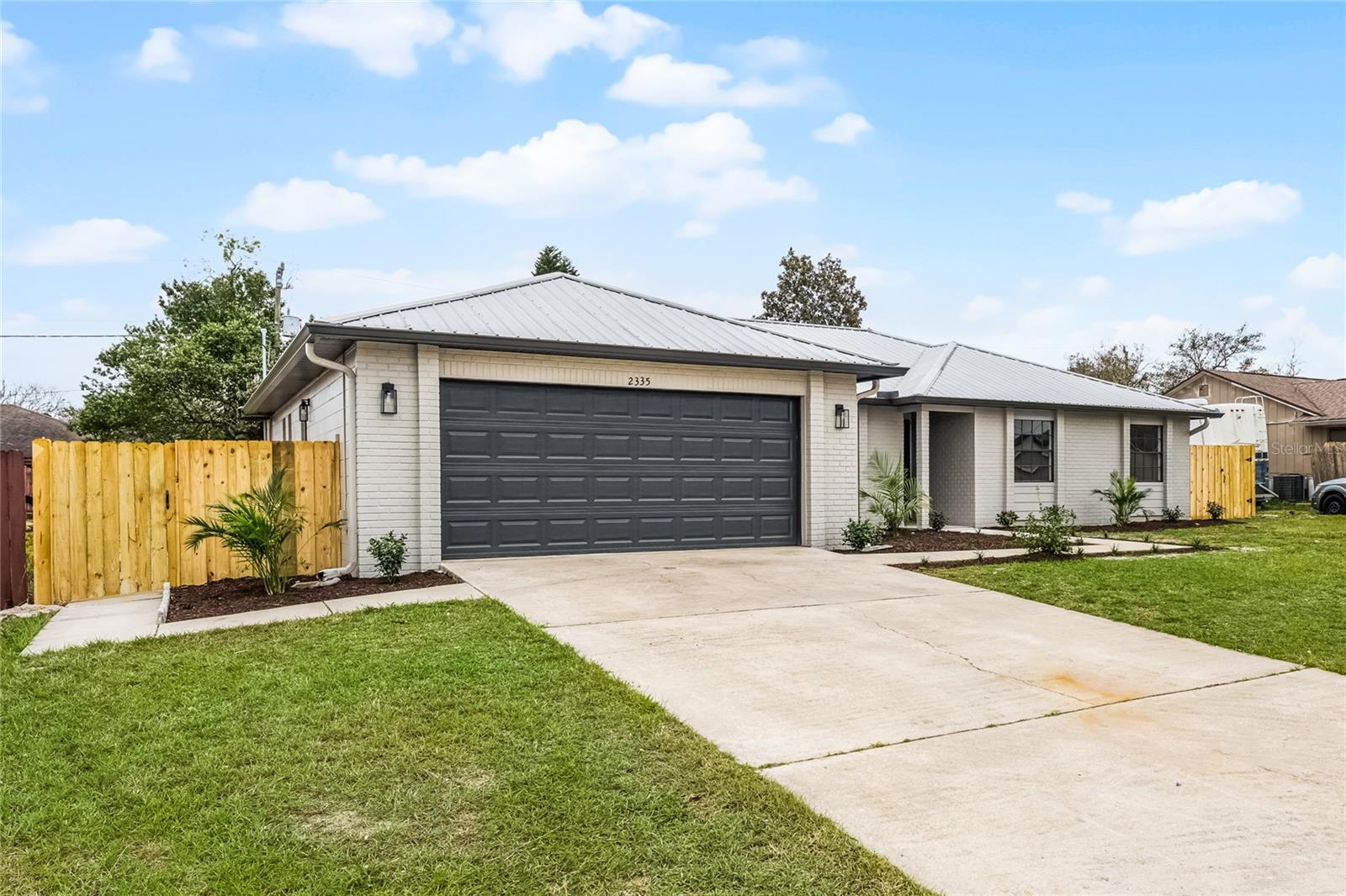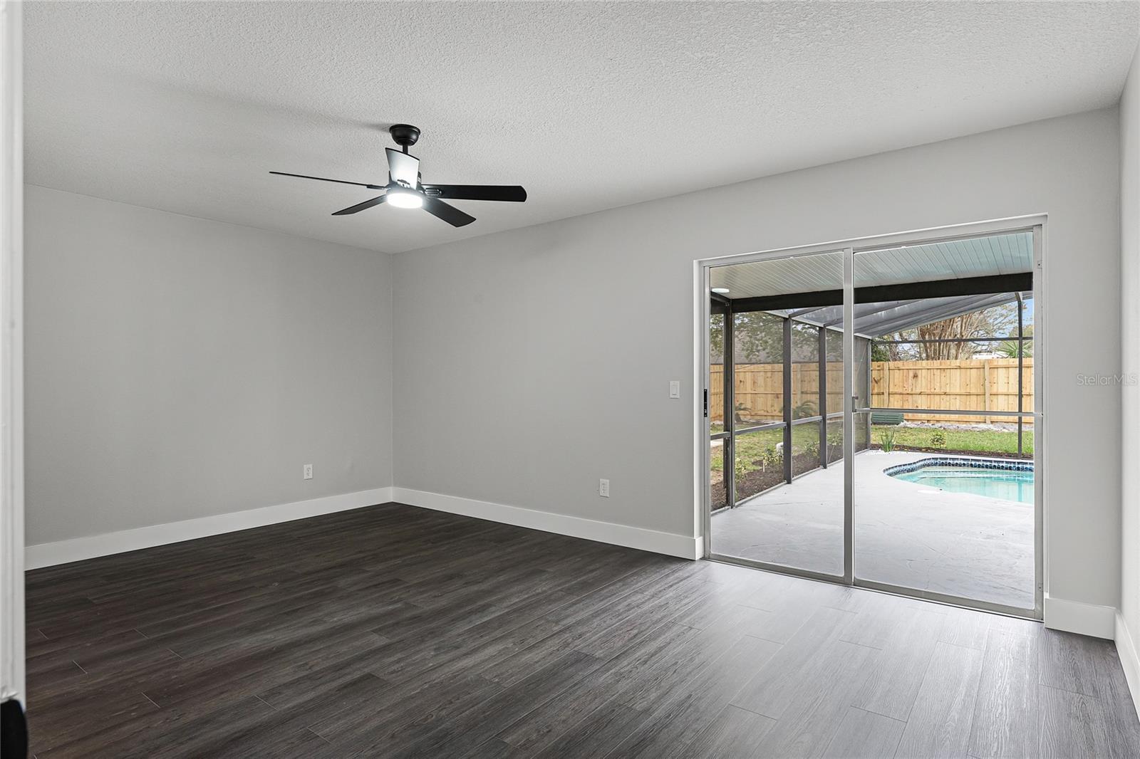 Stunningly Renovated Pool Home in Deltona Lakes! This beautifully upgraded home is designed for comfort, style, and entertaining. The spacious great room features expansive sliding patio doors that provide a breathtaking view of the sparkling pool, creating a seamless flow between indoor and outdoor living. The modern, open-concept kitchen is perfect for cooking and socializing, with easy access to the living room and direct sliding door access to the lanai and pool enclosure. Whether you’re relaxing by the pool or hosting family gatherings, this home offers the perfect space. The formal dining room provides ample space for hosting dinner parties, holidays, and celebrations. The kitchen also offers room for a cozy dinette table, while the large peninsula comfortably accommodates barstools for casual meals or chatting with guests. The serene primary bedroom is a private retreat, overlooking the pool and fenced backyard. It includes a spacious walk-in closet and a luxurious primary bathroom. The opposite side of the home, two additional bedrooms, serviced by a beautifully appointed guest bathroom. The fourth bedroom, located at the front of the home with double doors, is versatile enough to serve as a home office, den, or a guest bedroom. The expansive garage is an added bonus, complete with a washer and dryer, laundry tub, side door to the yard, and plenty of space for parking and storage. Upgrades & Renovations: This home boasts numerous upgrades, including a durable metal roof, brand new AC system with warranty, and all-new stainless steel appliances. The plumbing and electrical systems have been updated, and the entire home has been refreshed with new textures, interior and exterior paint, new 5.5 inch solid wood baseboards, and luxury waterproof vinyl plank flooring throughout. The kitchen features solid wood cabinets with quartz countertops, and the bathrooms have been updated with stylish vanities. Ceiling fans in every room, a new privacy wood fence, and fresh landscaping round out this move-in ready home. This property is a true gem and an ideal place to create lasting memories with your family. Don’t miss out—schedule a tour today!