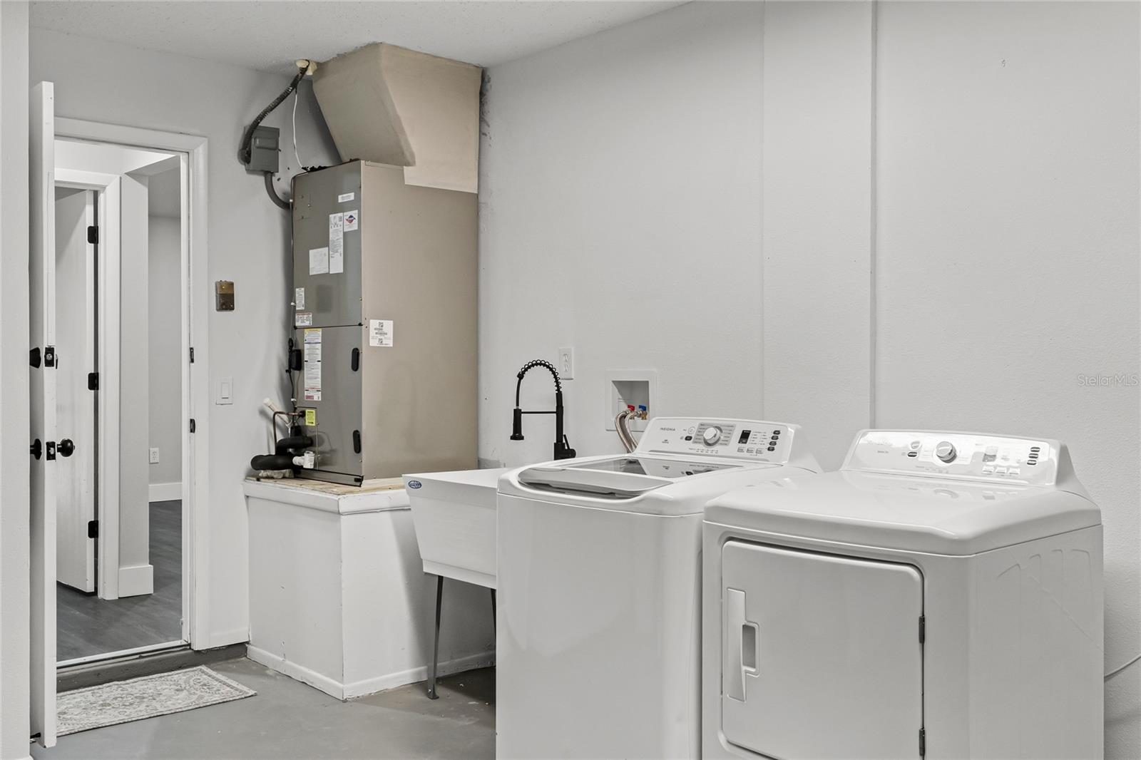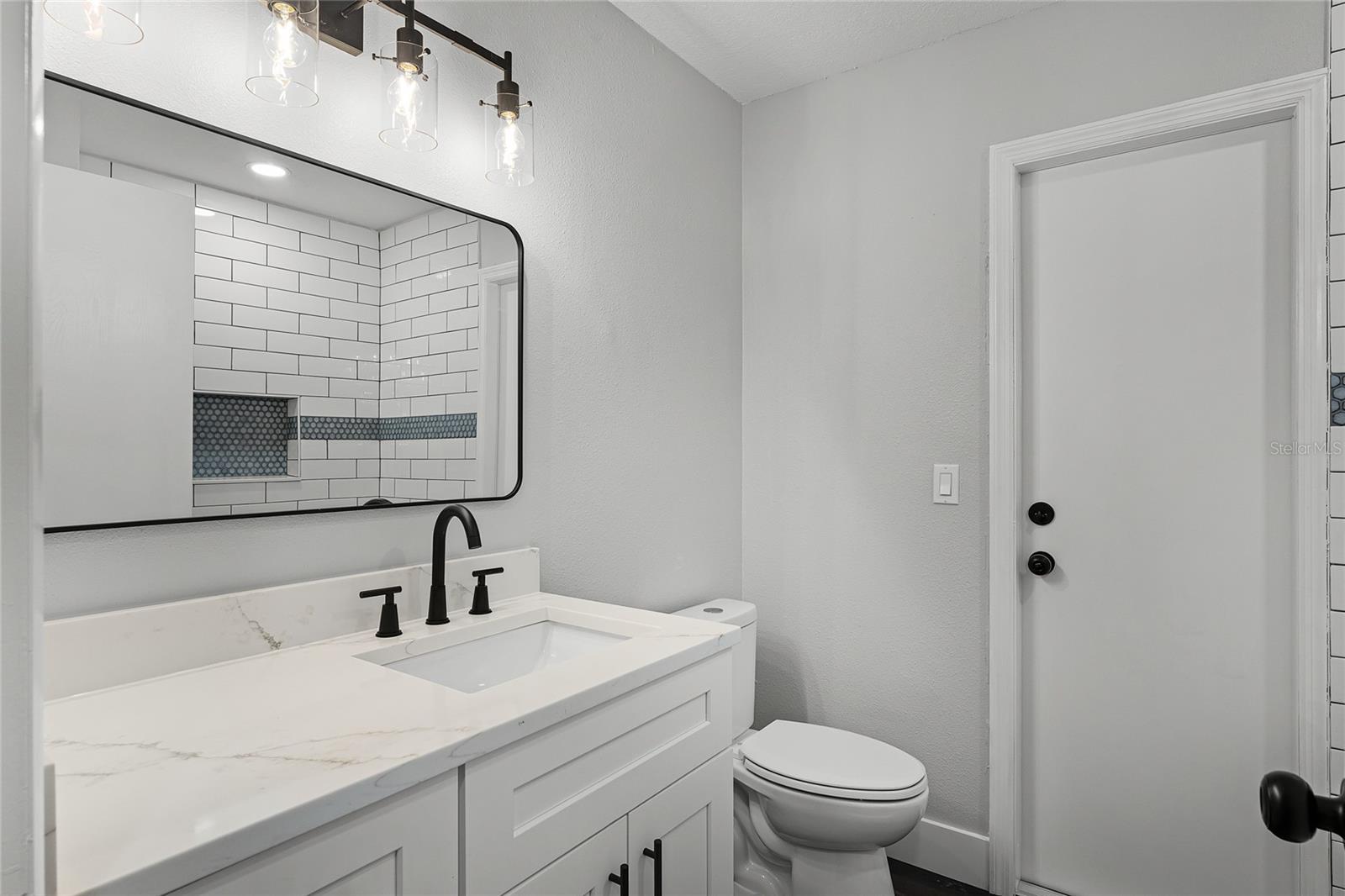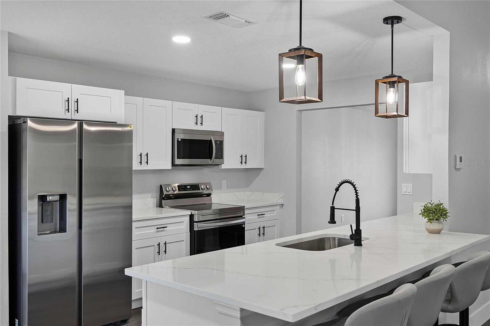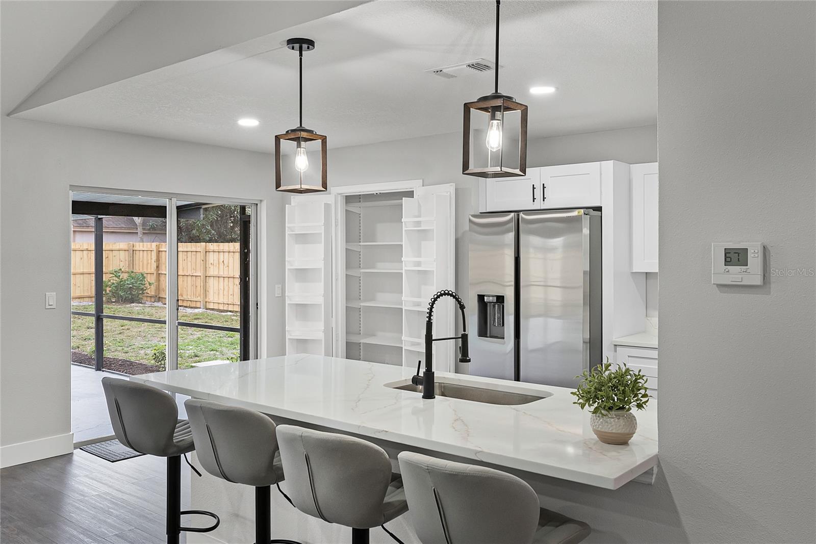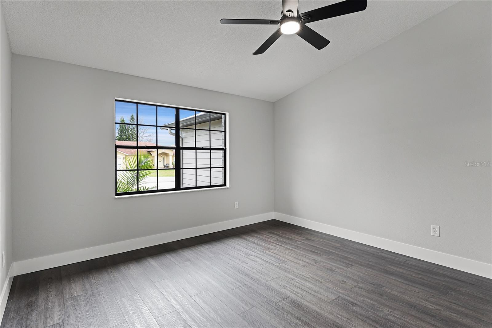Stunningly Renovated Pool Home in Deltona Lakes! This beautifully upgraded home is designed for comfort, style, and entertaining. The spacious great room features expansive sliding patio doors that provide a breathtaking view of the sparkling pool, creating a seamless flow between indoor and outdoor living. The modern, open-concept kitchen is perfect for cooking and socializing, with easy access to the living room and direct sliding door access to the lanai and pool enclosure. Whether you’re relaxing by the pool or hosting family gatherings, this home offers the perfect space. The formal dining room provides ample space for hosting dinner parties, holidays, and celebrations. The kitchen also offers room for a cozy dinette table, while the large peninsula comfortably accommodates barstools for casual meals or chatting with guests. The serene primary bedroom is a private retreat, overlooking the pool and fenced backyard. It includes a spacious walk-in closet and a luxurious primary bathroom. The opposite side of the home, two additional bedrooms, serviced by a beautifully appointed guest bathroom. The fourth bedroom, located at the front of the home with double doors, is versatile enough to serve as a home office, den, or a guest bedroom. The expansive garage is an added bonus, complete with a washer and dryer, laundry tub, side door to the yard, and plenty of space for parking and storage. Upgrades & Renovations: This home boasts numerous upgrades, including a durable metal roof, brand new AC system with warranty, and all-new stainless steel appliances. The plumbing and electrical systems have been updated, and the entire home has been refreshed with new textures, interior and exterior paint, new 5.5 inch solid wood baseboards, and luxury waterproof vinyl plank flooring throughout. The kitchen features solid wood cabinets with quartz countertops, and the bathrooms have been updated with stylish vanities. Ceiling fans in every room, a new privacy wood fence, and fresh landscaping round out this move-in ready home. This property is a true gem and an ideal place to create lasting memories with your family. Don’t miss out—schedule a tour today!