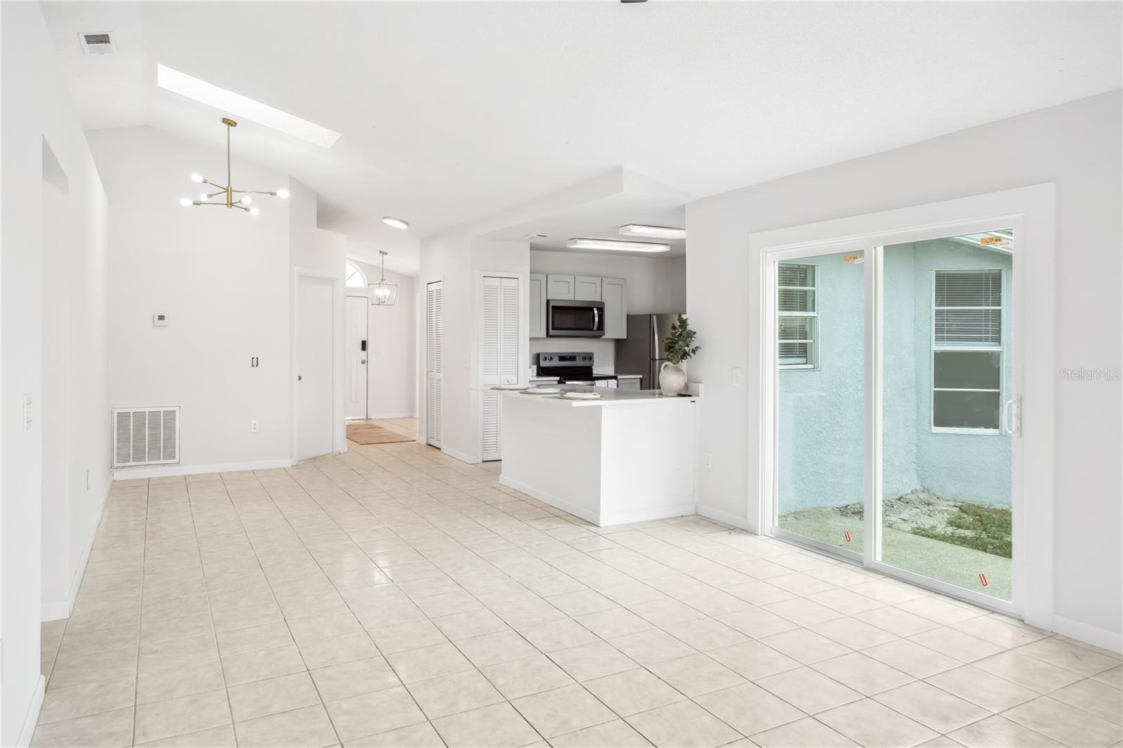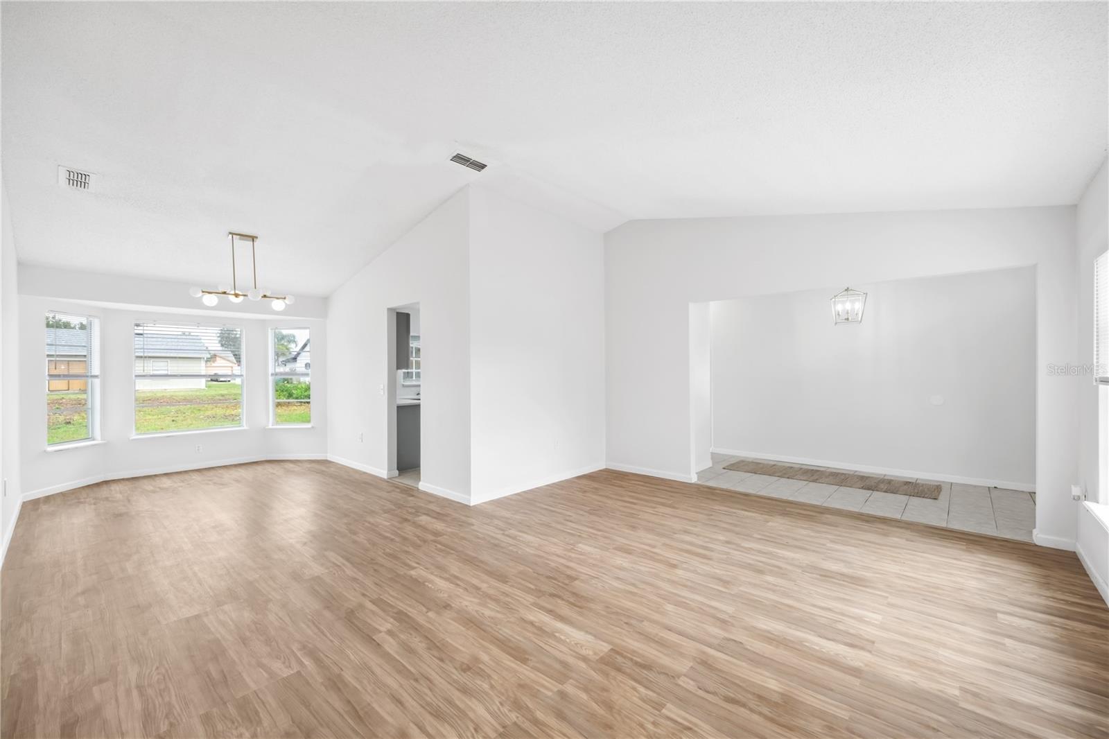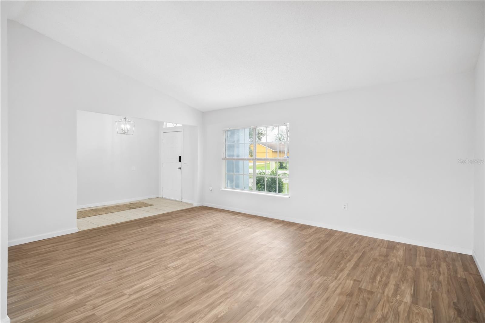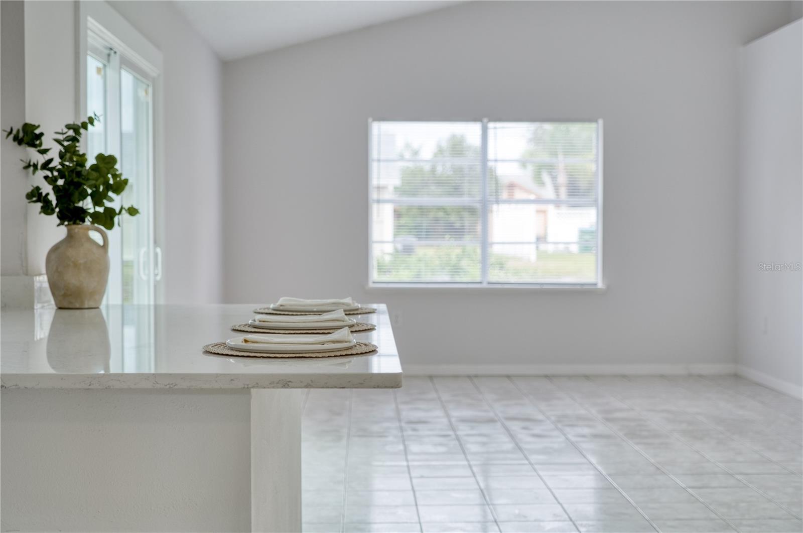 Welcome to this stunning move-in ready 3-bed, 2-bath home, thoughtfully updated with a New Roof (2023), New HVAC (2023), New water Heater (2024), New Washer & Dryer, New Flooring, and a completely Remodeled Kitchen (2024) featuring elegant shaker cabinets, quartz countertops, and brand-new appliances. Step inside to a spacious entryway leading to bright formal living and dining areas. The open-concept kitchen, complete with bar seating and an eat-in nook, flows seamlessly into the vaulted-ceiling family room with access to the large backyard. The split floor plan offers privacy, with a generous primary suite featuring a new double vanity, a soaking tub, separate shower, and walk-in closet. The two additional bedrooms are both great sizes and share an updated bathroom. Ideally located just 35 minutes to New Smyrna Beach, 20 minutes to Deland, and 30 minutes to Sanford, this beautifully renovated home is a must-see. Schedule your tour today!