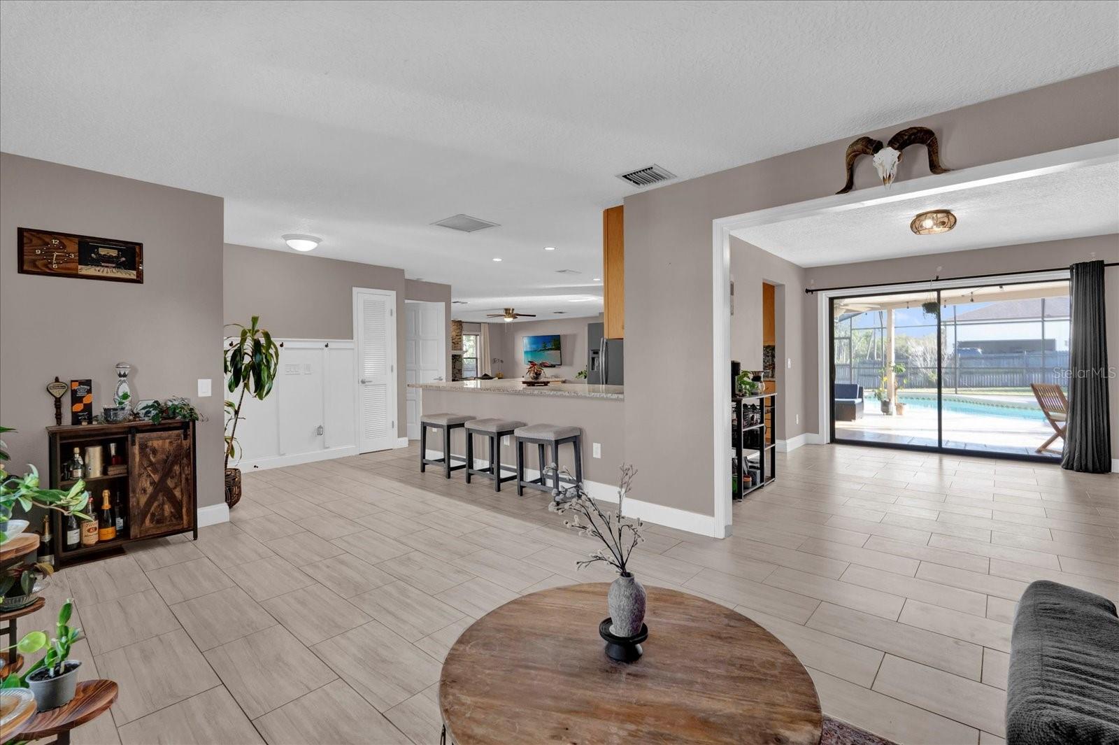 PROPERTY ELIGIBLE FOR A $7,000 CREDIT FOR FIRST TIME HOMEBUYERS. Welcome to your dream home! This stunning 3-bedroom, 2-bathroom pool home sits on over a quarter-acre lot and is one of the largest homes available in Deltona within a mile. It’s perfectly located just minutes from I-4, making commuting a breeze. As you step inside, you're welcomed by beautiful Travertine flooring leading you straight to the front door. The heart of the home is the spacious kitchen, which features gorgeous granite countertops, stainless steel appliances, and elegant cabinetry. The large island is perfect for meal prep and offers plenty of room for casual seating. You’ll love the formal living area—ideal for entertaining or simply relaxing. To the right of the kitchen, you’ll find a versatile space that could serve as a formal dining room or home office, depending on your needs. The family room is a true standout with its generous size and stunning stone fireplace, creating a cozy, inviting atmosphere. The two guest bedrooms are located on the left side of the home in this thoughtful split-floor plan. The second bathroom features a double sink and granite countertops, plus a door that opens directly to the pool area for easy access. On the other side of the house, the master suite is spacious and offers beautiful views of the pool. The master bathroom also has double sinks with granite counters, a walk-in closet, and plenty of space to unwind. Step outside into your very own oasis! The pool deck, made of gorgeous travertine flooring, is the perfect spot for lounging, dining, or soaking up the sun. The yard is fully fenced for privacy and offers plenty of room to play, garden, or just enjoy the outdoors. Additional features include an indoor laundry room with extra cabinetry and a sink for convenience. This home truly offers everything you could want—and more. Don’t miss the chance to see it for yourself. Schedule your showing today!