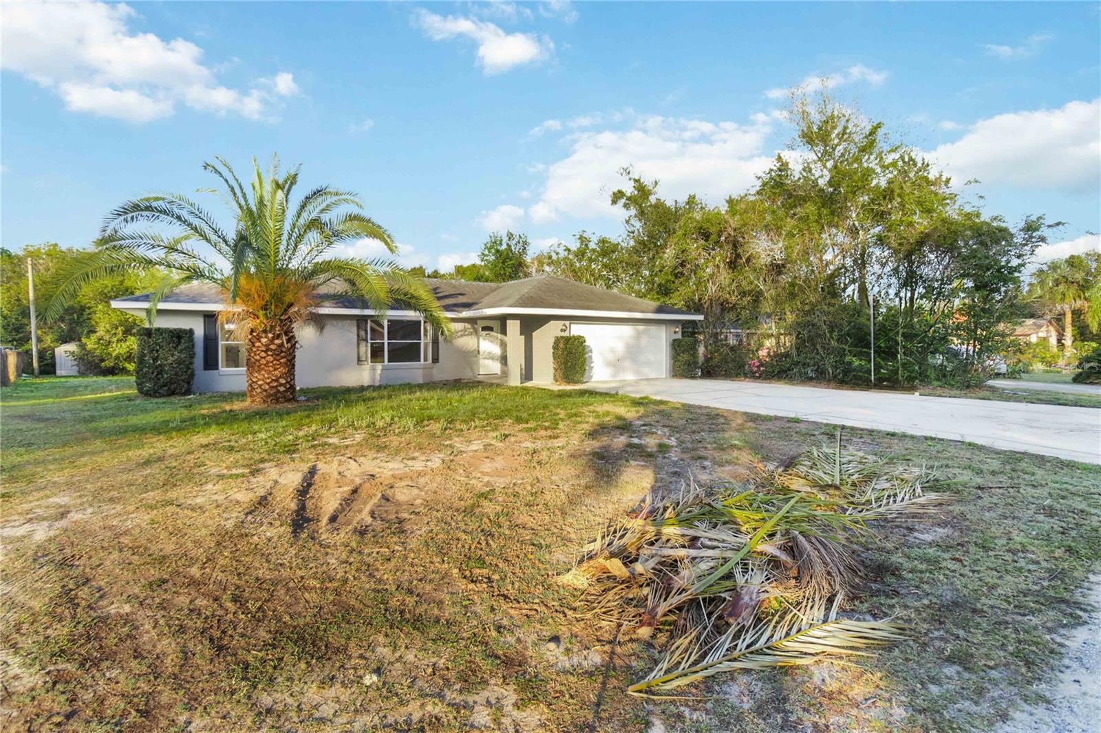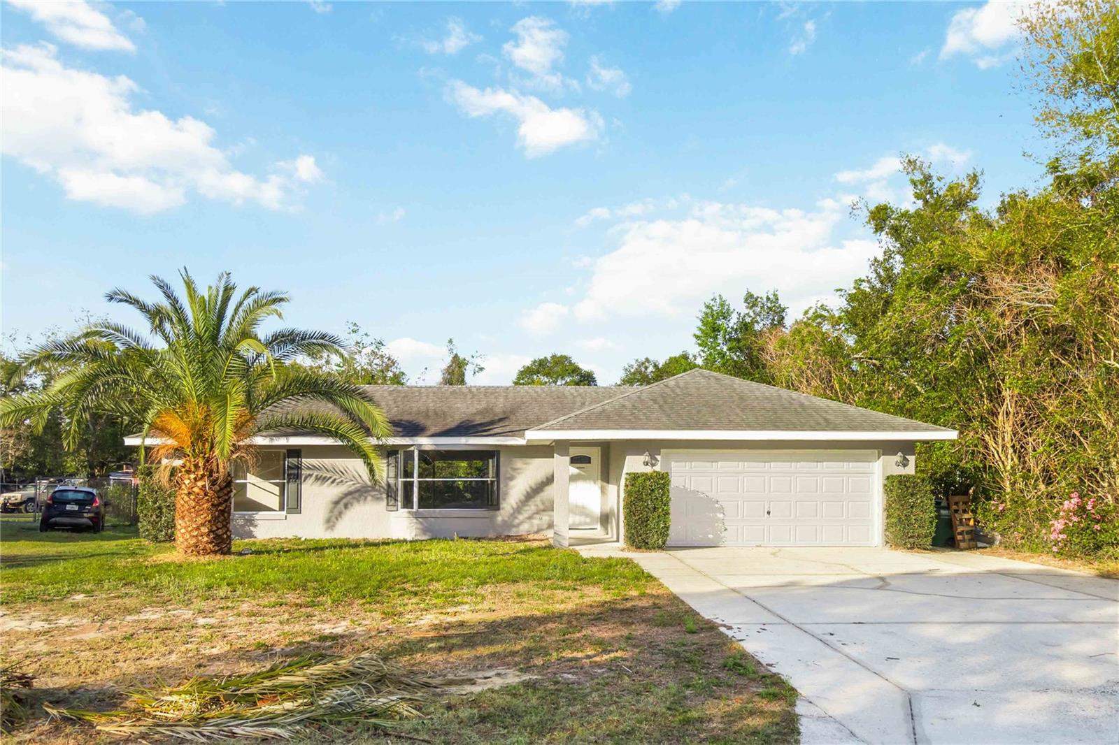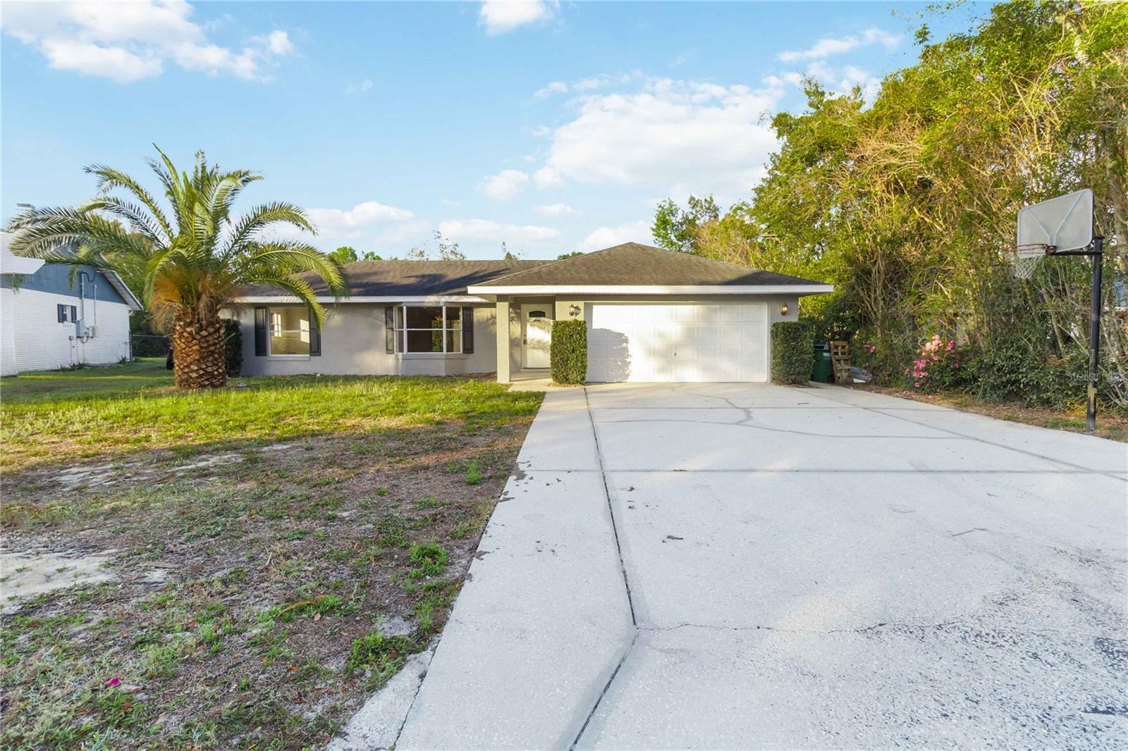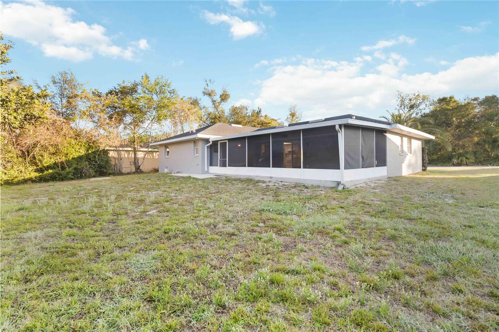 This cutie is located in Deltona, FL! Spacious, Updated, and Move-In Ready! Looking for the perfect blend of convenience, comfort, and style? This beautifully updated home sits on a .3-acre lot near Trinity Christian School, Saxon Blvd., and I-4, making your commute to Orlando or the beaches a breeze! Step inside to find brand-new flooring, fresh interior paint, and updated bathrooms, all complemented by tons of natural light from a charming bay window and two sliding glass doors leading to the massive screened-in back patio—your future go-to spot for morning coffee or weekend BBQs. The split-bedroom floor plan offers privacy, with the primary suite featuring an en-suite bath and walk-in closet. The centrally located kitchen keeps you connected to the main living spaces, while the flex room is perfect as an office, playroom, or extra lounge space. Plus, the spare bathroom has direct patio access—a game-changer for outdoor entertaining or future pool plans! Outside, enjoy a wooded backyard perimeter for extra privacy, a two-car garage, and a fresh new exterior paint and professionally pressure-washed driveway & walkways. This home is move-in ready and waiting for you! Don’t miss out—schedule your private showing today!