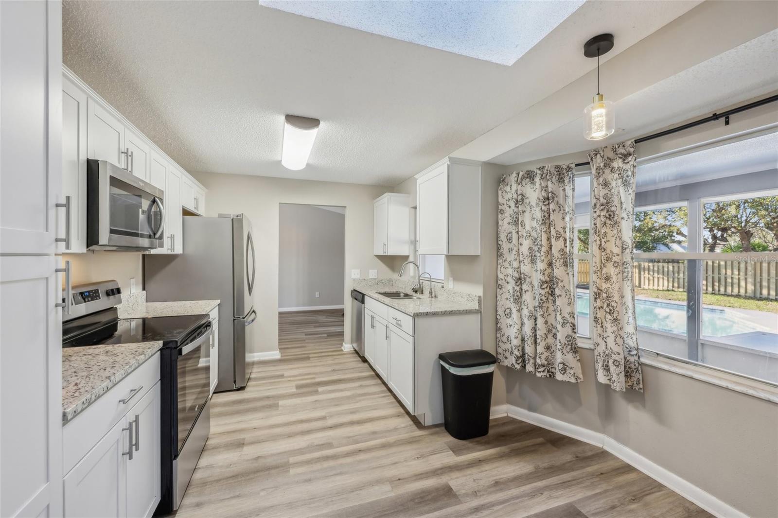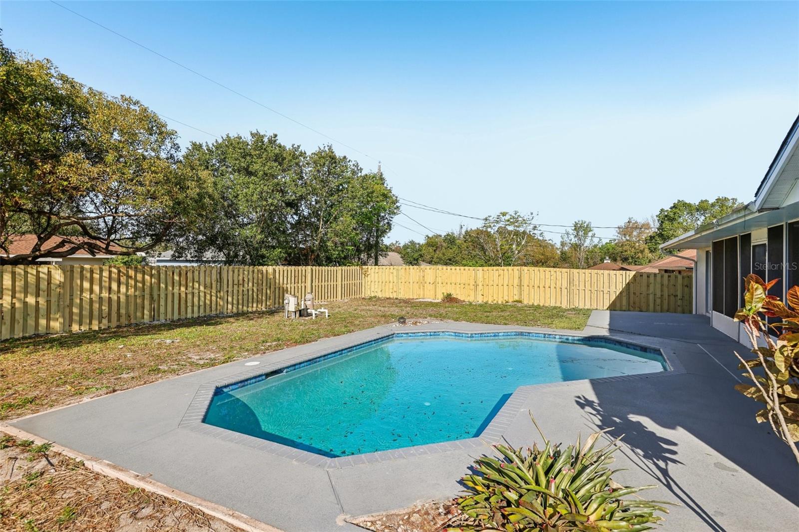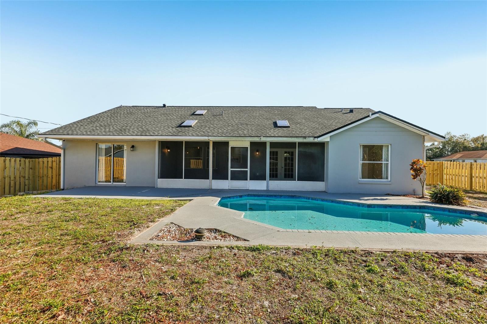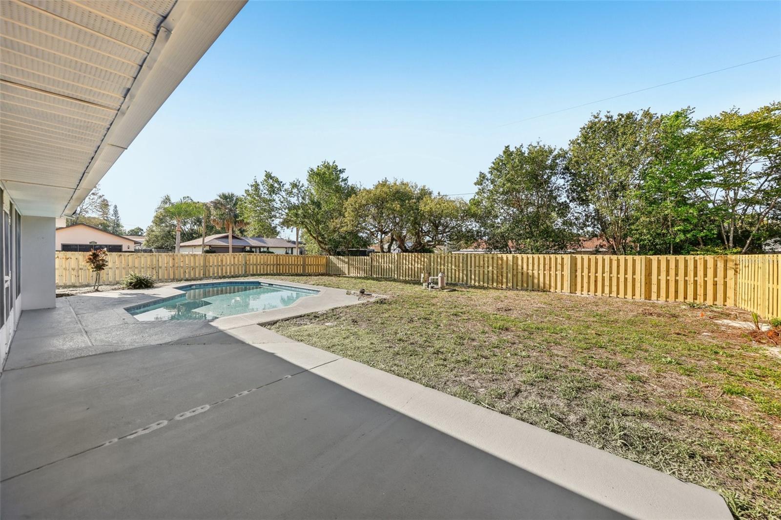 One or more photo(s) has been virtually staged. Wow big price reduction on this stunning 3-bedroom, 2-bath pool home situated on a spacious corner lot with NO HOA! Recent UPDATES include: New Wood Fence, New Water filtration system with reverse osmosis spigot in kitchen, Beautifully renovated, NEW ROOF 2023, AC 2022, and Painted Inside & Out 2023. Inside you're greeted by a bright and open split bedroom floorplan with vaulted ceilings and LVP throughout the main living spaces. The eat-in kitchen features SS appliances and granite counters. Primary bedroom offers access to the patio, walk in closet and en-suite with dual vanities and tile shower. Generously sized secondary bedrooms with shared, updated bath with tub/shower combo. Conveniently located near restaurants, parks, and I-4, this home is a must-see! Buy it before its gone!.