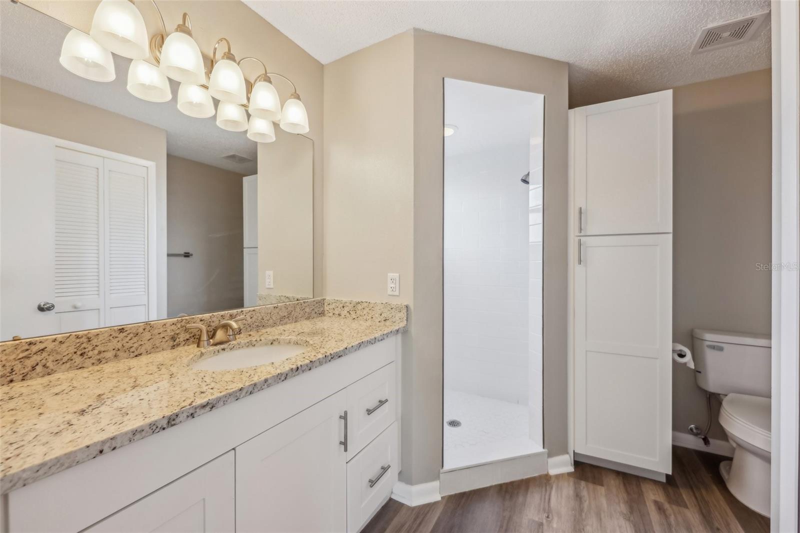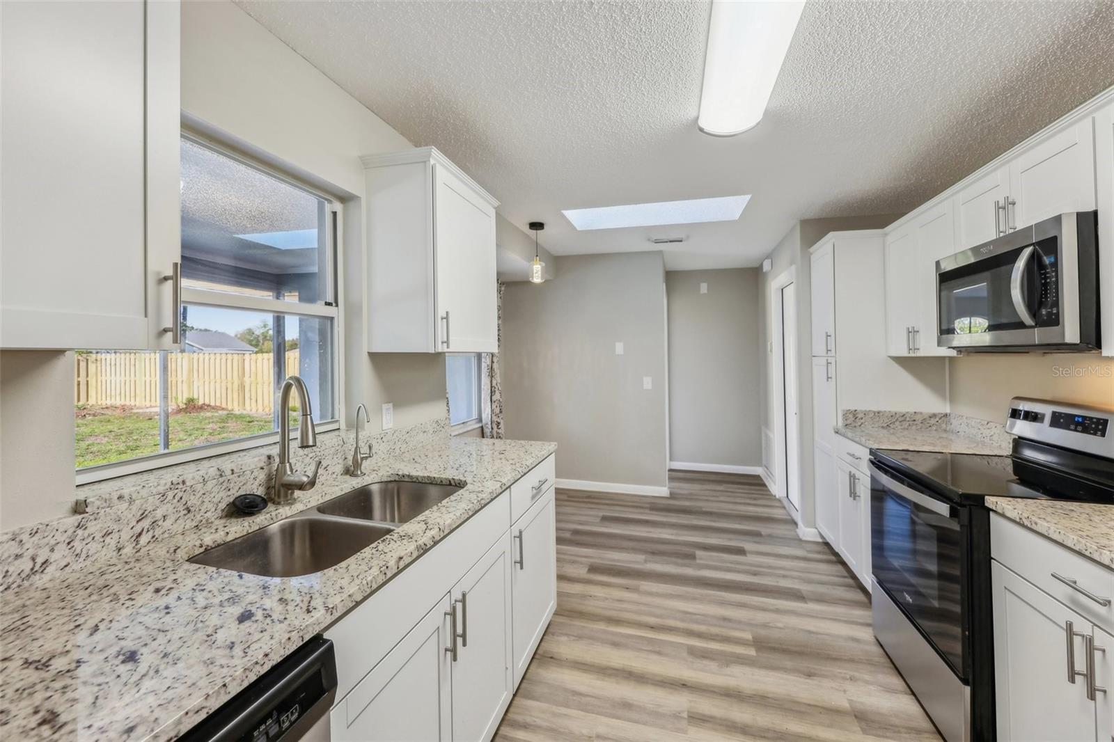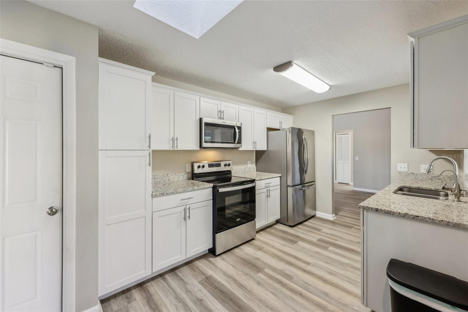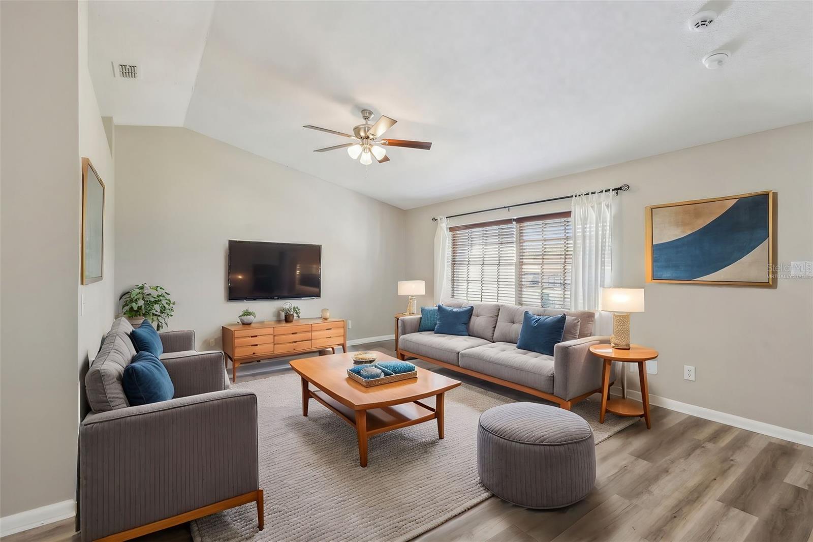 One or more photo(s) has been virtually staged. Wow big price reduction on this stunning 3-bedroom, 2-bath pool home situated on a spacious corner lot with NO HOA! Recent UPDATES include: New Wood Fence, New Water filtration system with reverse osmosis spigot in kitchen, Beautifully renovated, NEW ROOF 2023, AC 2022, and Painted Inside & Out 2023. Inside you're greeted by a bright and open split bedroom floorplan with vaulted ceilings and LVP throughout the main living spaces. The eat-in kitchen features SS appliances and granite counters. Primary bedroom offers access to the patio, walk in closet and en-suite with dual vanities and tile shower. Generously sized secondary bedrooms with shared, updated bath with tub/shower combo. Conveniently located near restaurants, parks, and I-4, this home is a must-see! Buy it before its gone!.