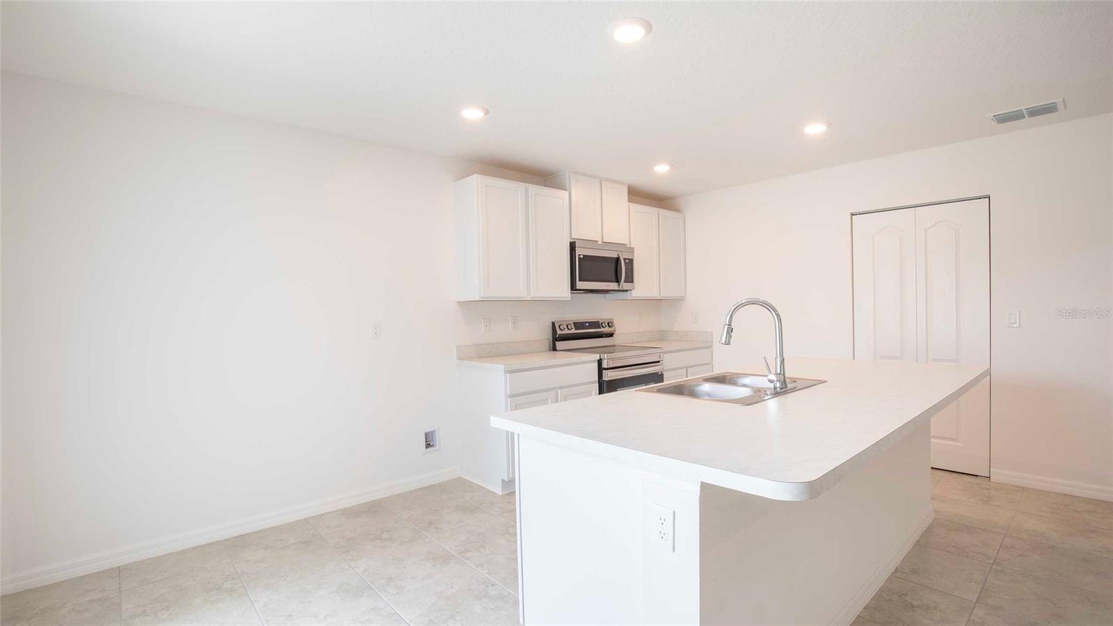 Living in Deltona, FL, offers a peaceful suburban atmosphere with access to attractions, shopping, and entertainment. Surrounded by parks and natural beauty, it’s an ideal place for a relaxed lifestyle. Welcome to the Orchid, a beautifully designed home that blends style, comfort, and functionality. Step onto the inviting front porch and enter a bright, welcoming foyer that leads into a spacious open floor plan. The expansive great room, featuring four LED lights, flows effortlessly into the dining area and kitchen, creating the perfect space for gathering, entertaining, and everyday living. Designed for privacy and relaxation, the owner’s suite is tucked away at the rear of the home and features a generous walk-in closet and a well-appointed ensuite bath. The split bedroom floor plan ensures added privacy, with three additional bedrooms positioned at the front of the home, conveniently located near a full bath. The kitchen is both stylish and practical, boasting a large island that’s perfect for meal prep, casual dining, or hosting guests. It also includes a side-by-side refrigerator, offering ample storage for all your essentials. Just beyond, a sliding glass door leads to the extended patio, seamlessly extending your living space outdoors. Throughout the home, EVP flooring adds a modern touch while providing durability and easy maintenance. Additionally, cordless blinds are installed throughout, enhancing both convenience and style. A centrally located laundry/mud room comes complete with a washer and dryer, adding extra convenience to your daily routine. The spacious two-car garage provides plenty of room for vehicles, storage, or a workbench. For added peace of mind, this home comes with a full builder warranty, ensuring quality and reliability for years to come. With its thoughtfully designed layout, seamless flow, and modern features, the Orchid is a place you’ll love to call home.