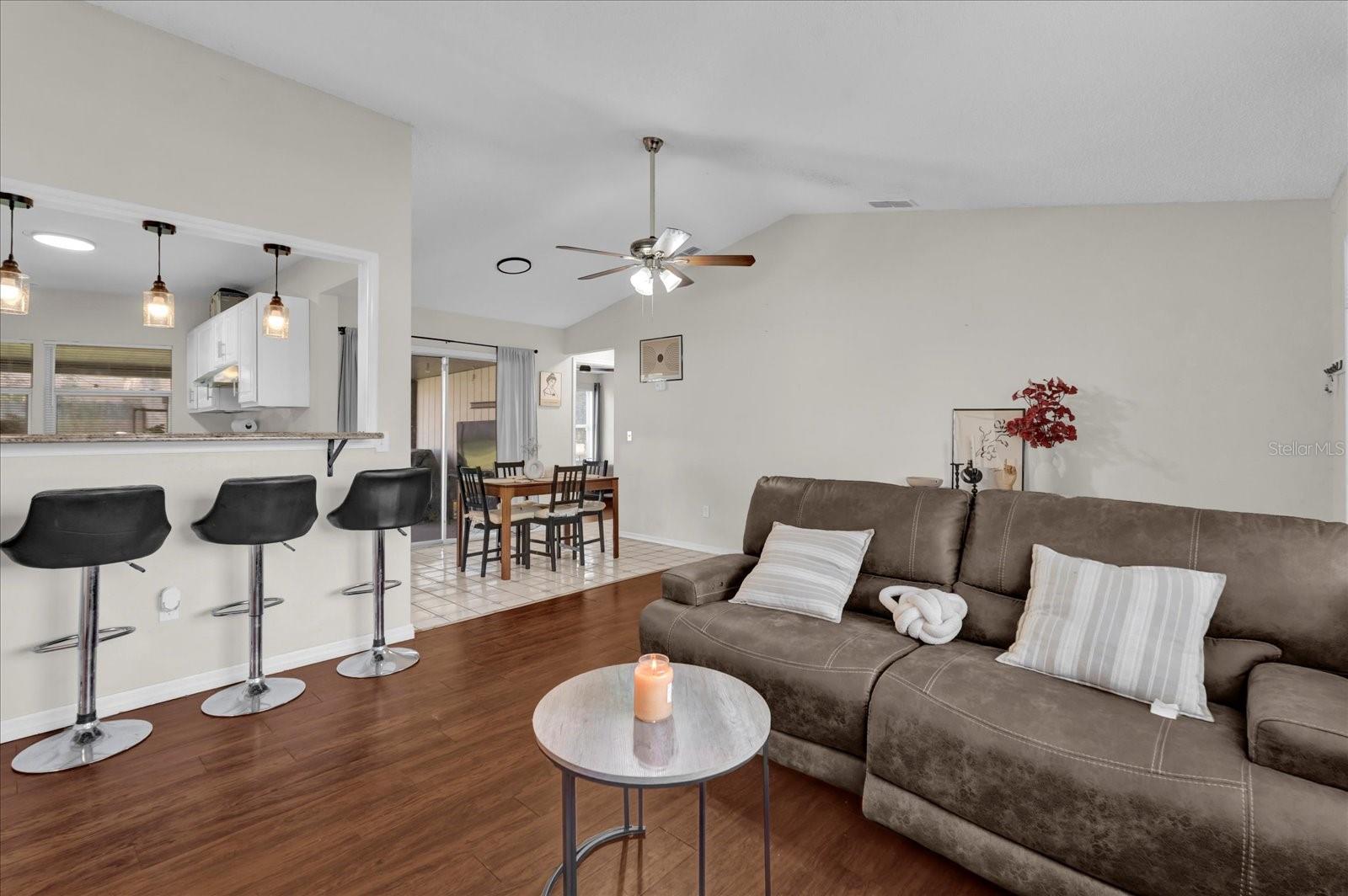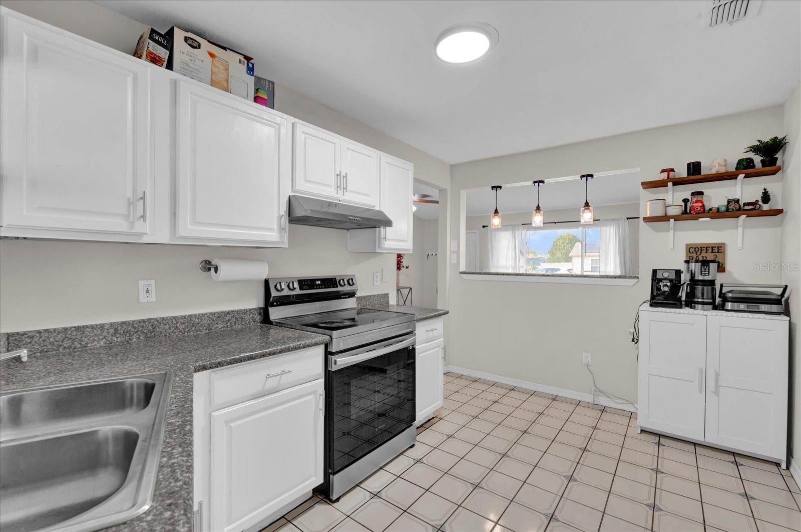 WELCOME HOME! This adorable 3/2 is ready for a new owner, sitting on an OVERSIZED LOT that is ALMOST 1/4 of an acre with NO HOA. Conveniently located only 5 minutes off of I-4, making commuting a breeze. Minutes away from many shopping and dining options. This home features an open concept living and dining space. The kitchen has STAINLESS STEEL APPLIANCES and GRANITE COUNTERTOPS. This is a SPLIT FLOOR PLAN home. There is NO CARPET with LAMINATE flooring and CERAMIC TILE. Both bathrooms have NEW VANITIES. There is a PATIO that overlooks the massive yard. The 2 CAR GARAGE, has plenty of space for cars or additional storage and a NEW GARAGE DOOR OPENER. NEW ROOF was installed in 2021. NEW WATER HEATER installed in 2024. This is an exceptional deal in Deltona, schedule your showing today.