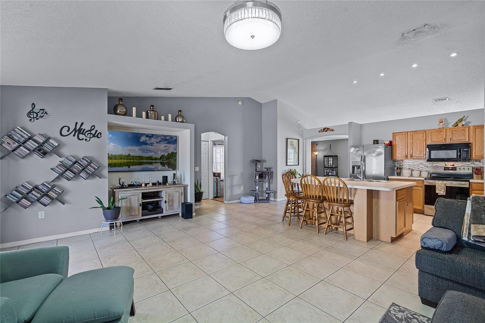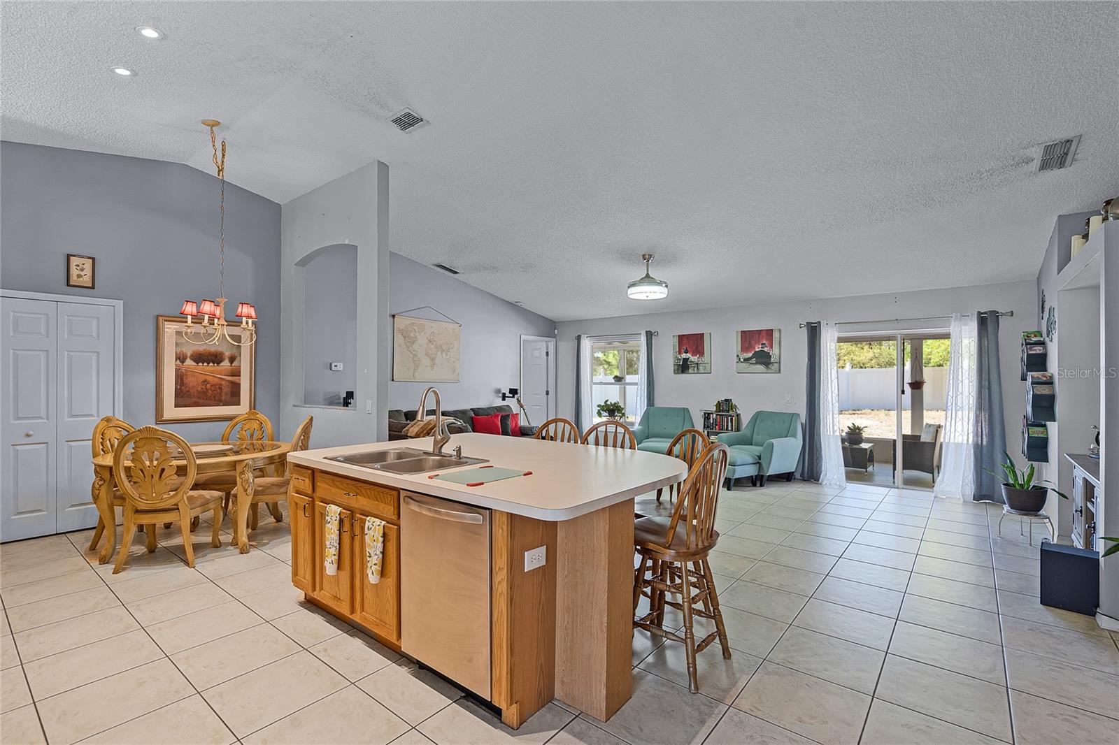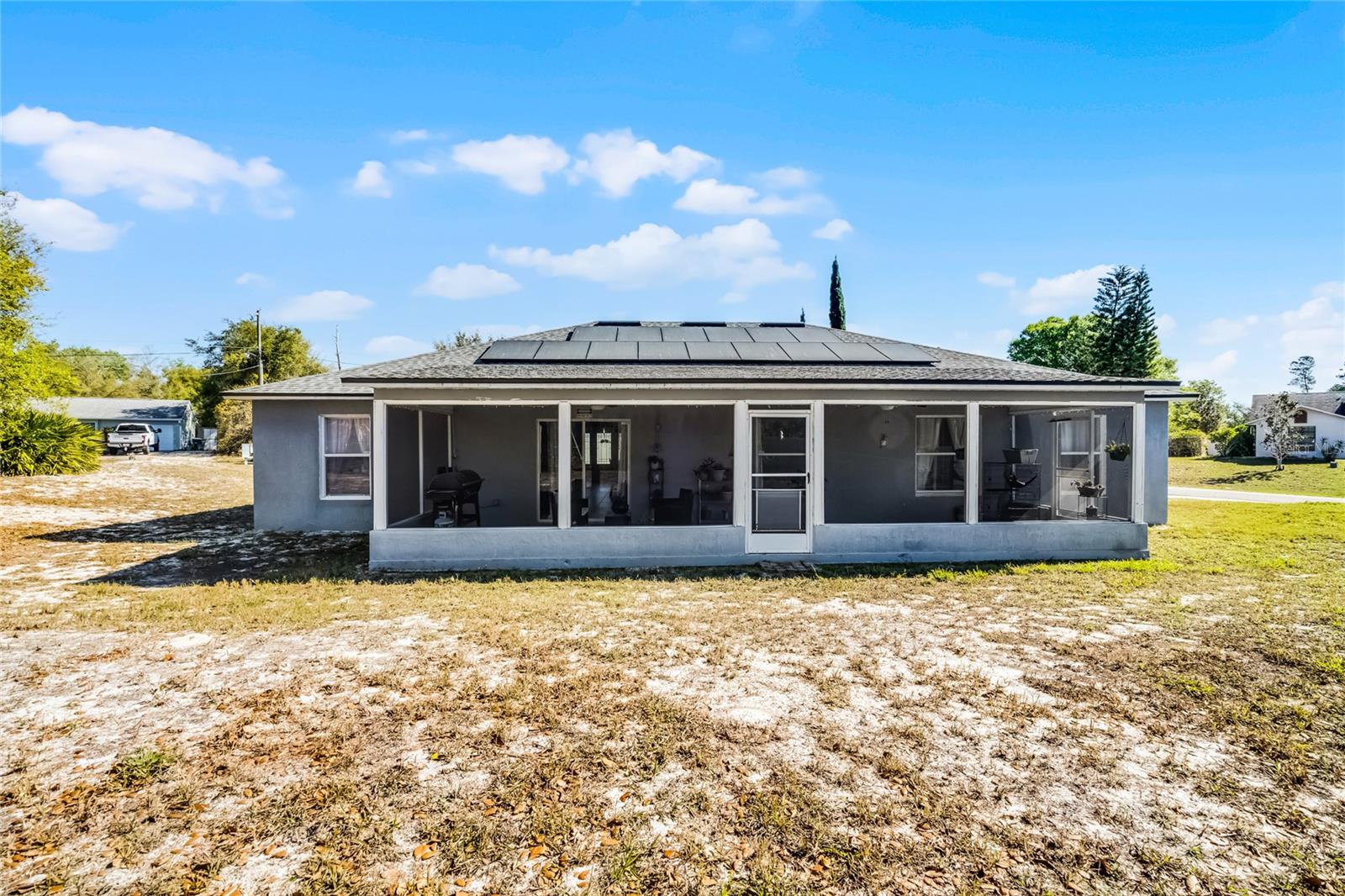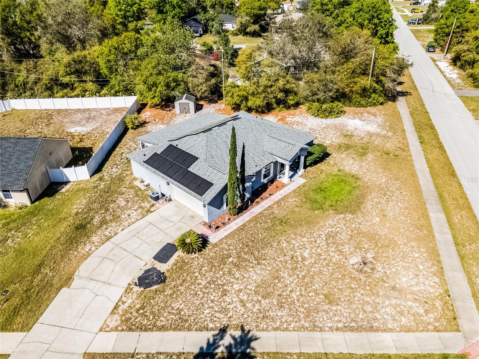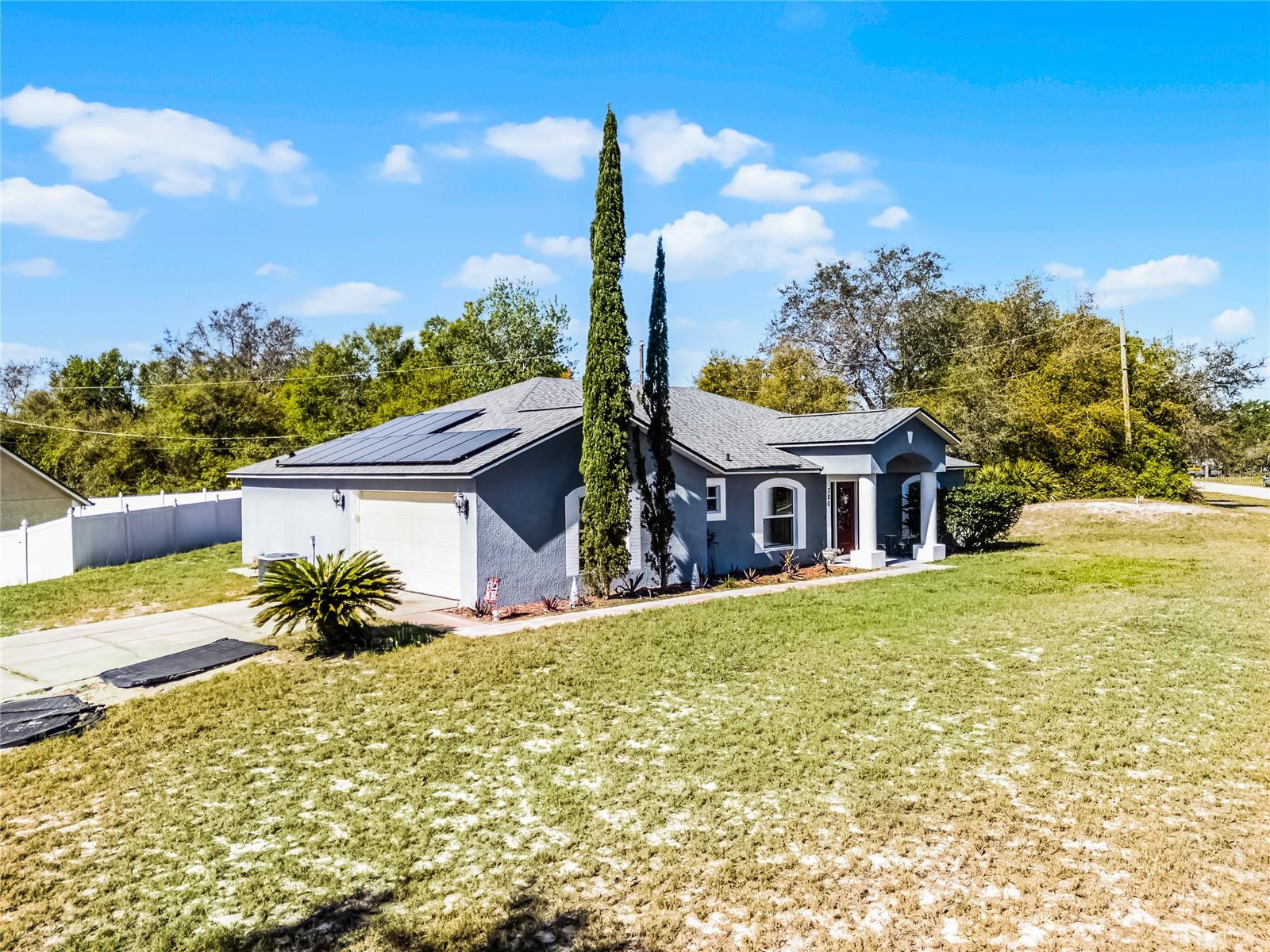 Welcome to 380 Dorset Ave, a spacious 2020 square foot home located in the desirable Deltona Lakes region. This charming 3-bedroom, 2-bathroom residence sits on a large corner lot with a side-entry garage, offering ample parking space. This property is also equipped with SOLAR PANELS, fully transferable* to the next owner, delivering energy efficiency and cost savings. Enjoy low energy bills, with solar reducing energy costs to $20- $40 per month. Step inside to discover a light and bright open floorplan featuring vaulted ceilings and a split layout. The separate living and dining rooms are perfect for entertaining guests. The kitchen boasts a large island with a breakfast bar, pantry, and eat-in area, ideal for casual meals. The oversized family room provides a lovely view of the backyard, creating a cozy atmosphere for relaxation. The primary bedroom suite measures 19x13 and includes a spacious walk-in closet and a beautifully renovated ensuite bath with a large walk-in shower and double vanity. Enjoy Florida living on the 11x36 screened-in patio, perfect for outdoor dining and leisure. Recent upgrades include a NEW ROOF with SOLAR panels (2024), HOT WATER TANK (2023), HVAC (2022), and an upgraded front door (2023) RENOVATED PRIMARY BATHROOM 2023. The solar panels ensure low energy costs, making this home both eco- friendly and cost-efficient. For your convenance the home comes with hurricane shutters! This home offers quick access to Volusia County walking and biking trails, a winery, nursery, Walmart, and various dining options. Plus, it's conveniently located near 415, providing easy access to Lake Mary and the beautiful beaches. NO HOA! AMPLE PARKING FOR WORK OR RECREATIONAL VEHICLES. This home may be under audio/visual surveillance.