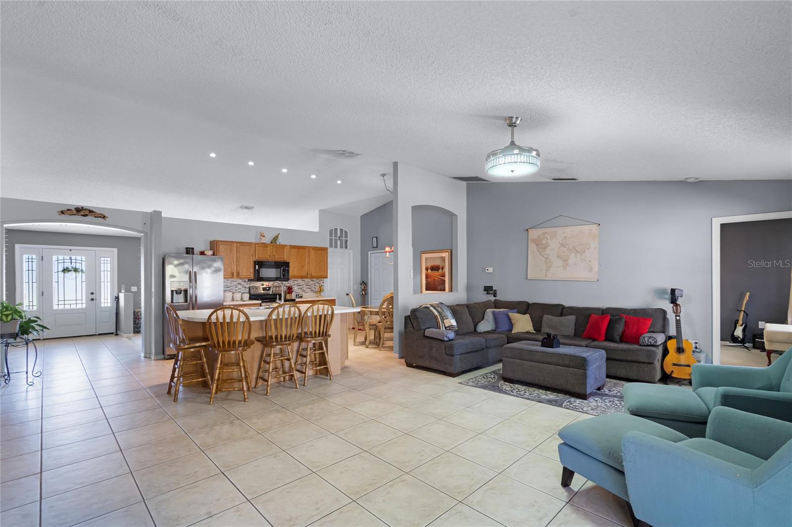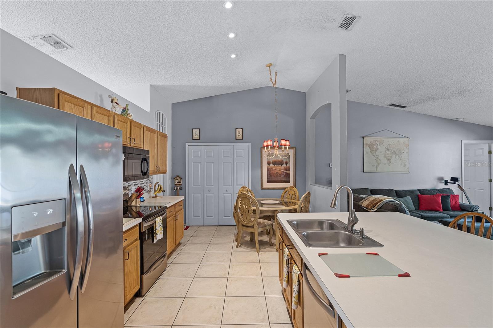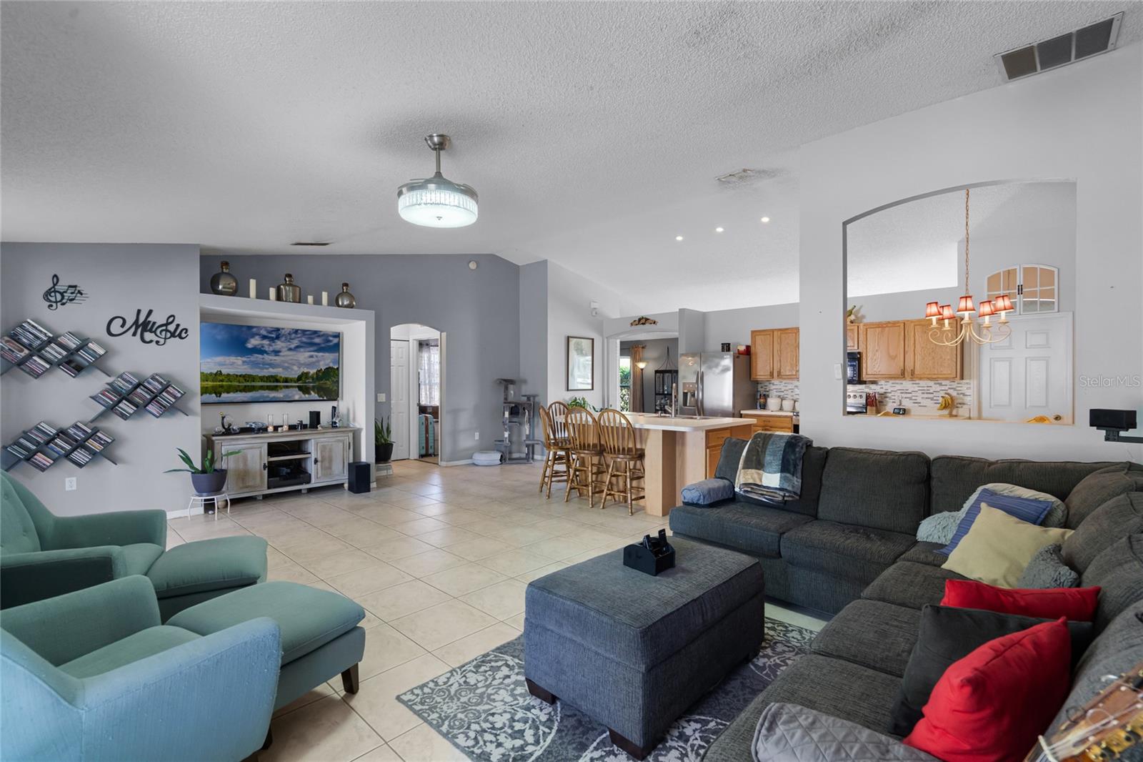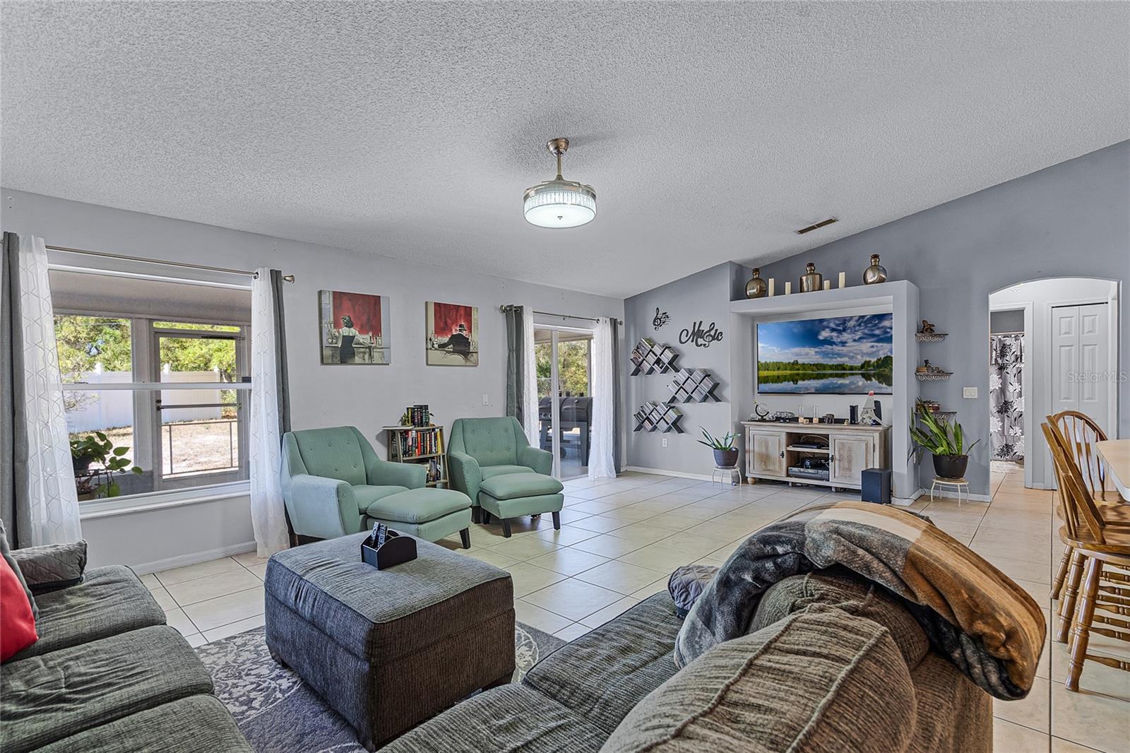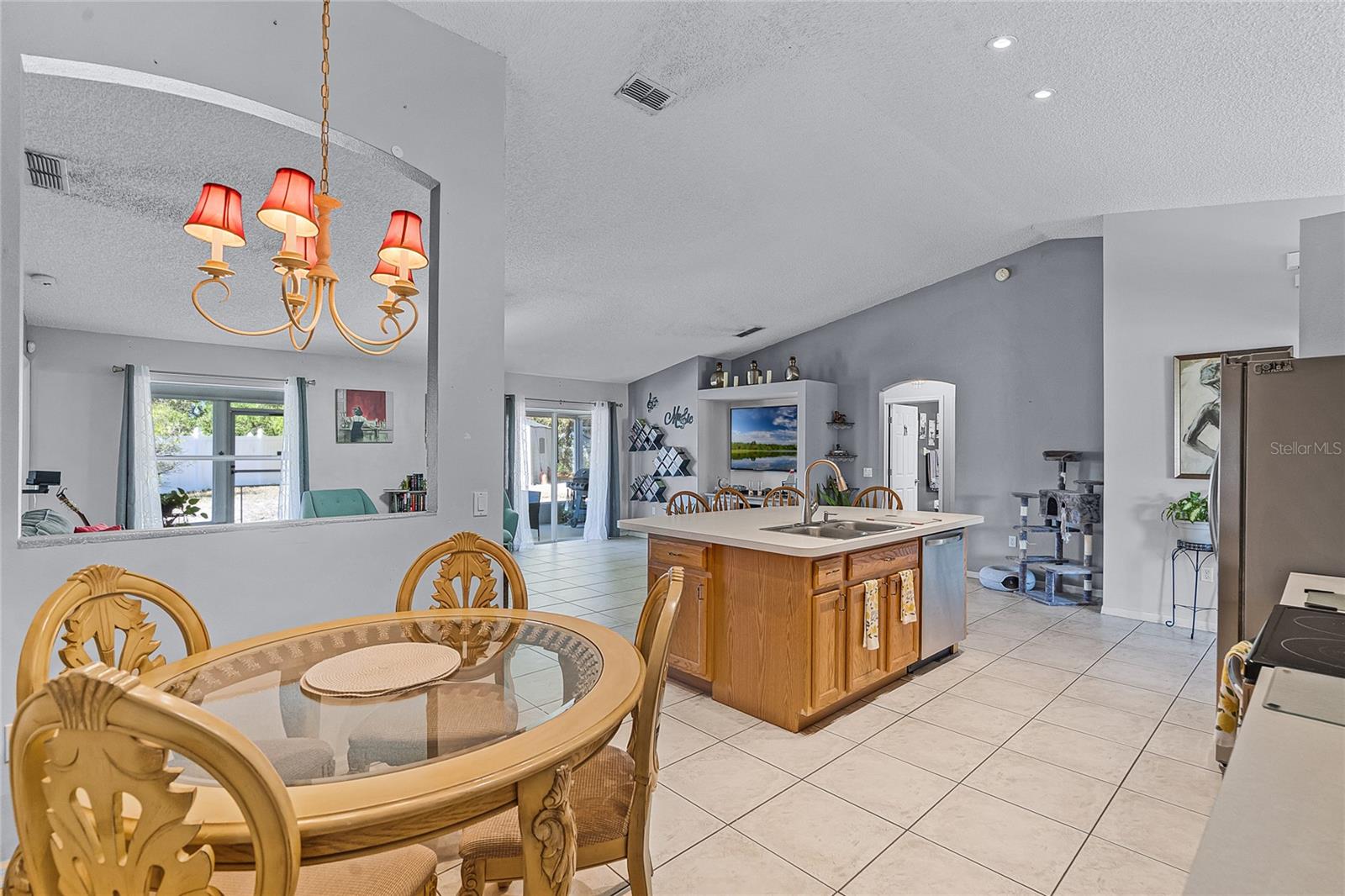 Welcome to 380 Dorset Ave, a spacious 2020 square foot home located in the desirable Deltona Lakes region. This charming 3-bedroom, 2-bathroom residence sits on a large corner lot with a side-entry garage, offering ample parking space. This property is also equipped with SOLAR PANELS, fully transferable* to the next owner, delivering energy efficiency and cost savings. Enjoy low energy bills, with solar reducing energy costs to $20- $40 per month. Step inside to discover a light and bright open floorplan featuring vaulted ceilings and a split layout. The separate living and dining rooms are perfect for entertaining guests. The kitchen boasts a large island with a breakfast bar, pantry, and eat-in area, ideal for casual meals. The oversized family room provides a lovely view of the backyard, creating a cozy atmosphere for relaxation. The primary bedroom suite measures 19x13 and includes a spacious walk-in closet and a beautifully renovated ensuite bath with a large walk-in shower and double vanity. Enjoy Florida living on the 11x36 screened-in patio, perfect for outdoor dining and leisure. Recent upgrades include a NEW ROOF with SOLAR panels (2024), HOT WATER TANK (2023), HVAC (2022), and an upgraded front door (2023) RENOVATED PRIMARY BATHROOM 2023. The solar panels ensure low energy costs, making this home both eco- friendly and cost-efficient. For your convenance the home comes with hurricane shutters! This home offers quick access to Volusia County walking and biking trails, a winery, nursery, Walmart, and various dining options. Plus, it's conveniently located near 415, providing easy access to Lake Mary and the beautiful beaches. NO HOA! AMPLE PARKING FOR WORK OR RECREATIONAL VEHICLES. This home may be under audio/visual surveillance.