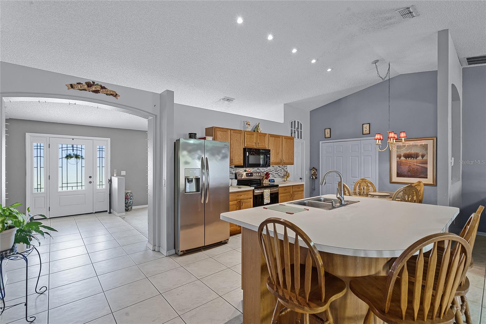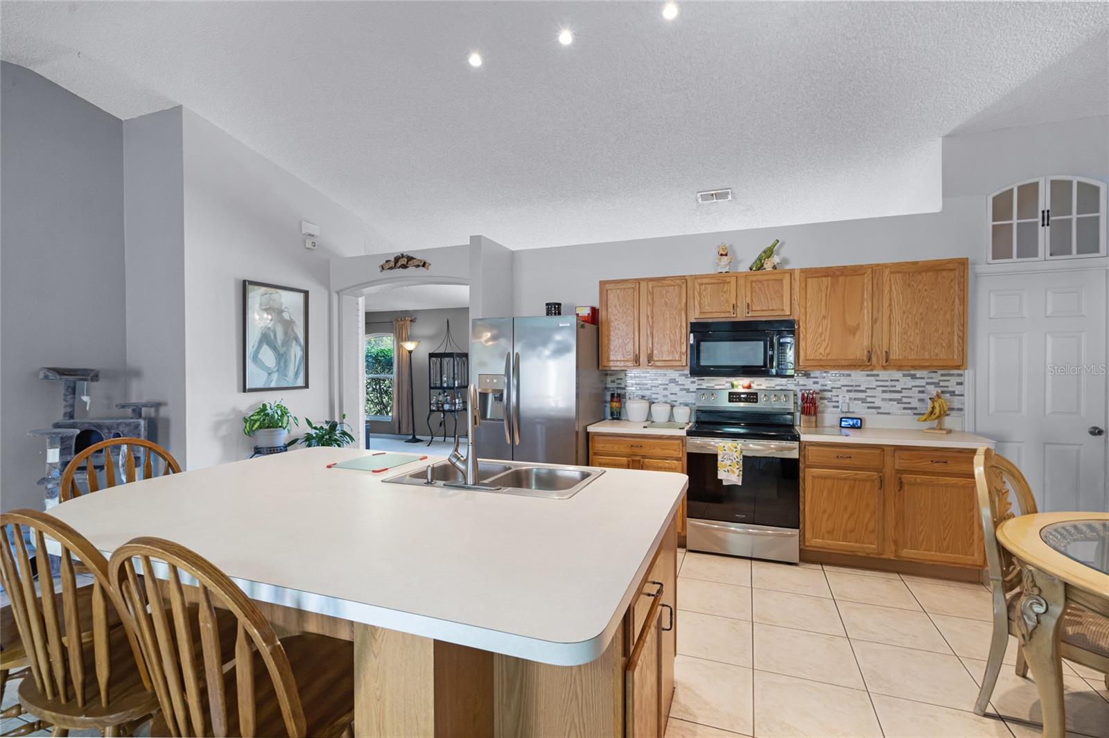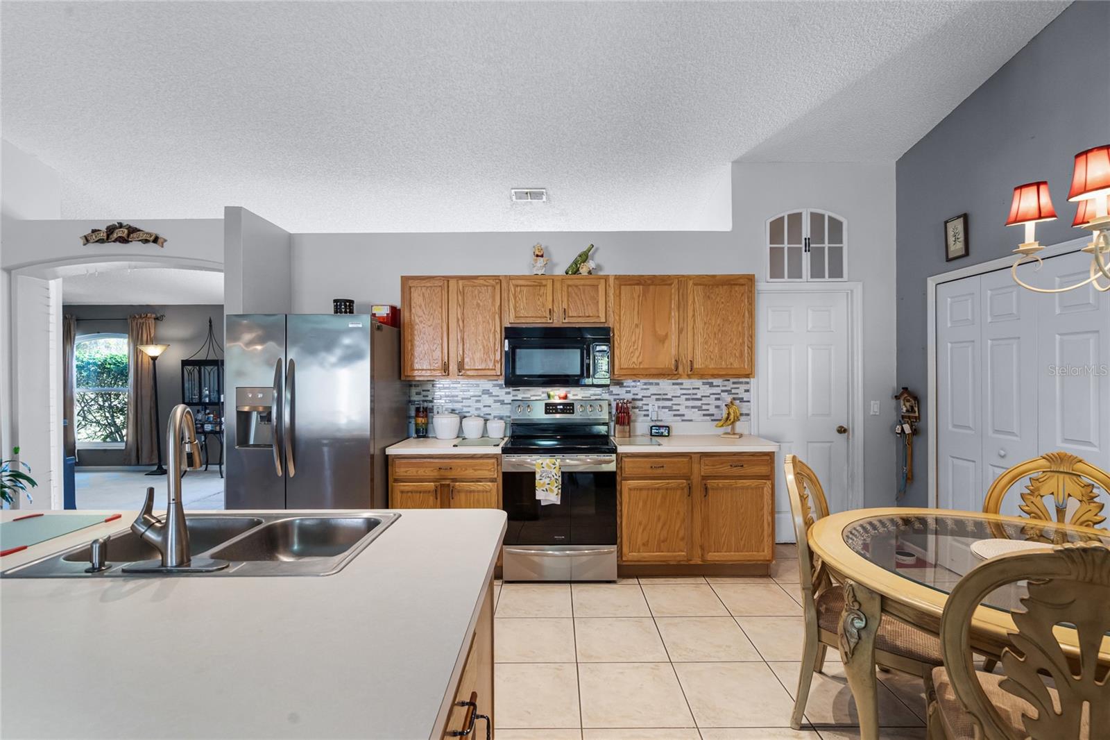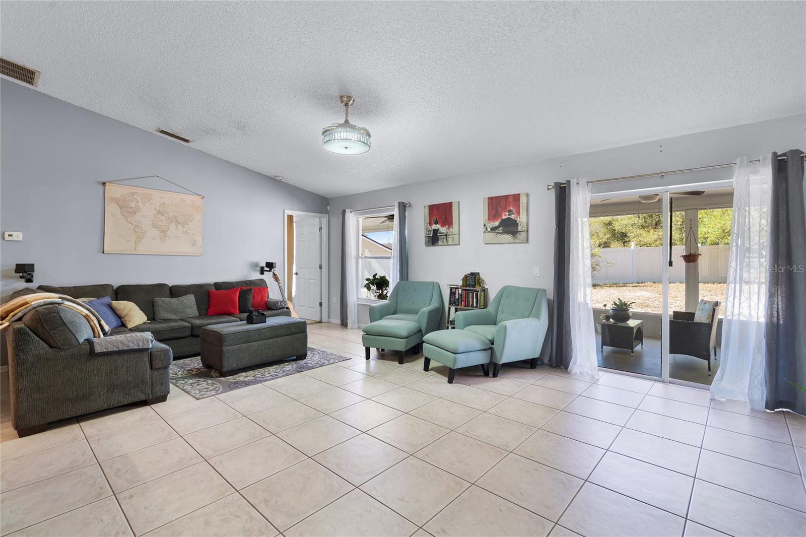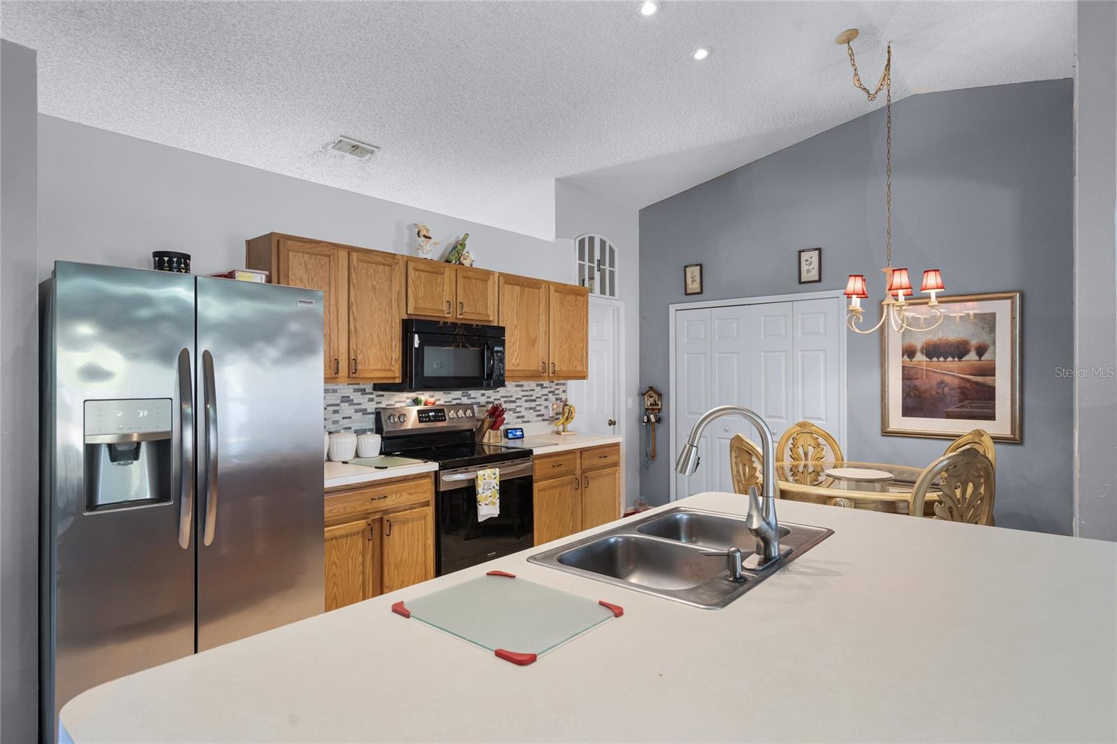 Welcome to 380 Dorset Ave, a spacious 2020 square foot home located in the desirable Deltona Lakes region. This charming 3-bedroom, 2-bathroom residence sits on a large corner lot with a side-entry garage, offering ample parking space. This property is also equipped with SOLAR PANELS, fully transferable* to the next owner, delivering energy efficiency and cost savings. Enjoy low energy bills, with solar reducing energy costs to $20- $40 per month. Step inside to discover a light and bright open floorplan featuring vaulted ceilings and a split layout. The separate living and dining rooms are perfect for entertaining guests. The kitchen boasts a large island with a breakfast bar, pantry, and eat-in area, ideal for casual meals. The oversized family room provides a lovely view of the backyard, creating a cozy atmosphere for relaxation. The primary bedroom suite measures 19x13 and includes a spacious walk-in closet and a beautifully renovated ensuite bath with a large walk-in shower and double vanity. Enjoy Florida living on the 11x36 screened-in patio, perfect for outdoor dining and leisure. Recent upgrades include a NEW ROOF with SOLAR panels (2024), HOT WATER TANK (2023), HVAC (2022), and an upgraded front door (2023) RENOVATED PRIMARY BATHROOM 2023. The solar panels ensure low energy costs, making this home both eco- friendly and cost-efficient. For your convenance the home comes with hurricane shutters! This home offers quick access to Volusia County walking and biking trails, a winery, nursery, Walmart, and various dining options. Plus, it's conveniently located near 415, providing easy access to Lake Mary and the beautiful beaches. NO HOA! AMPLE PARKING FOR WORK OR RECREATIONAL VEHICLES. This home may be under audio/visual surveillance.