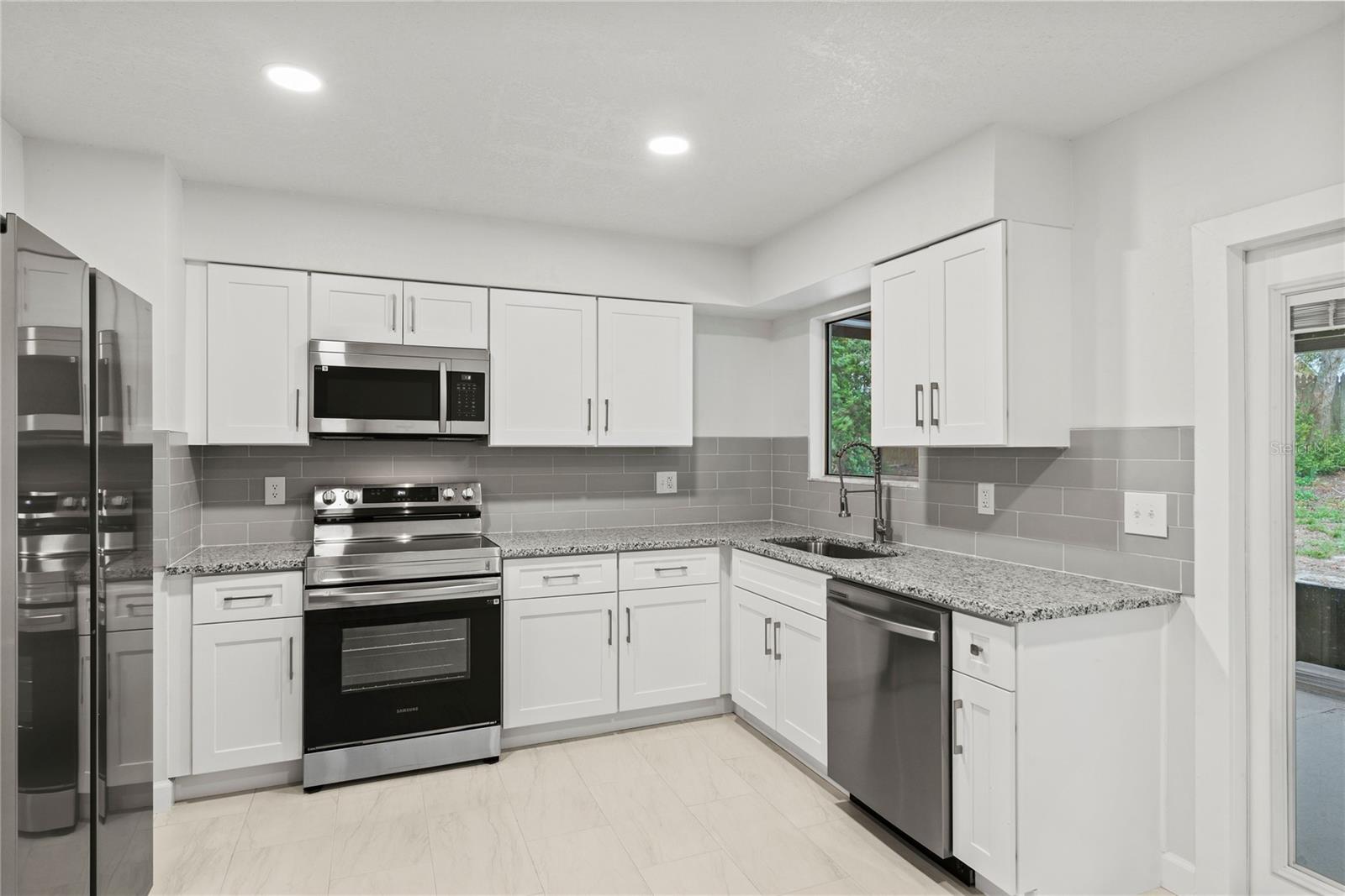 Fully upgraded luxury home with a large backyard and screened in patio. Brand new high end upgrades throughout include; Brand new granite countertops, brand new custom cabinets with hardware in the kitchen and bathrooms, brand new tile and laminate flooring throughout, brand new high end stainless steel appliances, and all new plumbing fixtures. The bathroom includes new tile showers, new vanities with brand new high-end countertops, new mirrors, plumbing fixtures and new toilets. All new lighting and fans throughout. The home was just fully painted inside, and out, and fresh landscaping installed. The property has custom premium upgrades throughout that look like a new model home. The home has a new garage door. AC is newer (2018), just had the coils and system cleaned.