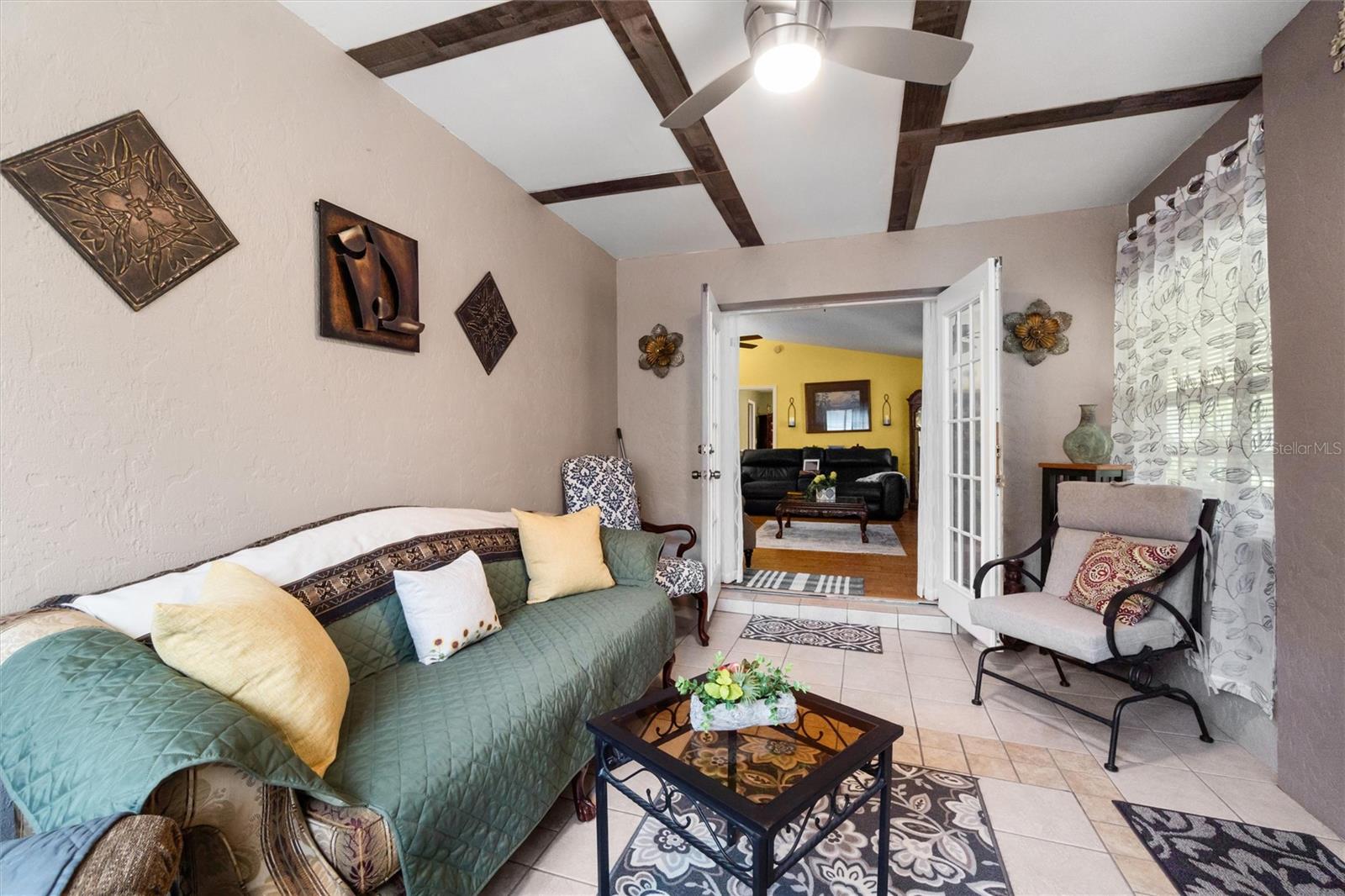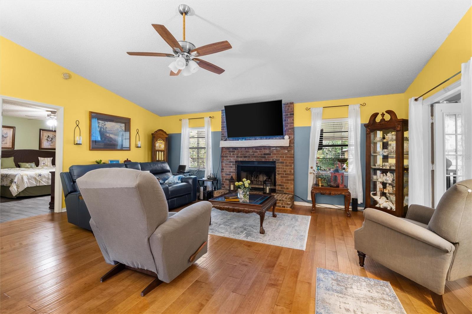 Best Deal in Deltona! New water heater just installed! This Charming & Spacious 3-bedroom, 2-bathroom home offers 1,600 sqft of thoughtfully designed living space, plus a flex room that can be transformed into a 4th bedroom, office, playroom, or family room—whatever suits your needs! Solar panels keep your electric bill low. With a homemade electric generator with 8 solar panels ($12k value) that stays with the home! Inside you'll step into a bright and open living area, featuring vaulted ceilings and a stunning brick fireplace—perfect for cozy nights in. The kitchen is a chef’s dream with wood cabinets, granite countertops, stainless steel appliances, and a charming bay window that bathes the space in natural light—an ideal spot for your breakfast nook. The split floor plan provides privacy, with two bedrooms and a full bath on one side and the primary suite on the other, complete with a walk-in closet and ensuite bathroom. Outside, this home truly shines! The oversized driveway, 2-car garage, and carport provide plenty of space for parking—including room for your boat! Need extra storage? You’ll love the two sheds. The enclosed rear porch is perfect for relaxing, while the serene backyard features a small pond with a garden bridge—a peaceful retreat right at home. Plus, solar panels help keep energy costs low! Don’t miss this opportunity—schedule your private showing today!