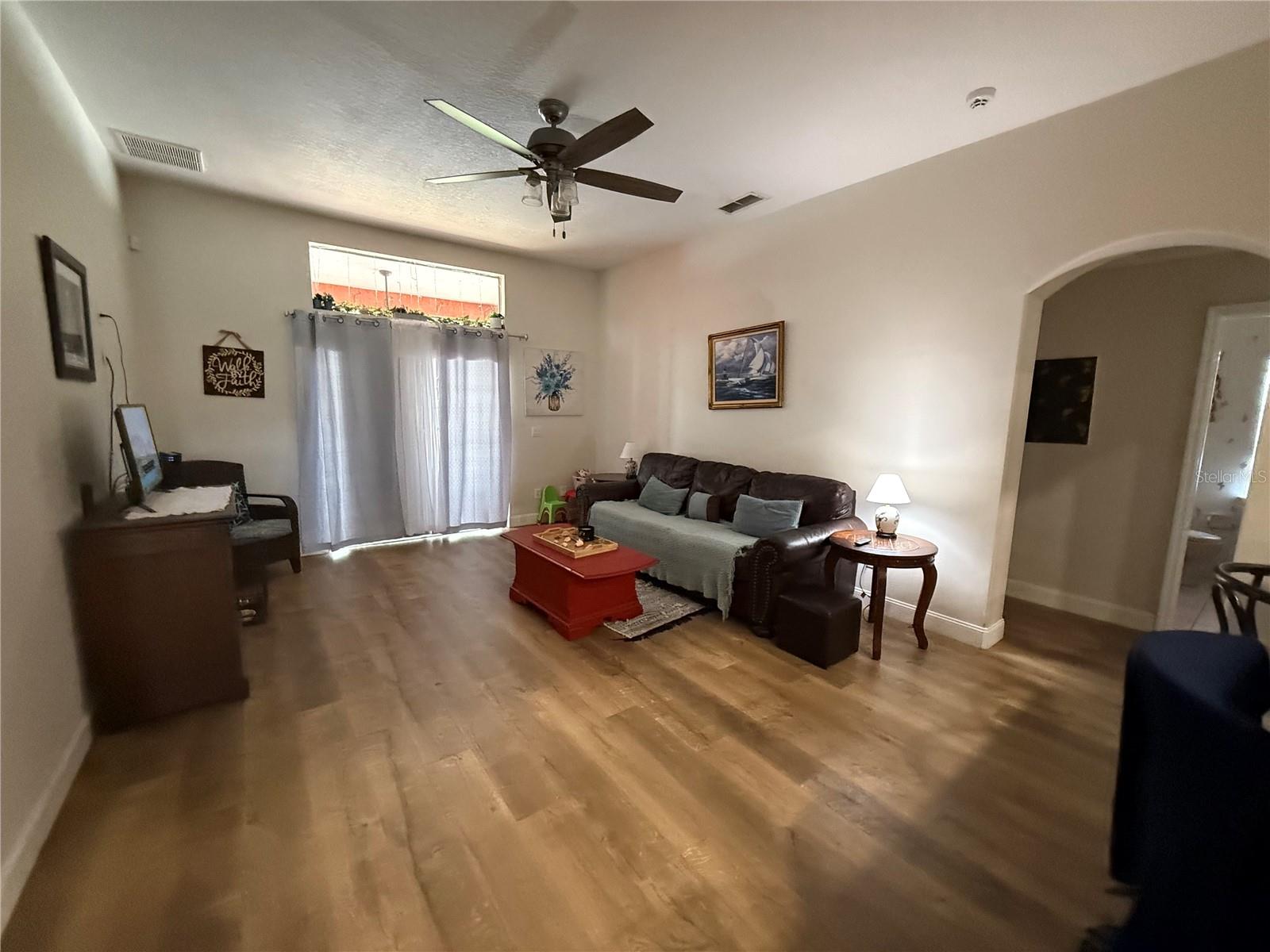 This charming home features 12-foot ceilings throughout that create an open and spacious feel, separate living/family room, stainless steel appliances, granite countertops, a breakfast bar, a pantry, huge walk-in closet, a utility room, alarm system, energy-efficient windows, and a large 14' x 11' screened porch. The oversized corner lot is enclosed by newer 6-foot and 4-foot vinyl fence. Conveniently located near shopping, restaurants, and just 30 minutes from the beaches or Orlando. This home is currently occupied by a tenant with a lease until September. Please call the agent to schedule an appointment for a private showing. Whether you're looking for a steady income property or a long-term investment to occupy yourself, this home offers excellent value in a very desirable location.