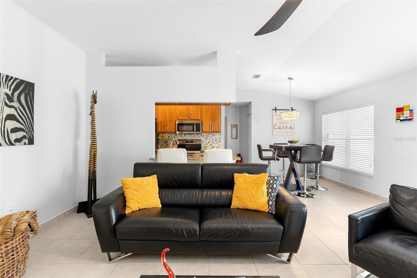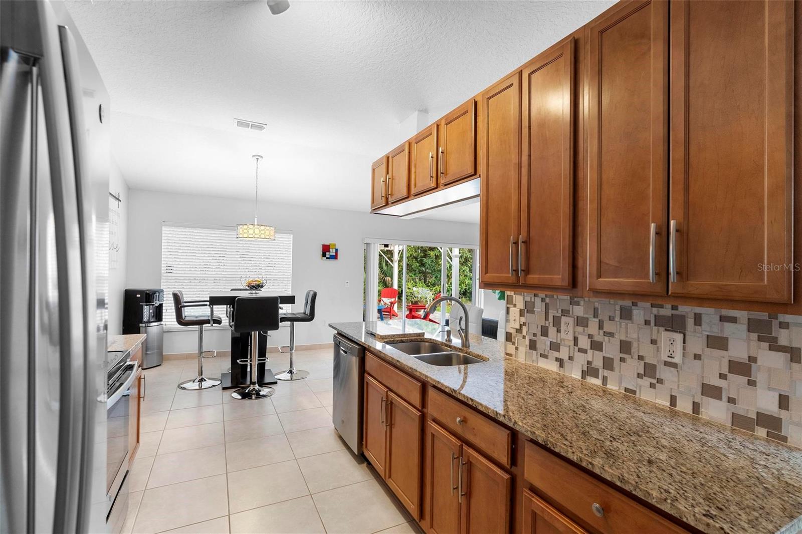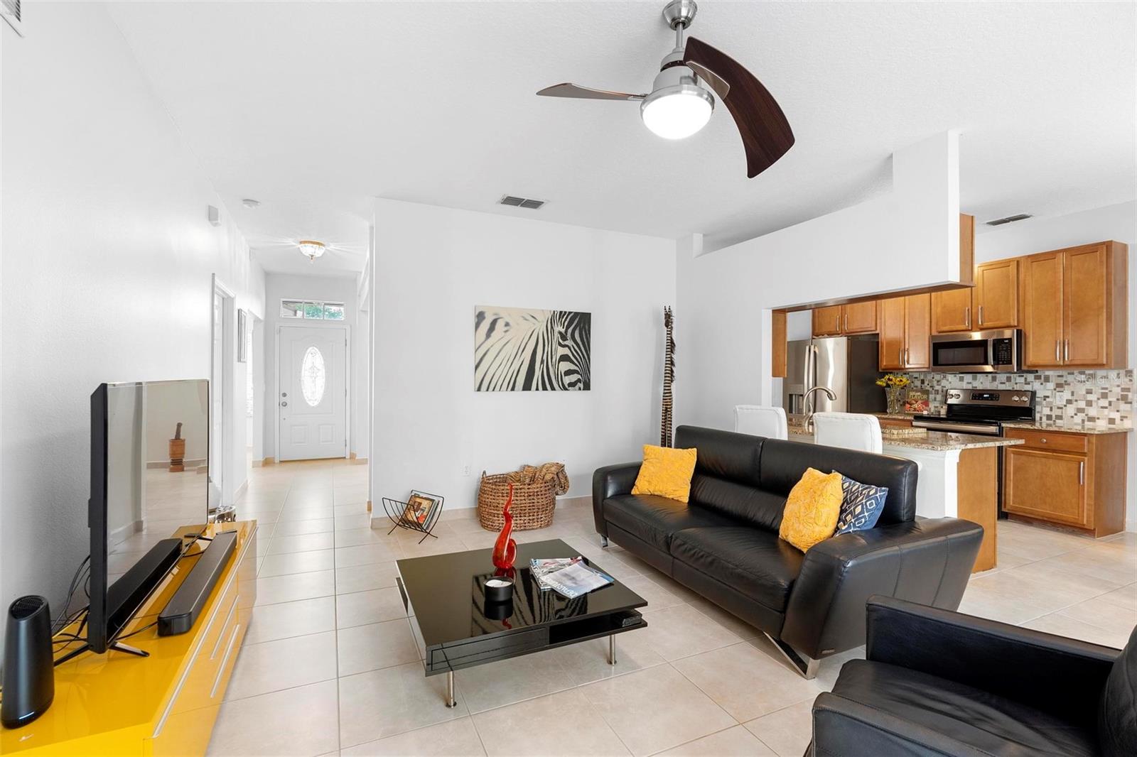 Welcome to this Outstanding 3 Bedroom, 2 bath Immaculate home featuring 1689 sq ft of living space. Key updates include a Newer Roof (2018), Updated AC and electrical panel (2022), and a New water heater installed (April, 2025). Single story, open concept, split floor plan filled with tons of natural light. The well-appointed kitchen boasts gorgeous maple cabinets, granite countertops, stainless steel appliances, and a cozy breakfast nook. A spacious dining room illuminated by natural light, creating a warm, welcoming ambiance perfect for lively family gatherings. Beautiful ceramic tile through out. The Primary Master features an en-suite bathroom, with a garden tub for serene soaking, a separate shower, and a granite counter top vanity. An expansive wall-to-wall closets paired with a dedicated walk-in closet provide abundant room for your wardrobe and accessories; every woman's delight. Enjoy a seamless flow from the welcoming front entry to the expansive back patio, enhanced by a custom-made pergola that creates a delightful outdoor entertainment area. The private backyard retreat, enclosed by white vinyl fencing (2018), offers a secluded oasis for relaxation and outdoor enjoyment. The added convenience of an indoor laundry room makes everyday chores a breeze. A 2 Car Garage with shelved storage room. This charming home has been meticulously maintained and offers a perfect blend of comfort, and low-maintenance living, making it an excellent choice for first-time buyers, downsizers, or savvy investors looking for a move-in ready property. Conveniently located just minutes from I-4, this home offers easy access to major roads, shopping, dining. NO HOA restrictions. Move in Ready! Schedule a showing today and make this turnkey house your new home! Sellers request only Pre-Approved buyers come to view the property.