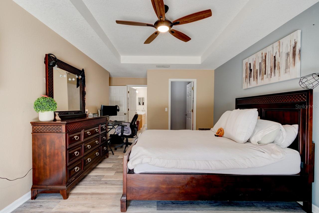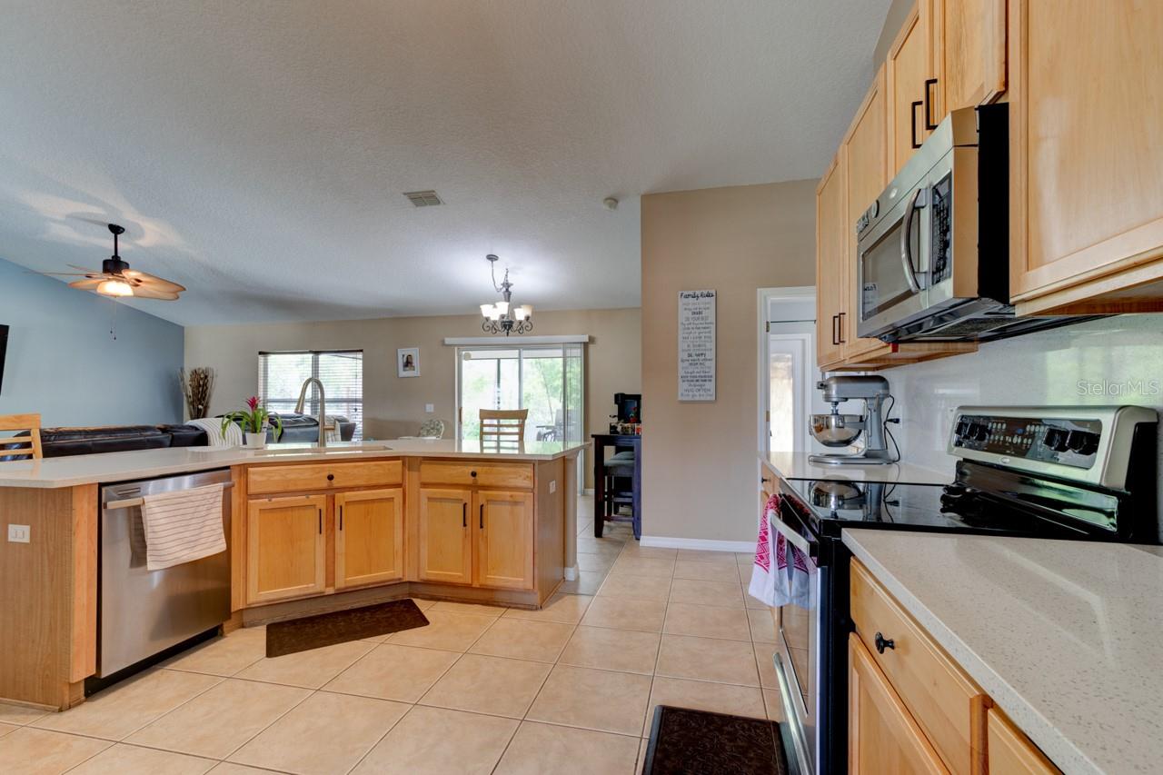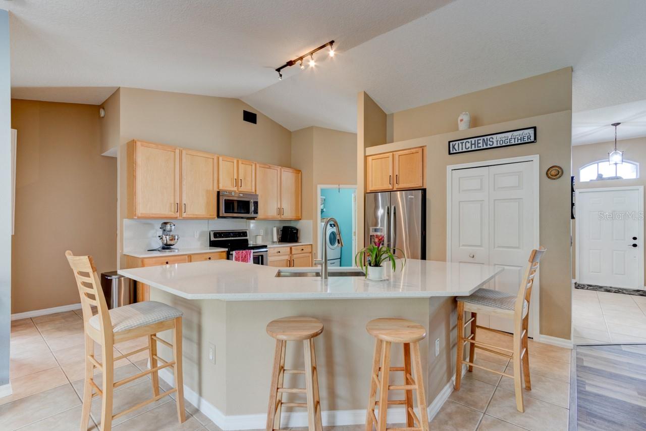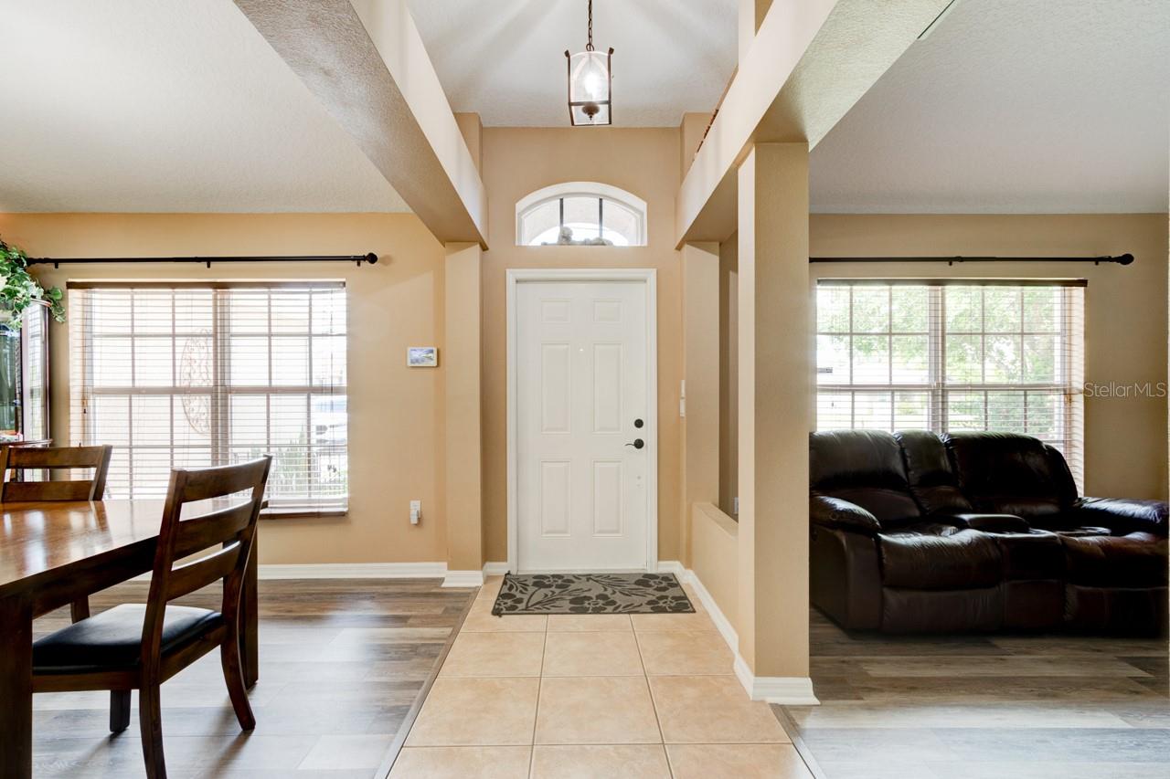 Buyers financing fell through, back on the market !! Welcome to this beautifully maintained 3-bedroom, 2-bath, 2 car garage, single-family home located in the desirable Deltona Lakes community. As you step inside, you’ll be greeted by soaring vaulted 14-foot ceilings that create a bright and spacious atmosphere. To your left you’ll find a formal living room and to your right is a separate formal dining area—perfect for entertaining. The heart of the home is the spacious family room, which flows seamlessly into the kitchen. The kitchen features elegant quartz countertops, stainless steel appliances, ample cabinet storage, and generous counter space. There’s also a cozy dinette area for casual meals, which opens out to the back patio and backyard. The home’s open, split floor plan offers privacy and functionality. The spacious primary suite includes sliding glass doors that lead to the backyard, filling the room with natural light. The en-suite bathroom boasts dual quartz vanities, a soaking tub, a separate walk-in shower, and a private water closet. On the opposite side of the home, you'll find two additional bedrooms and a full bathroom—perfect for guests or family members. A separate laundry room with washer and dryer, conveys with the house. Enjoy outdoor living in the expansive backyard, complete with a fire pit and plenty of space for gatherings. Recent updates include: Brand-new roof installed in January 2025 Water heater and AC unit installed in 2017 Septic system (located in the front yard) pumped in 2024 This home has been lovingly cared for, and the owner takes pride in its upkeep. Don’t miss the opportunity to make it yours!