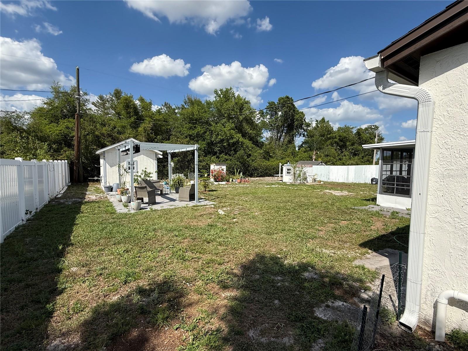 Price change. SELLER WILLING TO PAY $5,000 towards buyer’s closing cost and prepaids on full price offers. Beautiful home located just 1 mile from Highway 4 and within a short distance to Spirit Elementary School, this well-maintained home offers both convenience and comfort. Built with durable concrete block construction and finished with low-maintenance stucco and attractive brick veneers, it sits in a quiet, established neighborhood. Enjoy peace of mind with new impact windows throughout and new gutters. The property is fully fenced, offering privacy and security. Outdoor living is a highlight, featuring a charming pergola, two separate patio areas, and a She/He shed—ideal for hobbies, a workshop, or extra storage. Inside, the home includes new interior doors and two new Therma-Tru fiberglass insulated exterior doors. The kitchen is equipped with a stainless steel double sink and pull-down sprayer faucet, while the laundry room includes a stainless steel sink and matching pull-down faucet, blending functionality with stylish finishes.